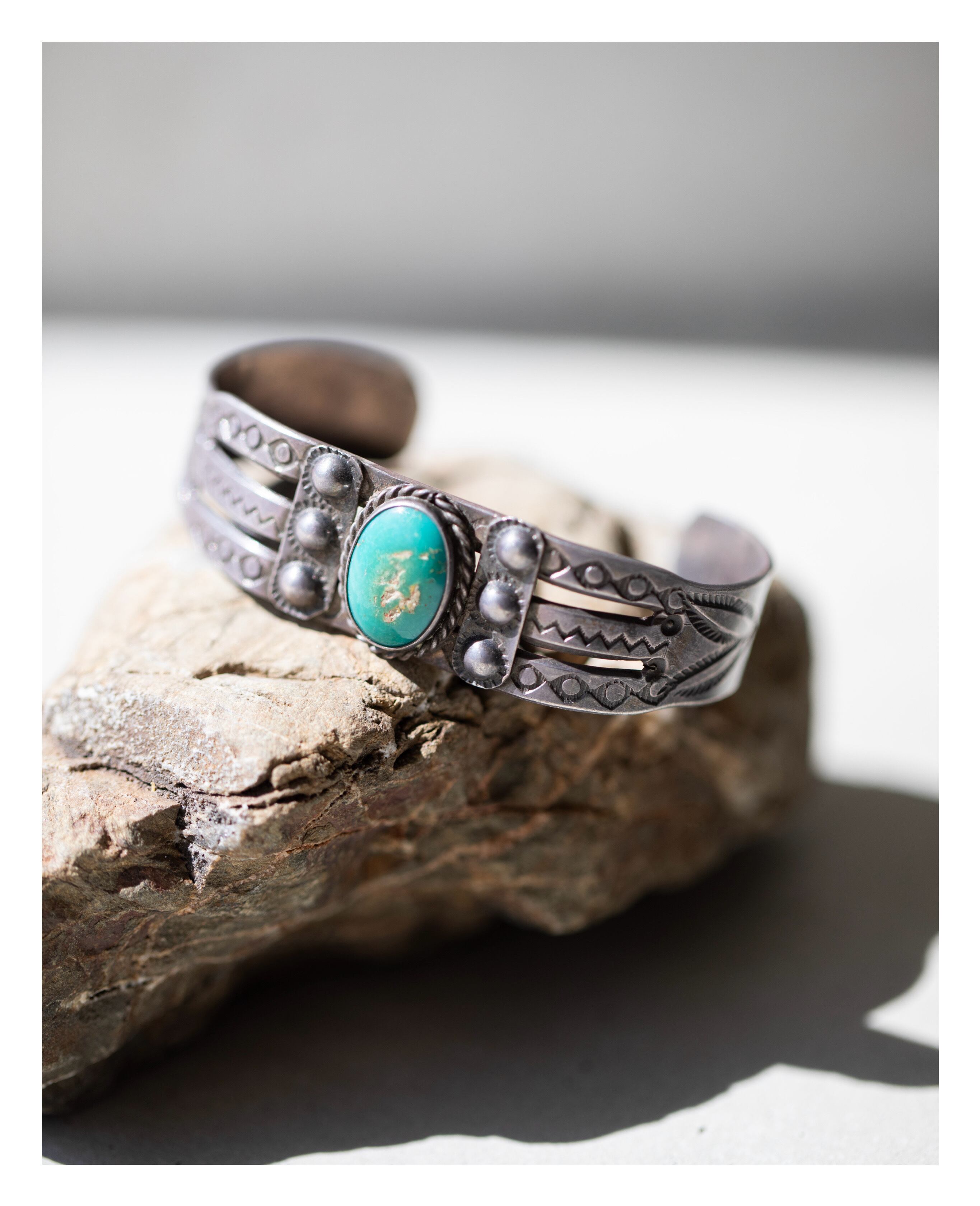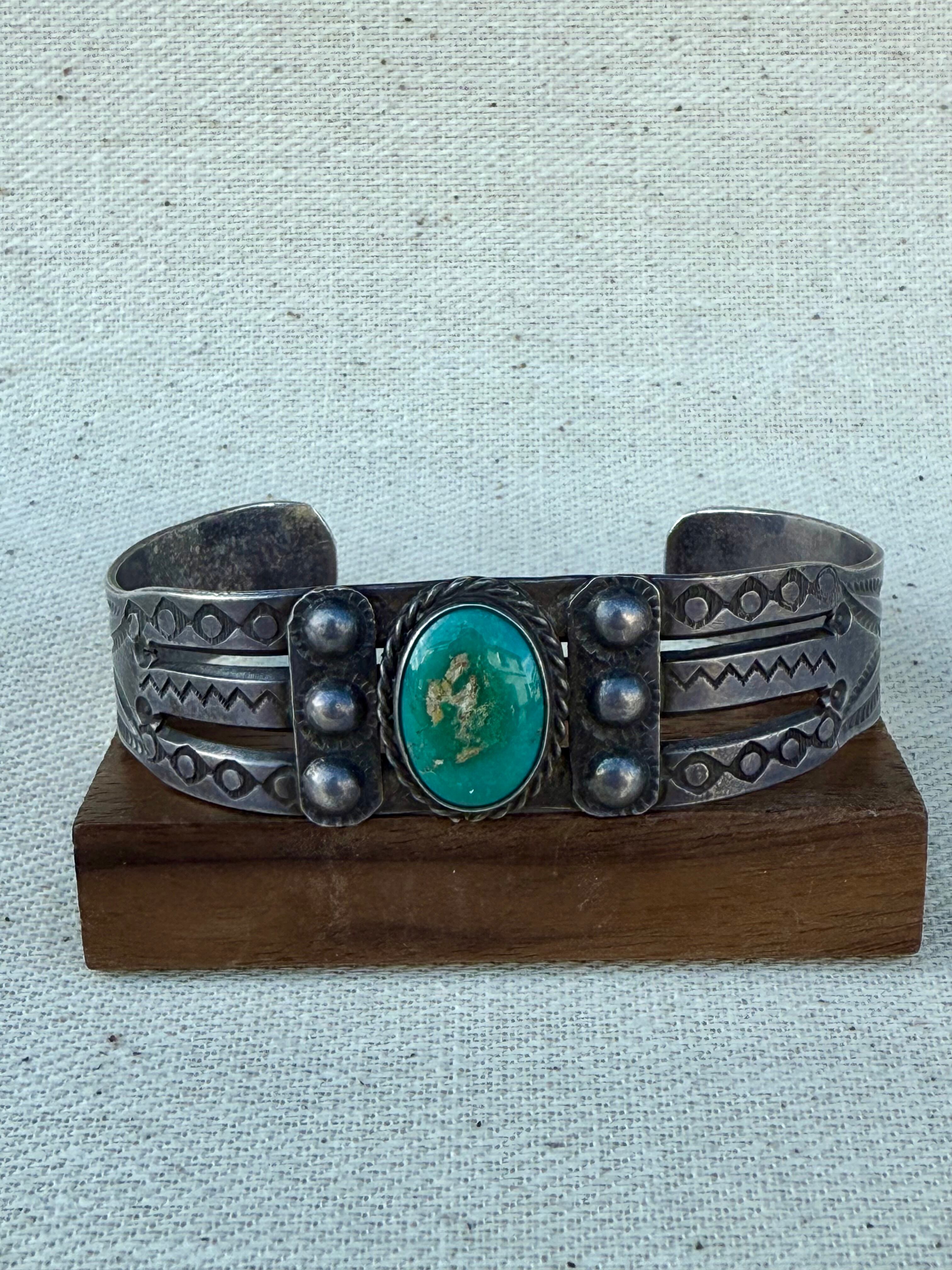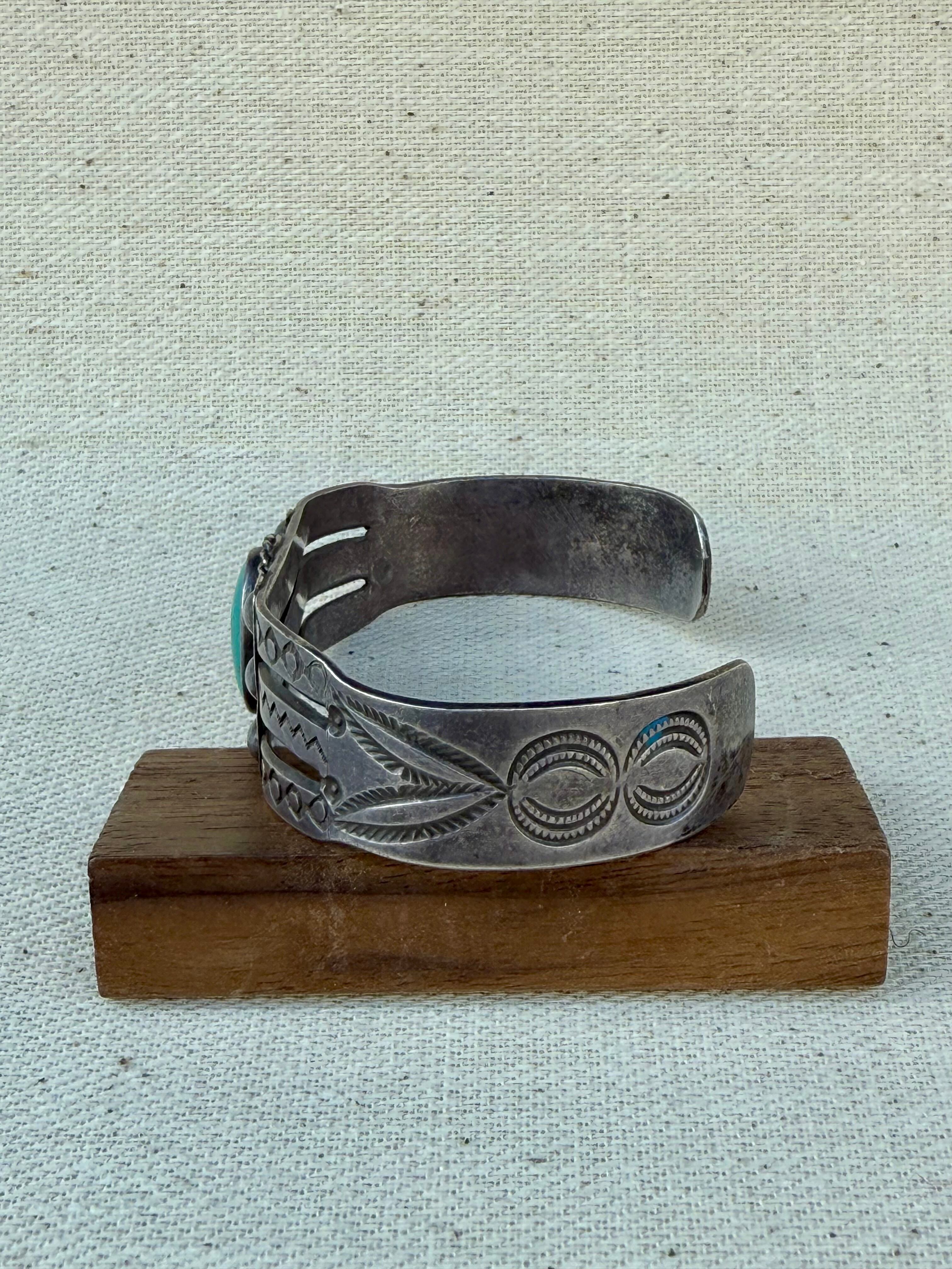Oval Turquoise Early Stamped Split-Shank Cuff (c. late 1910s–early 1920s)