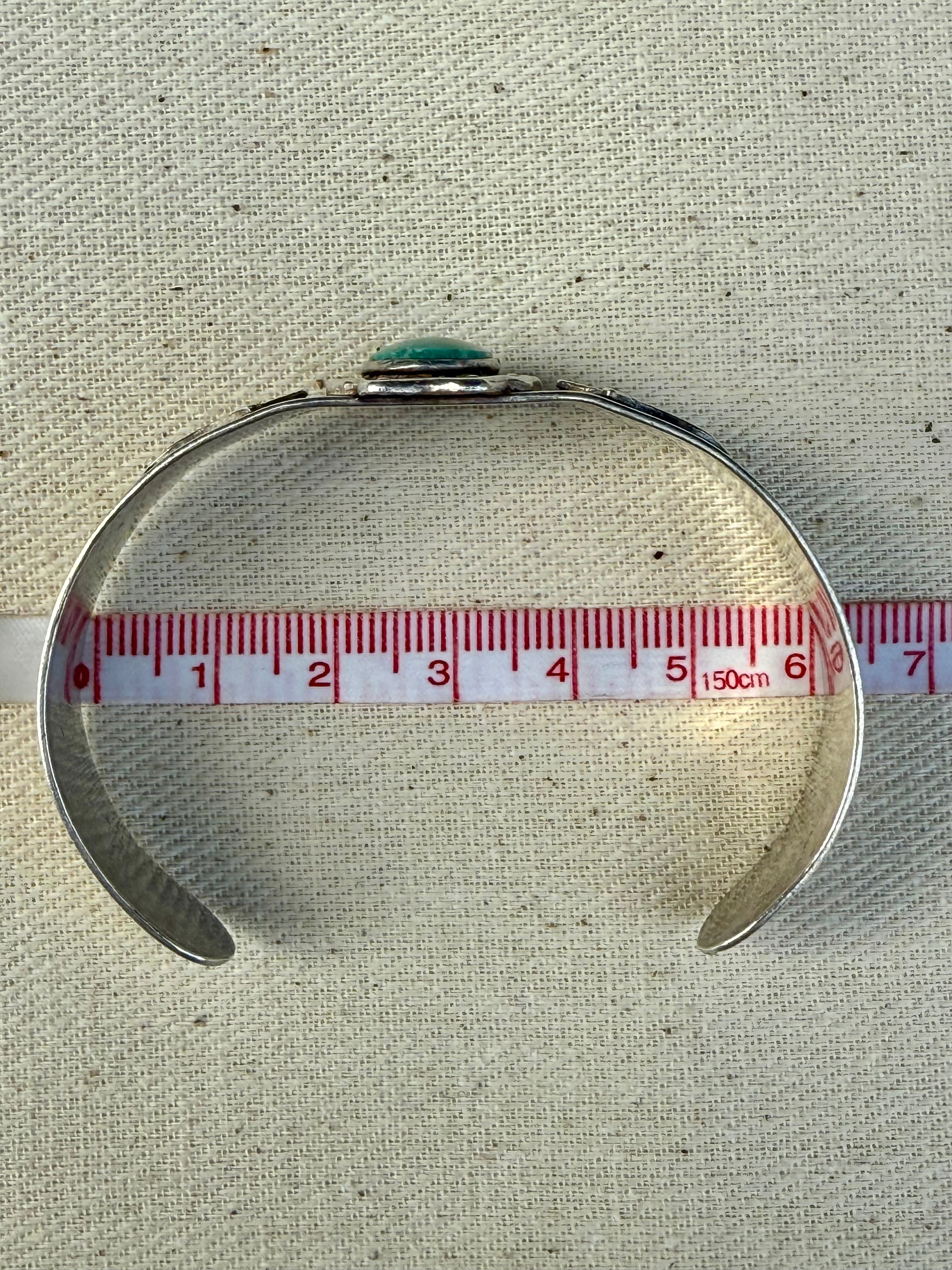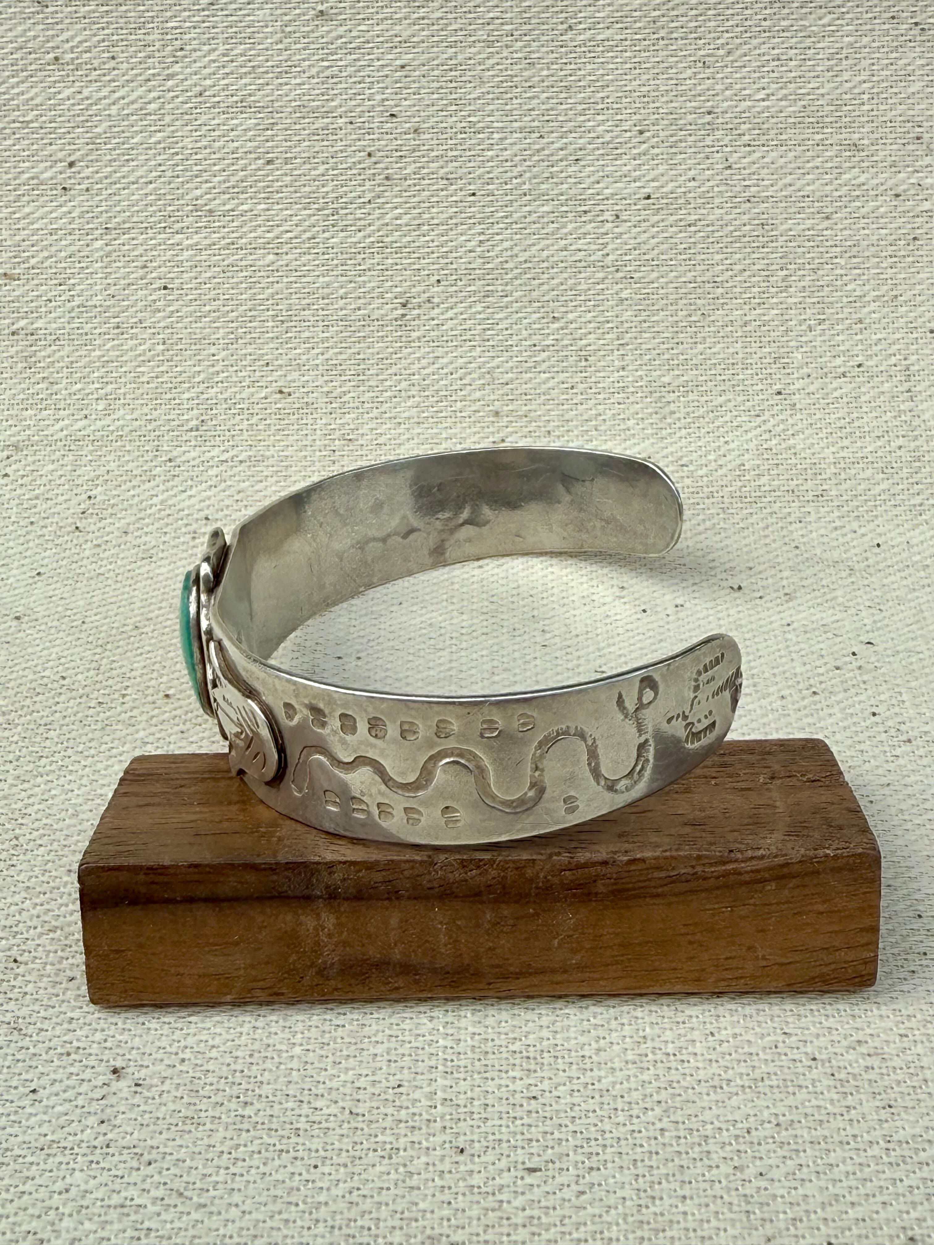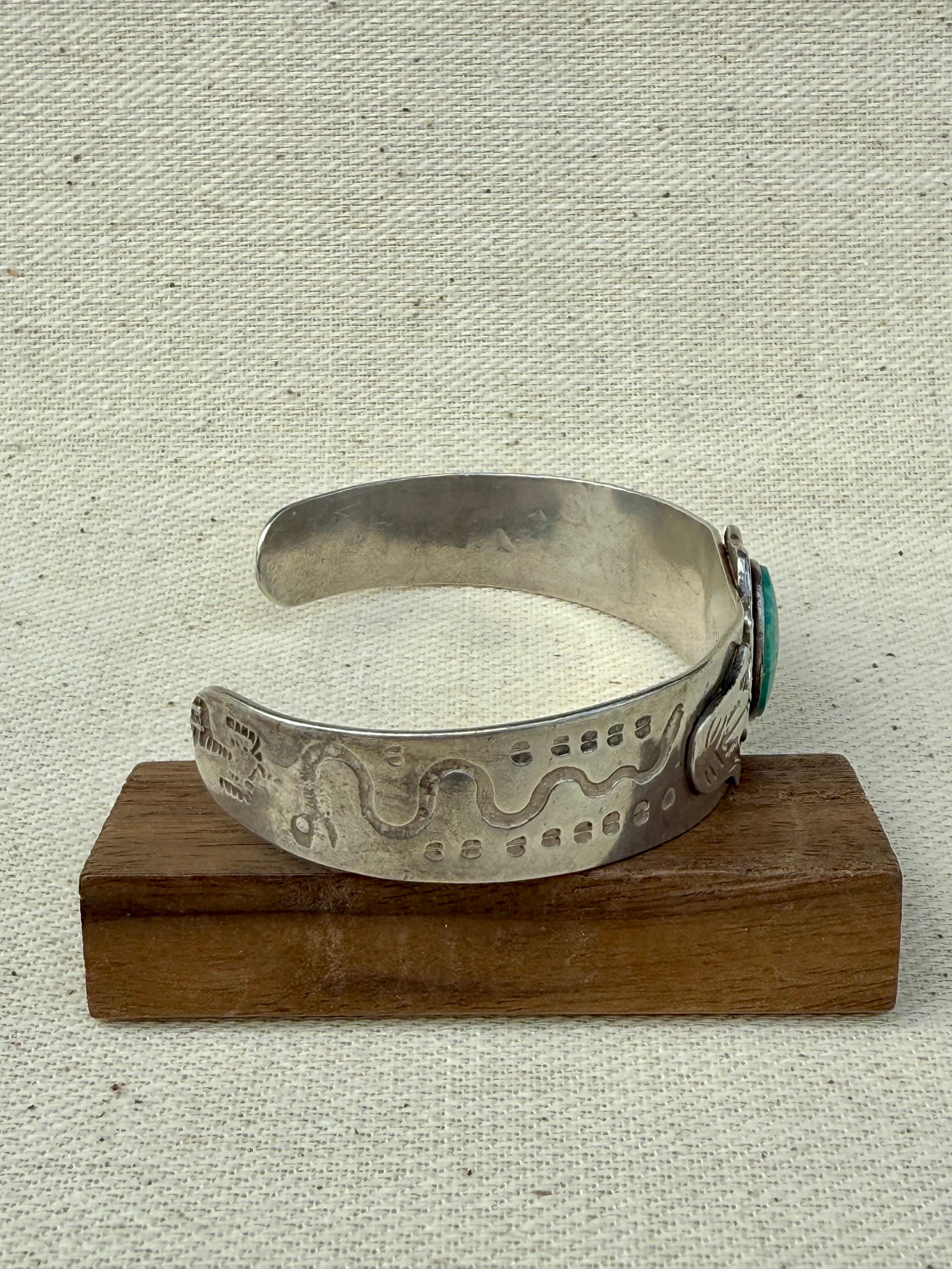Punched Arrow & Feather Slug with Snake Line Turquoise Cuff (c. 1930-1940s)