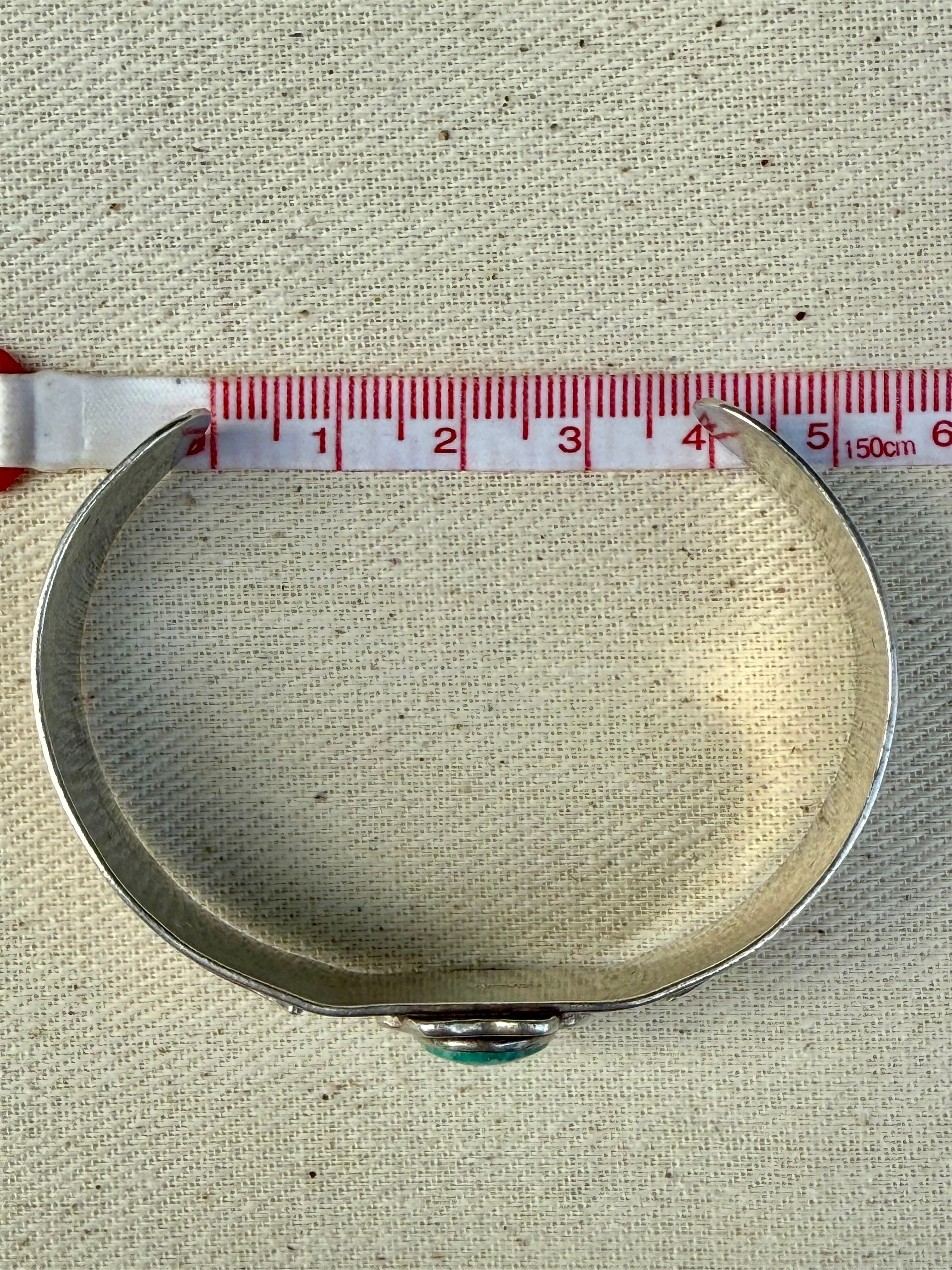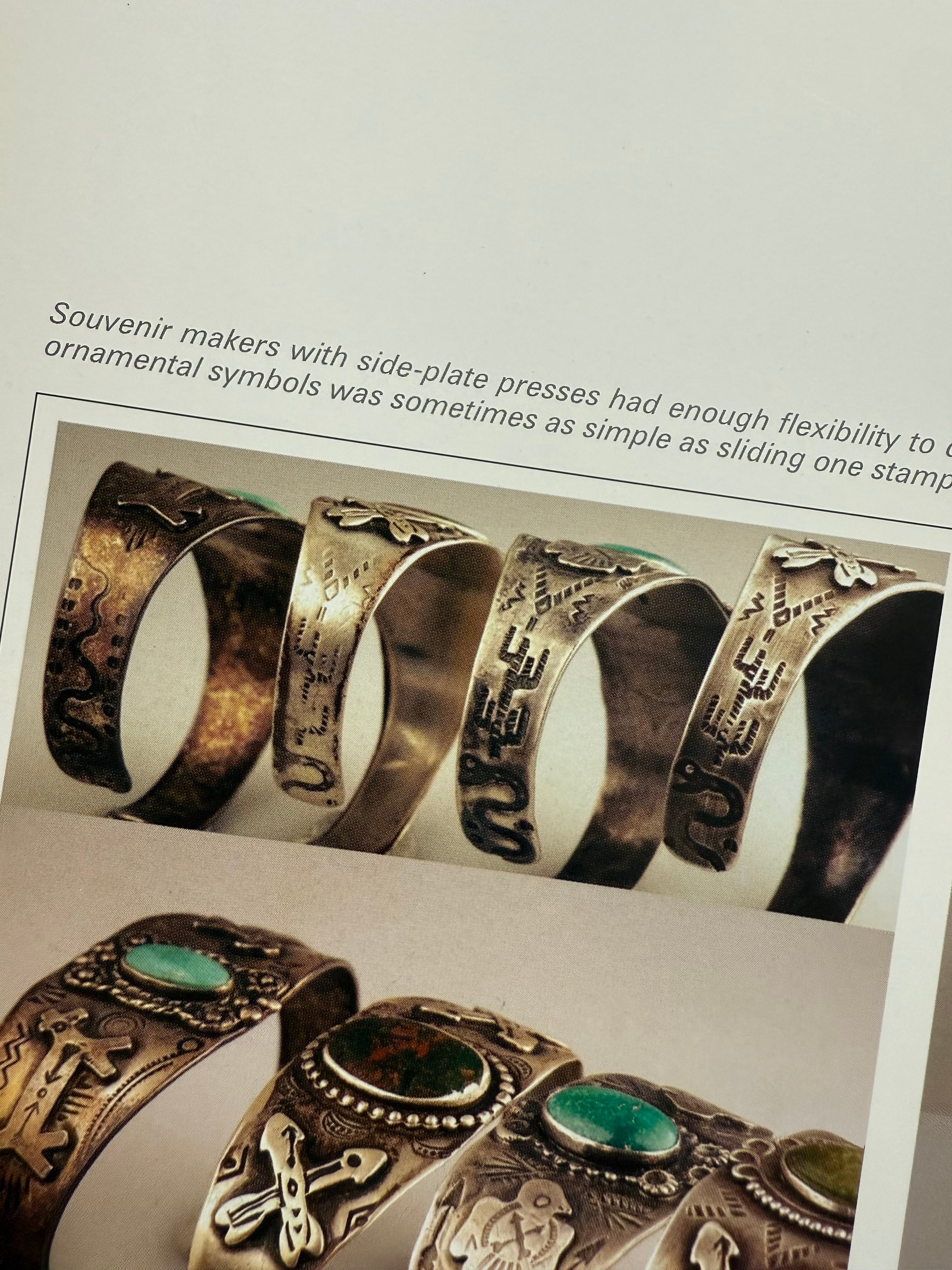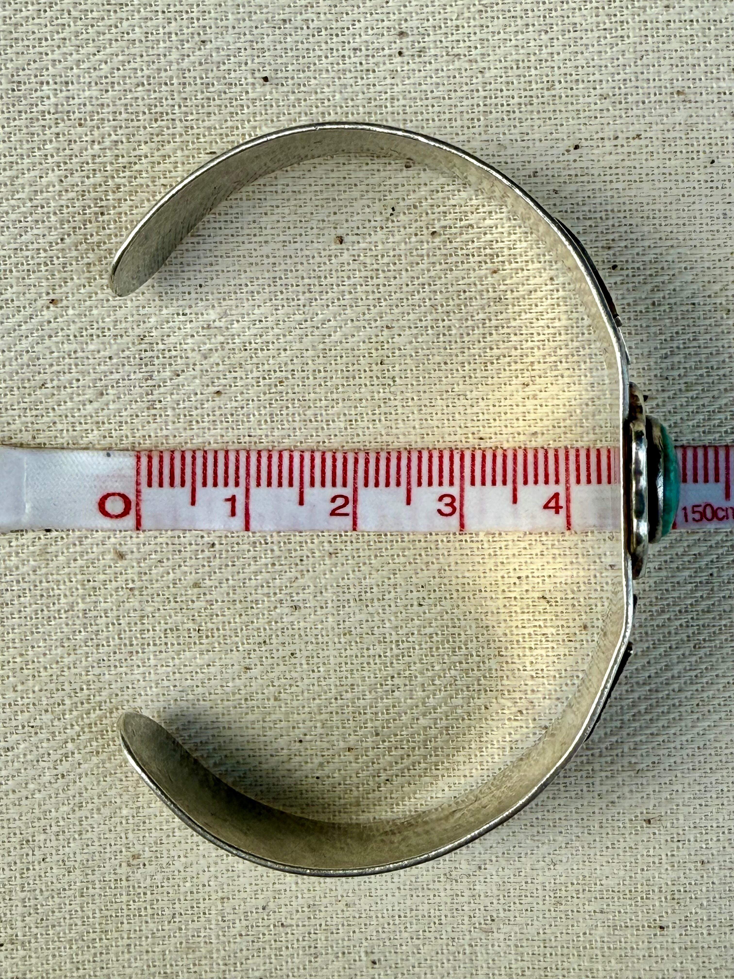 Punched Arrow & Feather Slug with Snake Line Turquoise Cuff (c. 1930-1940s)