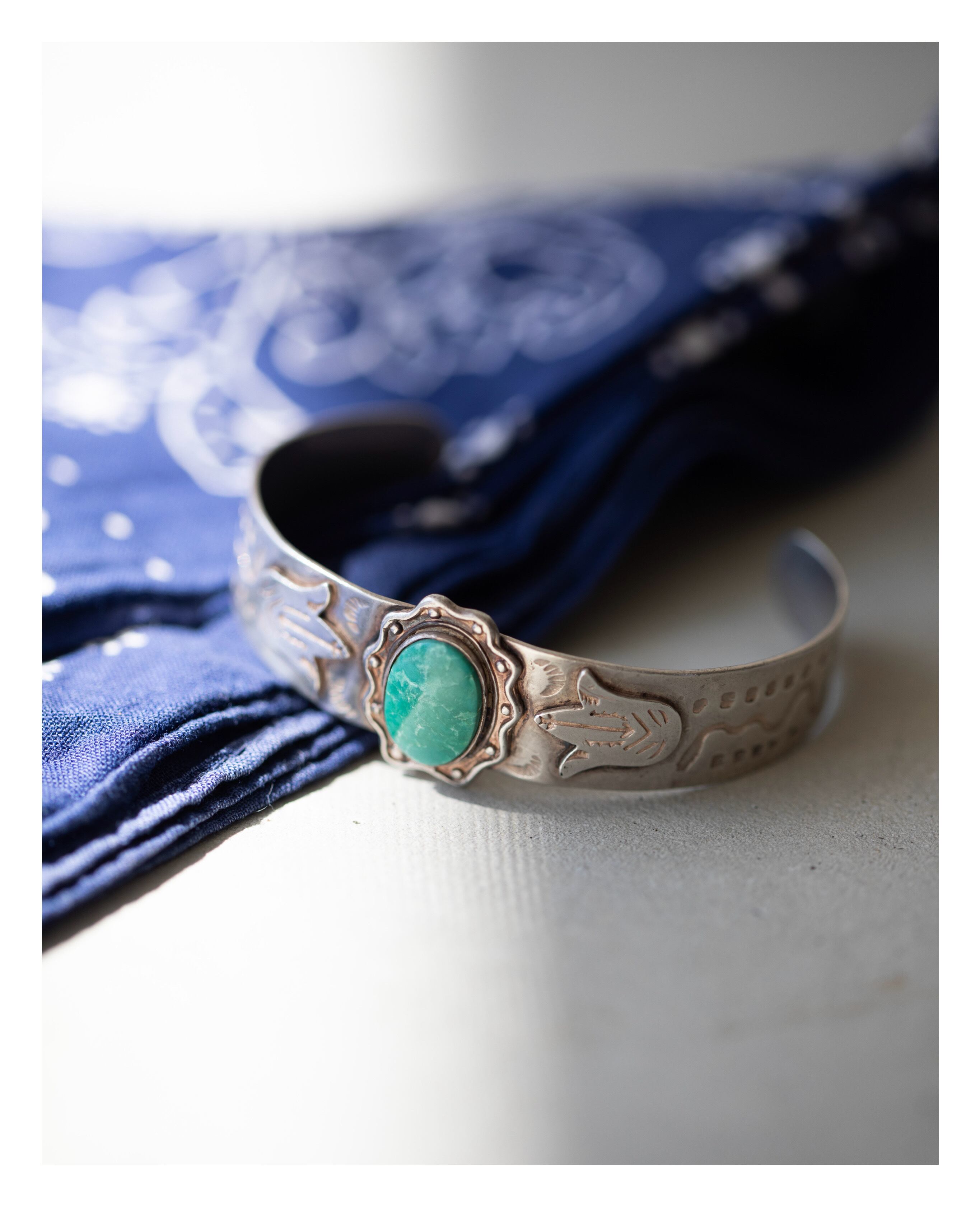 Punched Arrow & Feather Slug with Snake Line Turquoise Cuff