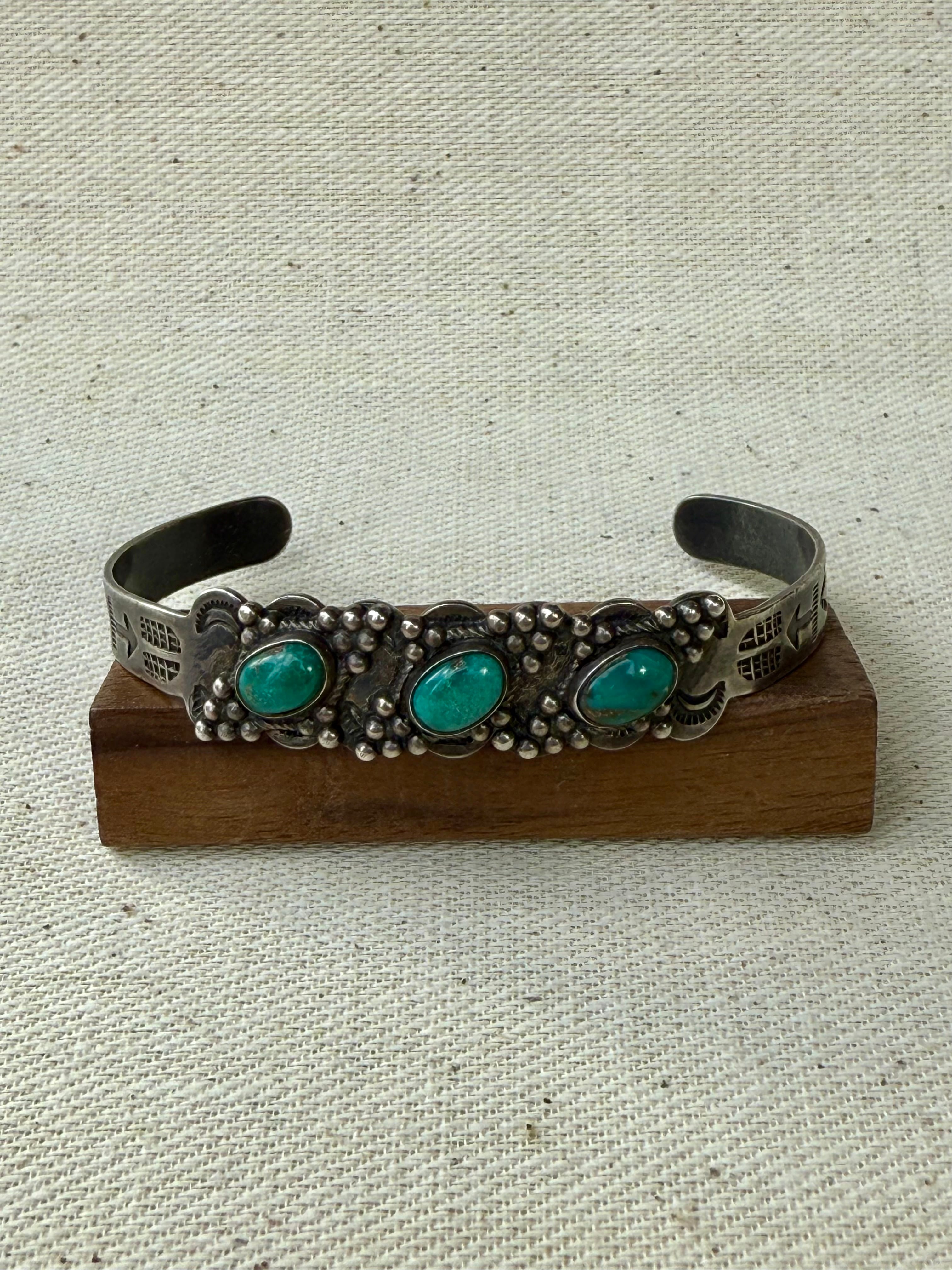 Silver Arrow Triple Turquoise Cuff (c. 1930-1940s)