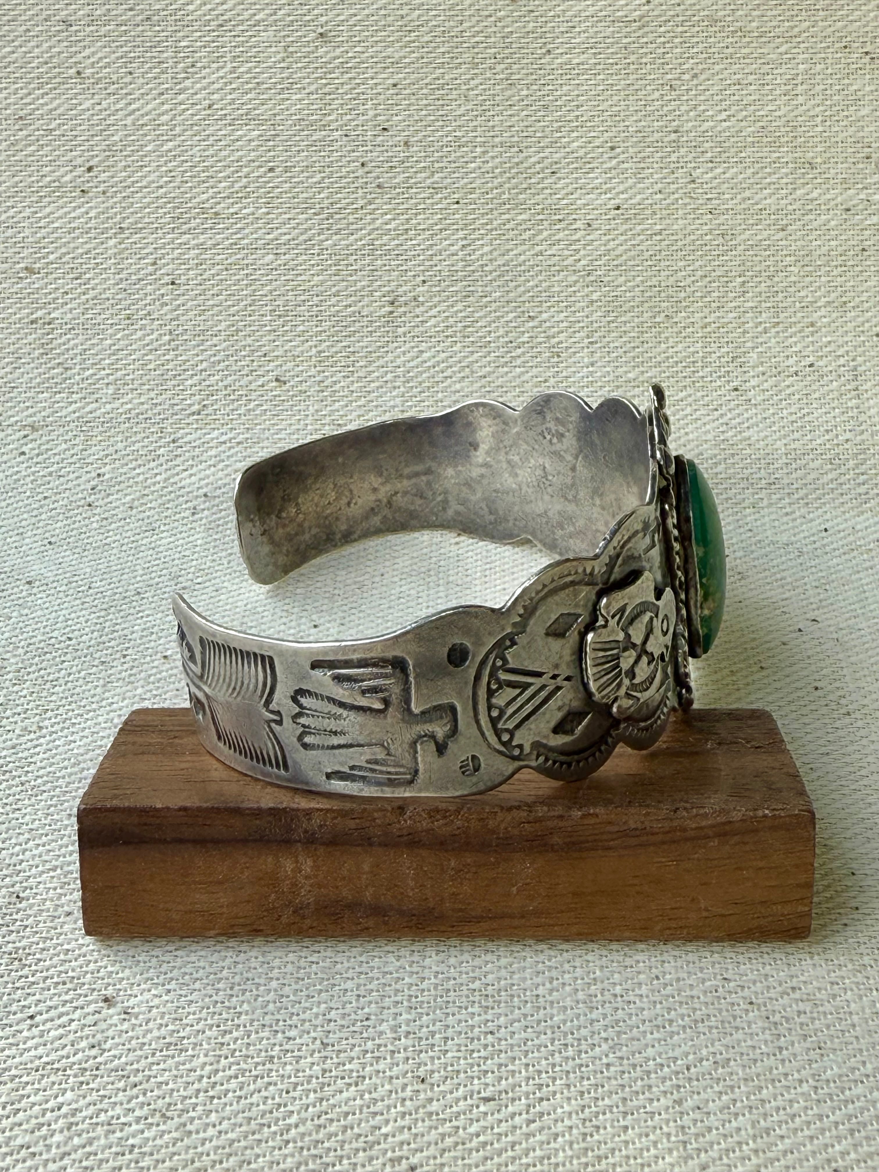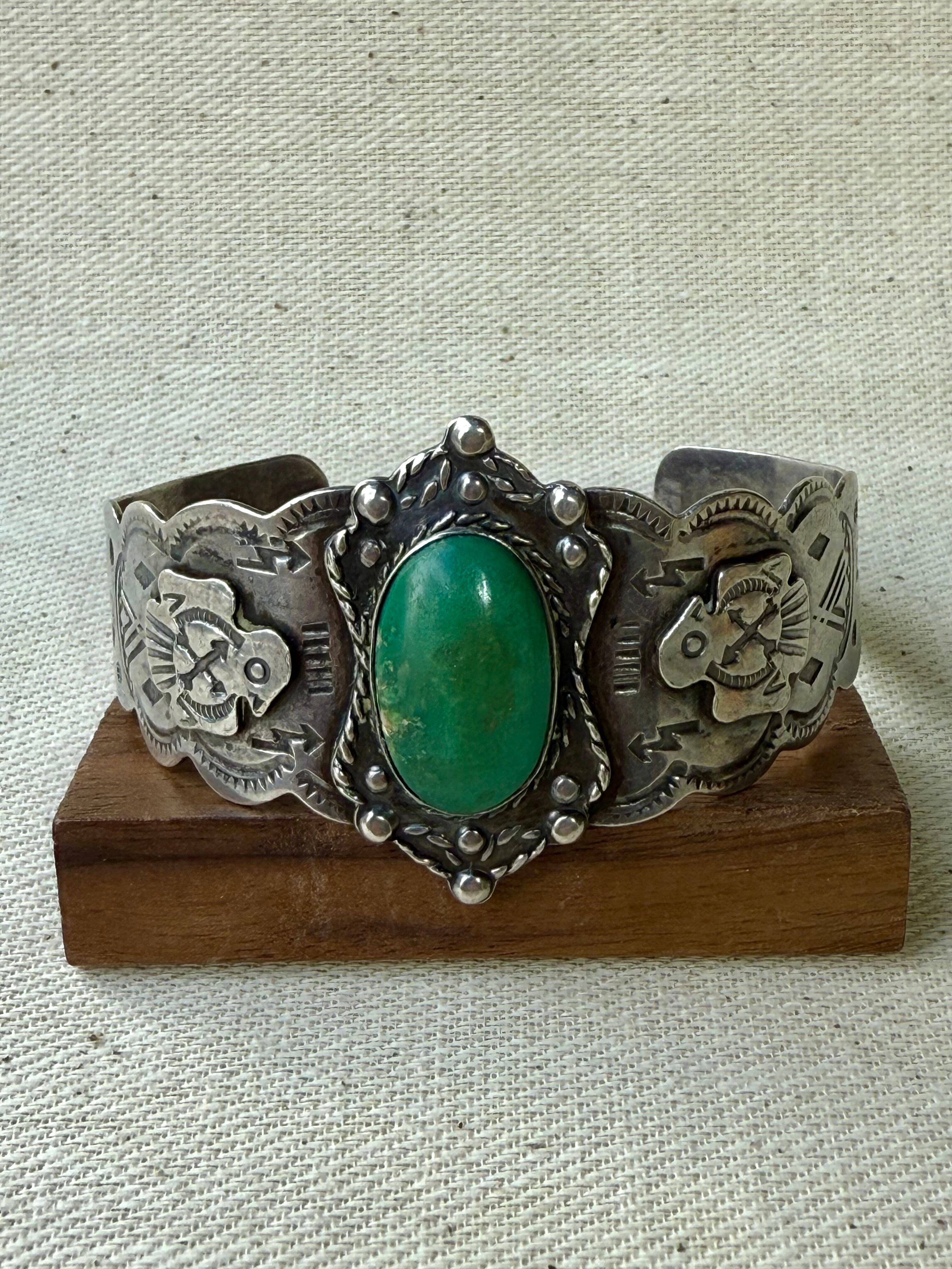 Thunderbird & Green Turquoise Wide Cuff (c. 1930-1940s)