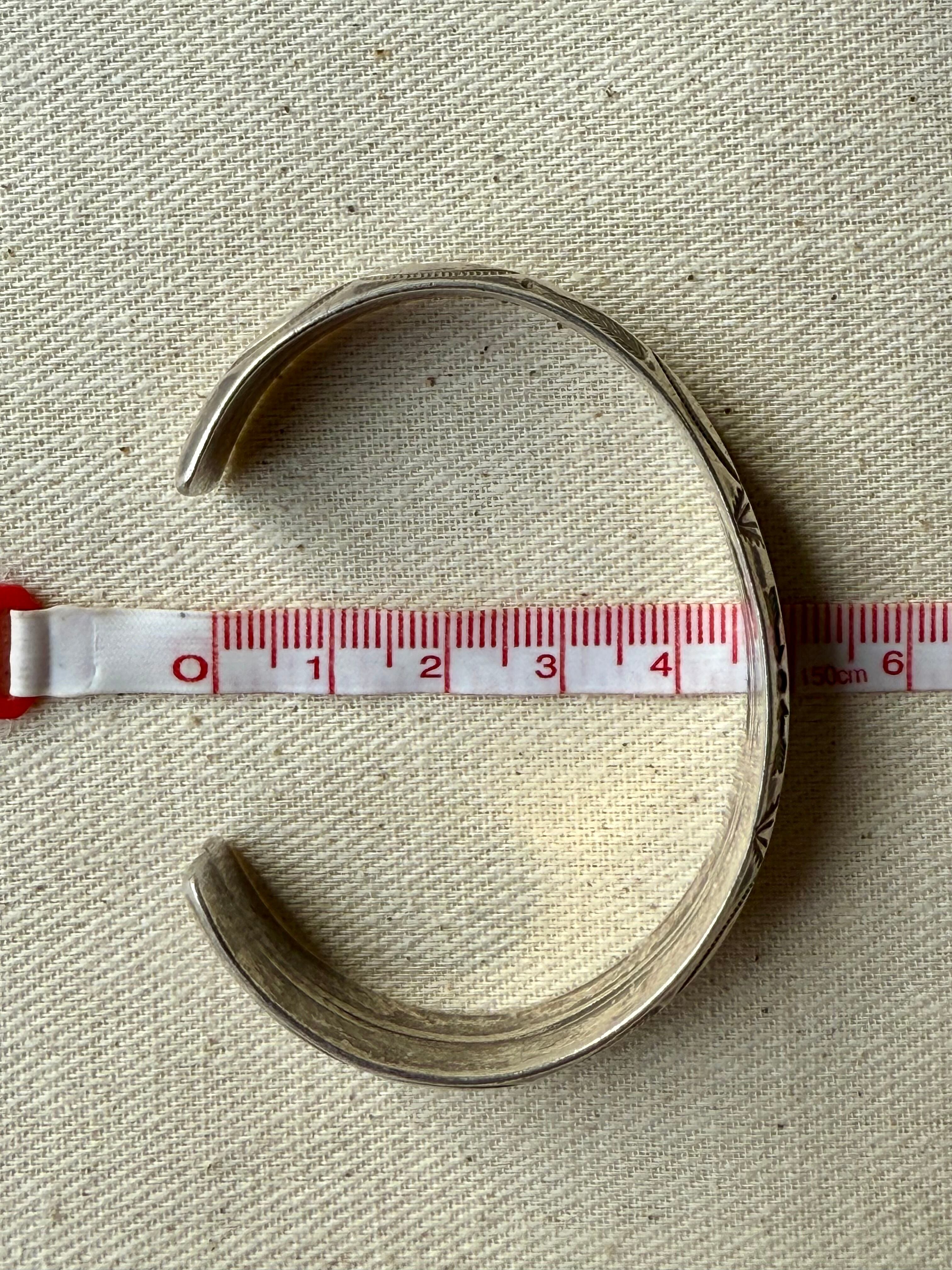 約14.3cm + 3cmオープニング x 幅1.4cm (手首にはめる際、多少の調整は可能です。)
