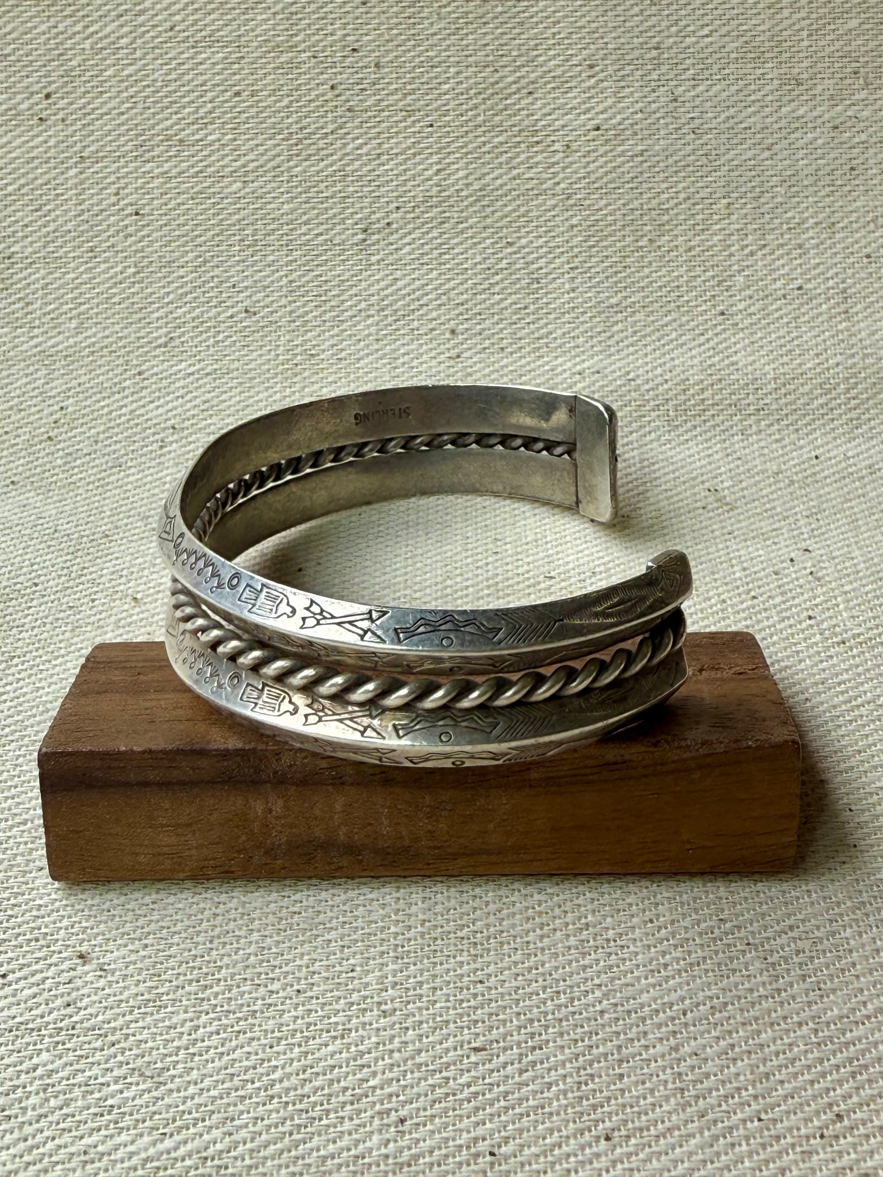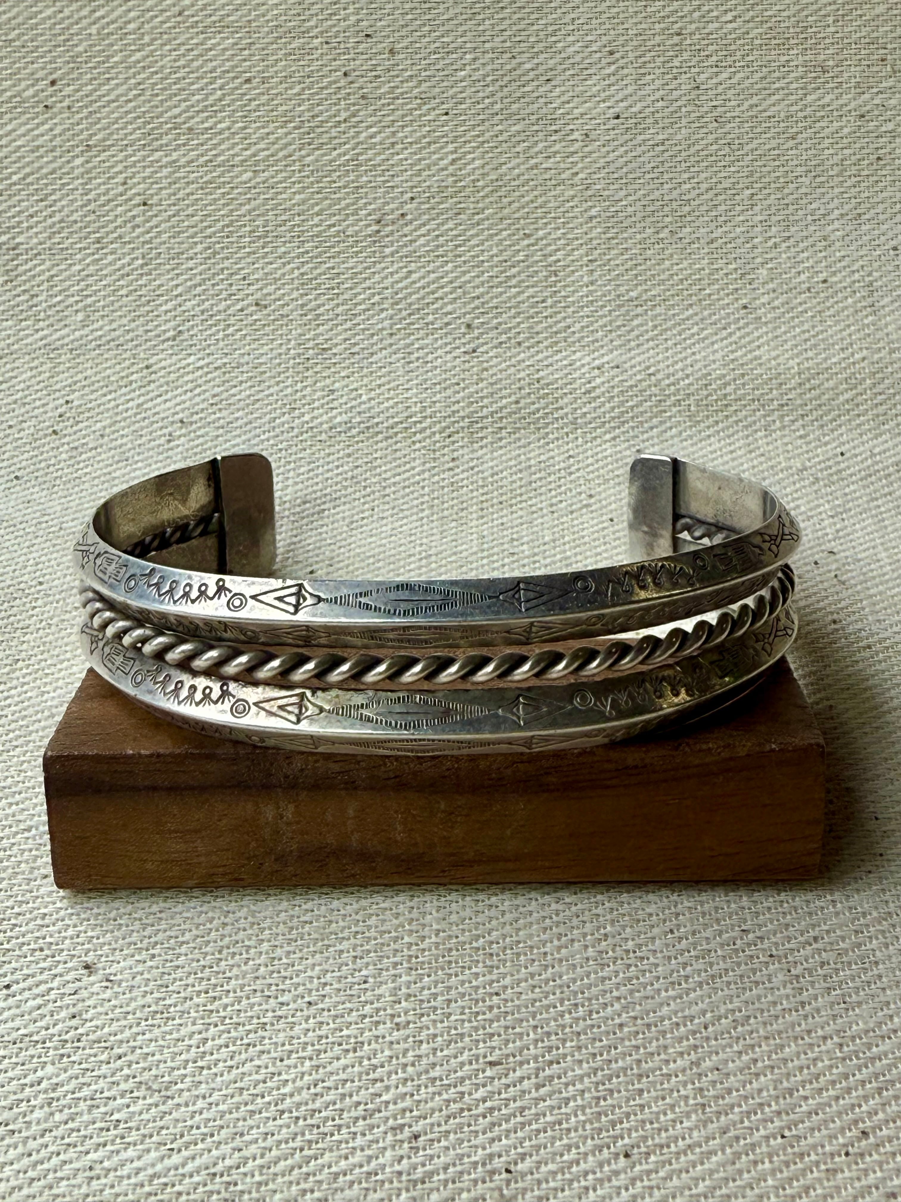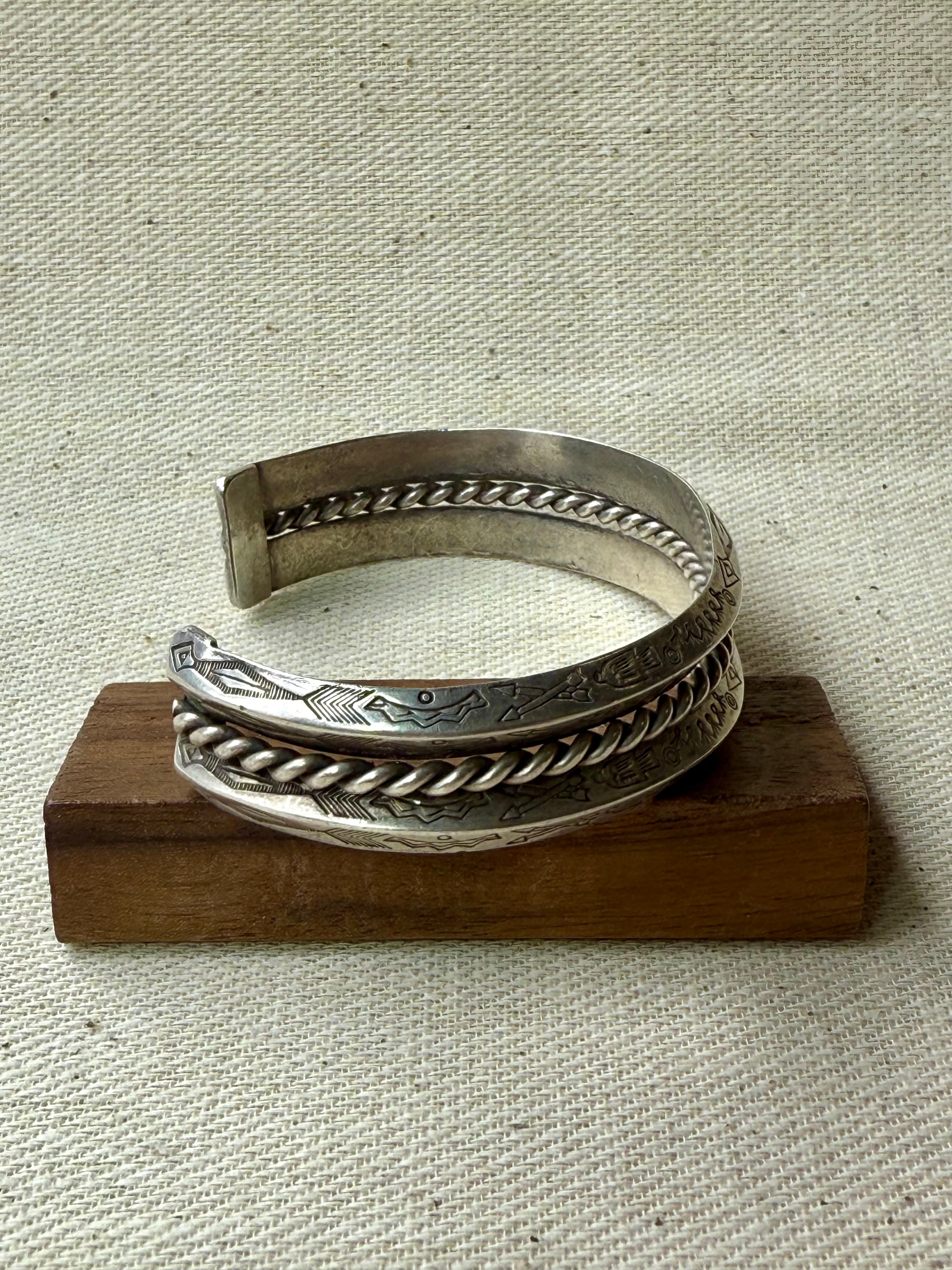 Double Carinated Stamped Rope Cuff Bracelet (c. 1930-1940s)