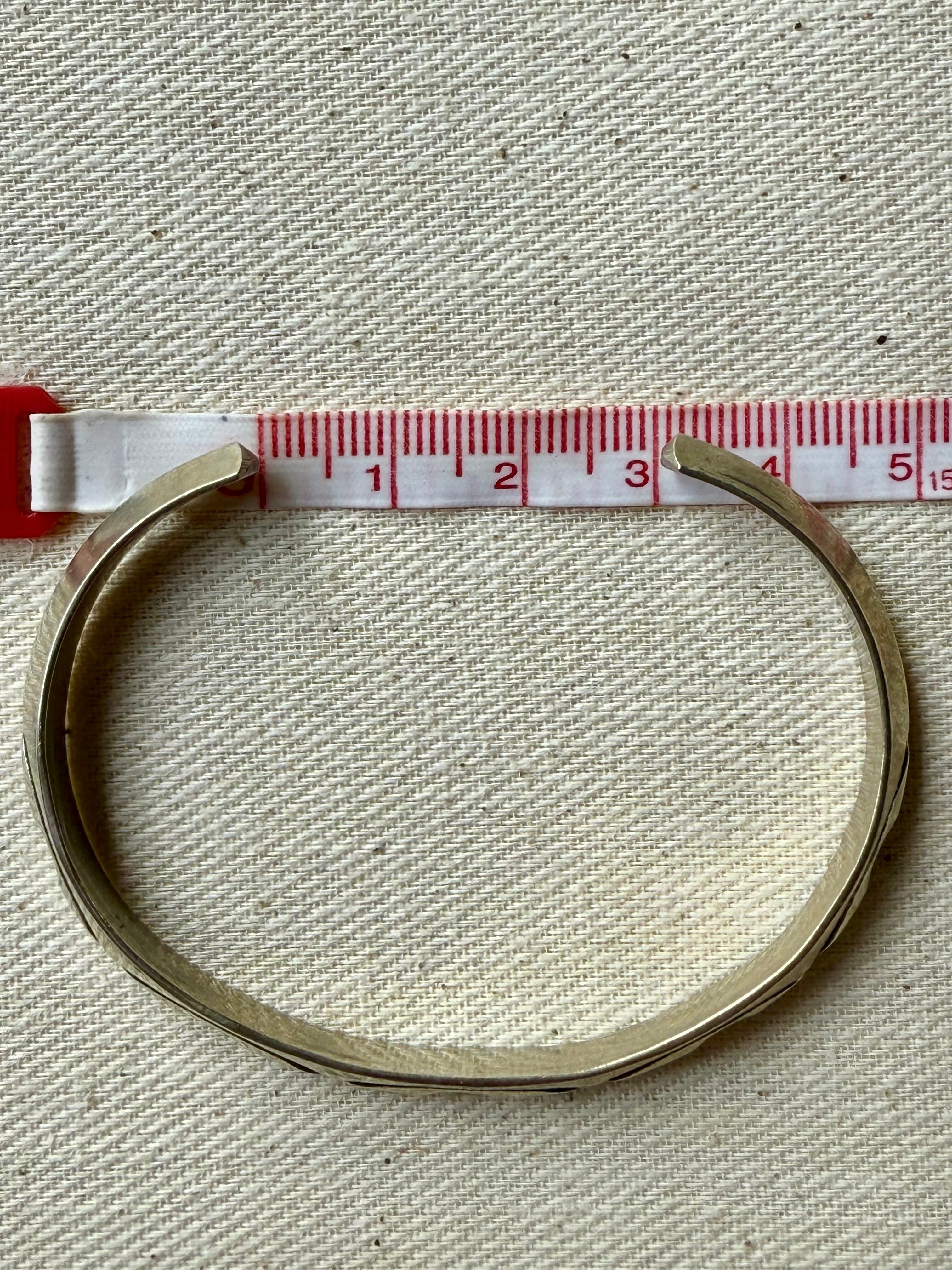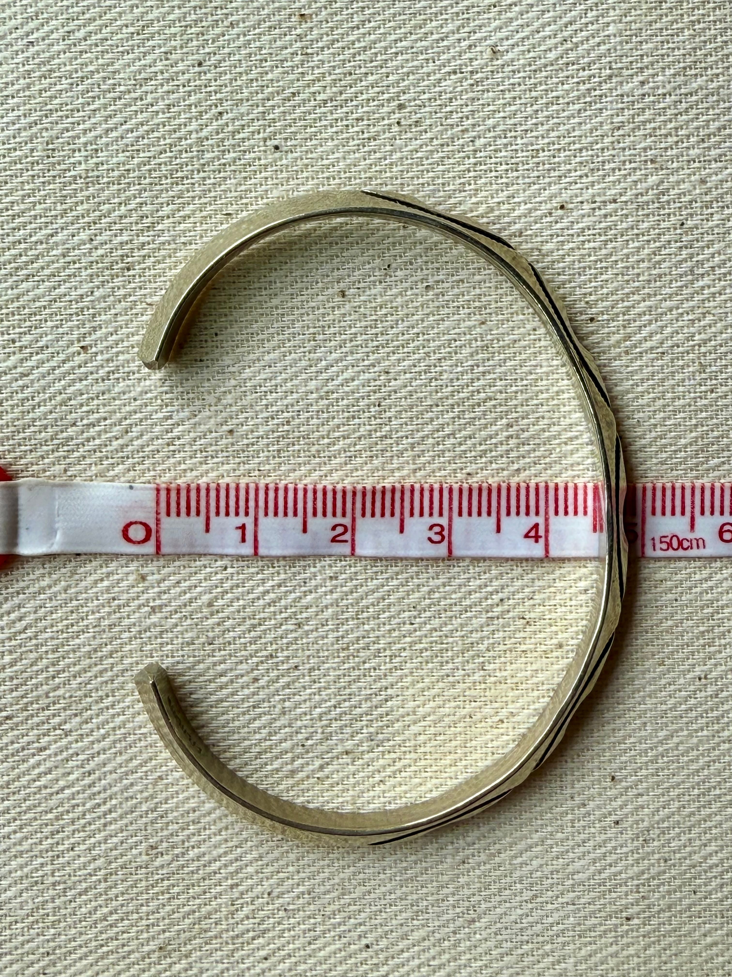 約14cm + 3cmオープニング x 幅0.5cm (手首にはめる際、多少の調整は可能です。)
