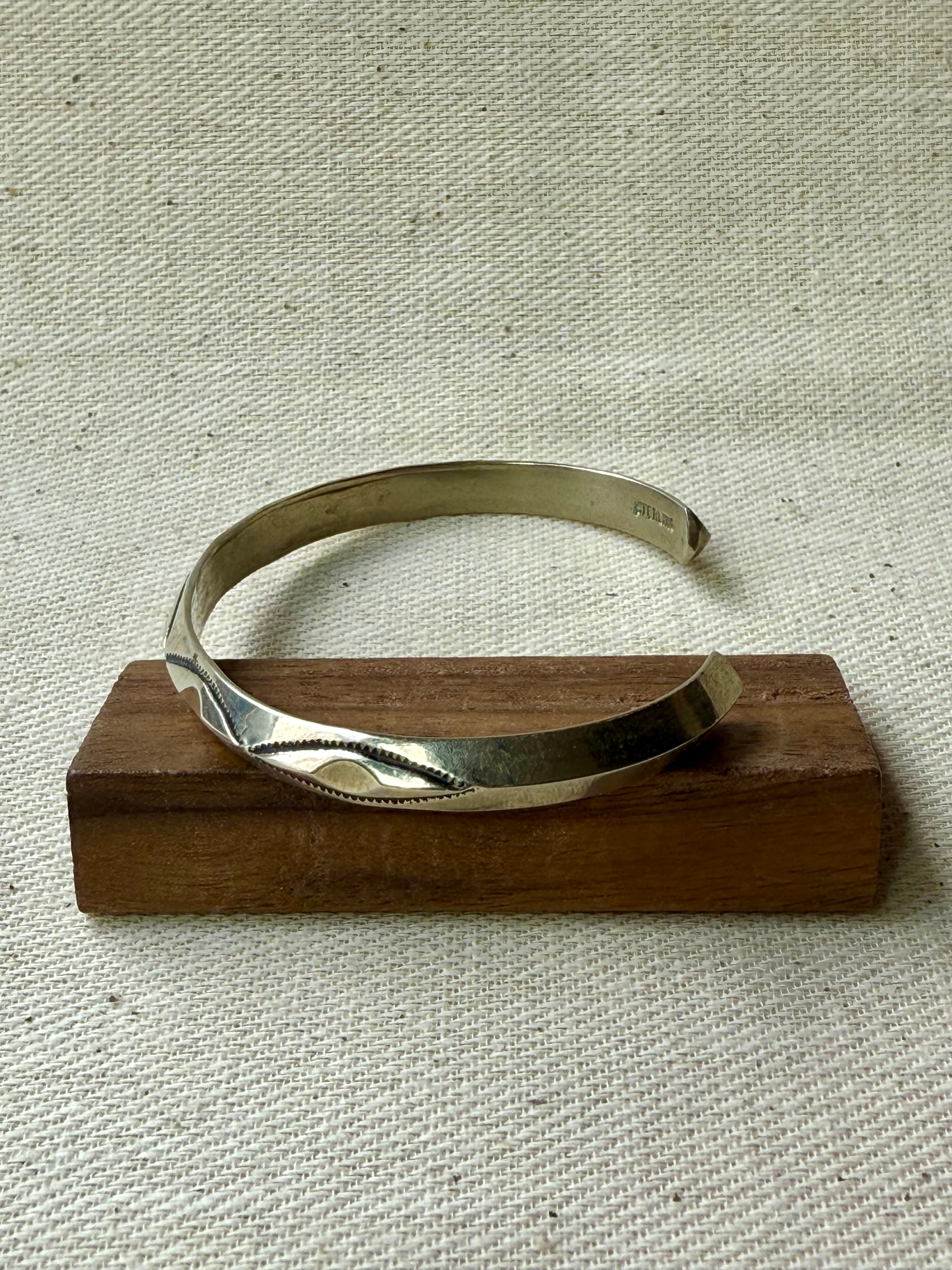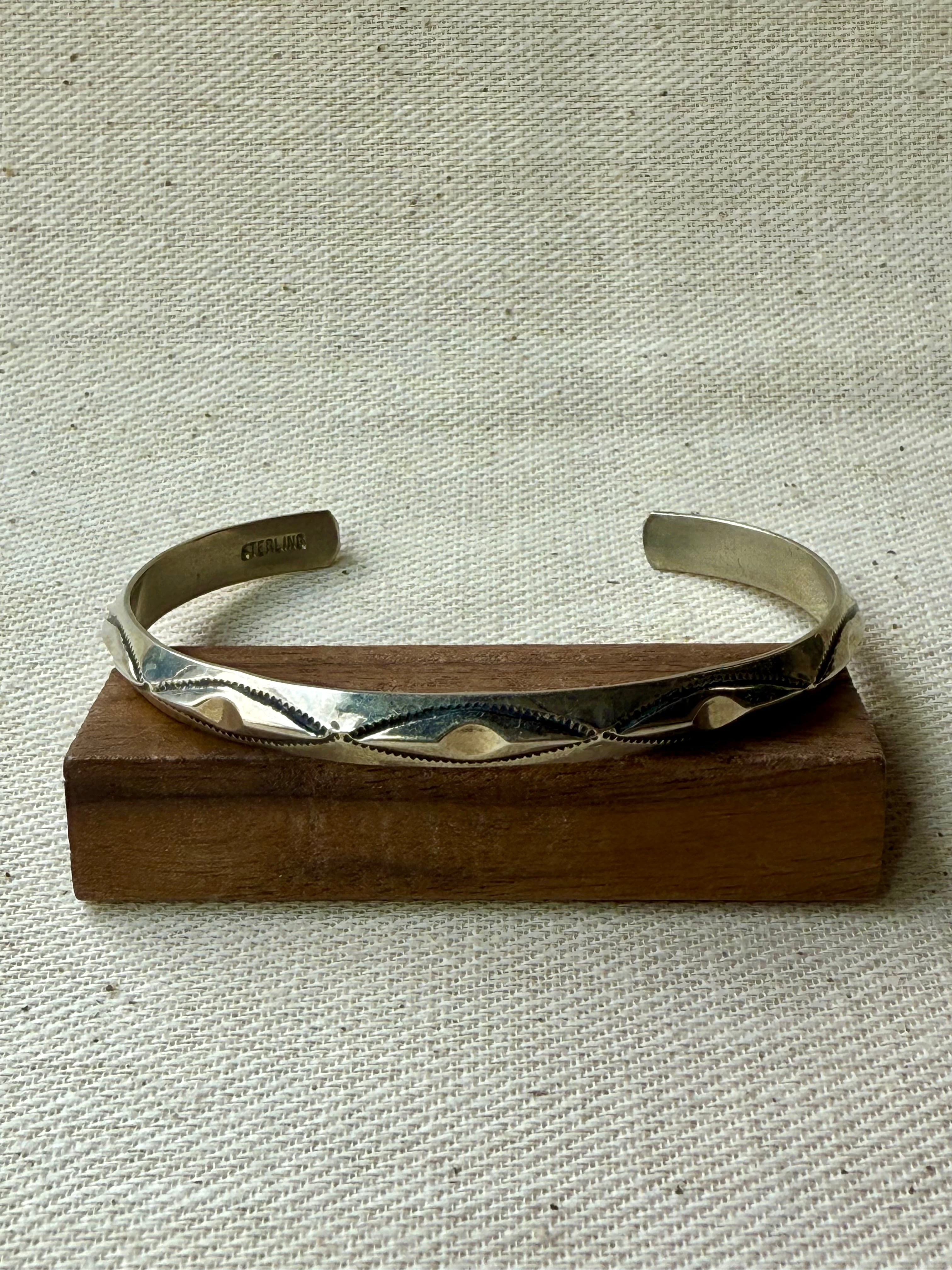 ミッドセンチュリー期(1940〜60年代)に Navajo(ナバホ)アーティストが制作した、控えめな稜線(Carinated)をもつスタンプワークの作品です。