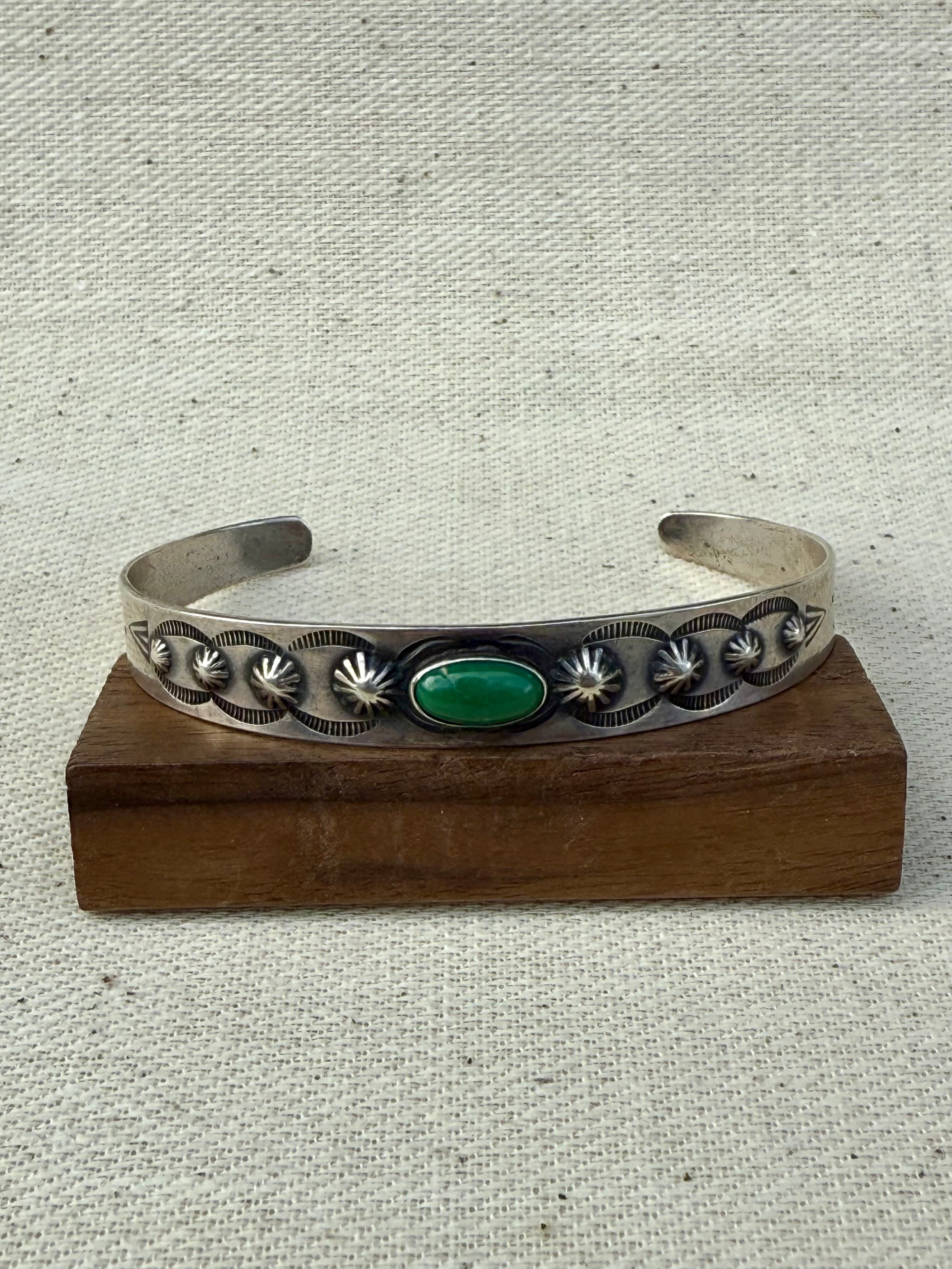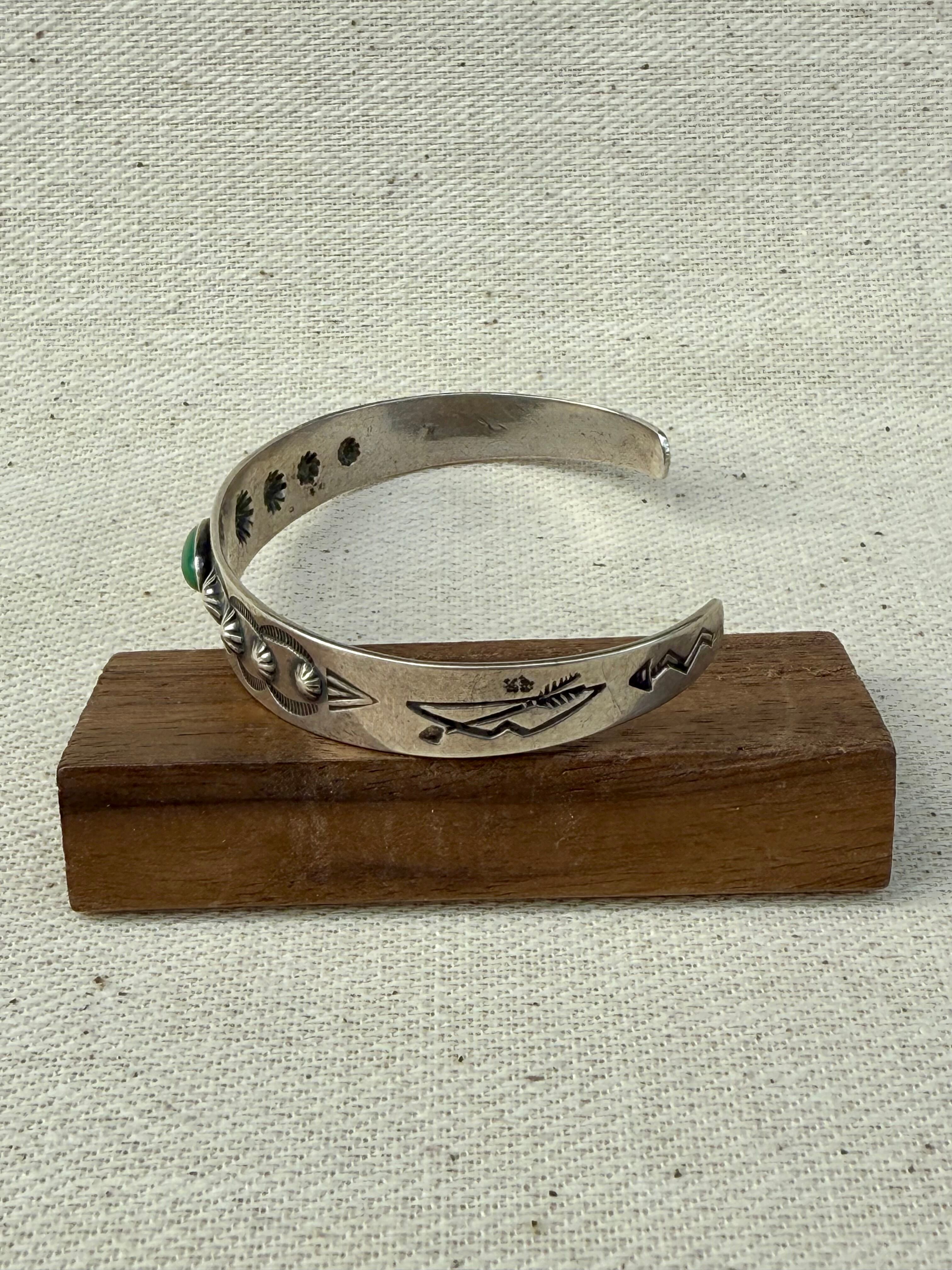 Punched Button Green Turquoise Cuff (c. 1930-1940s)