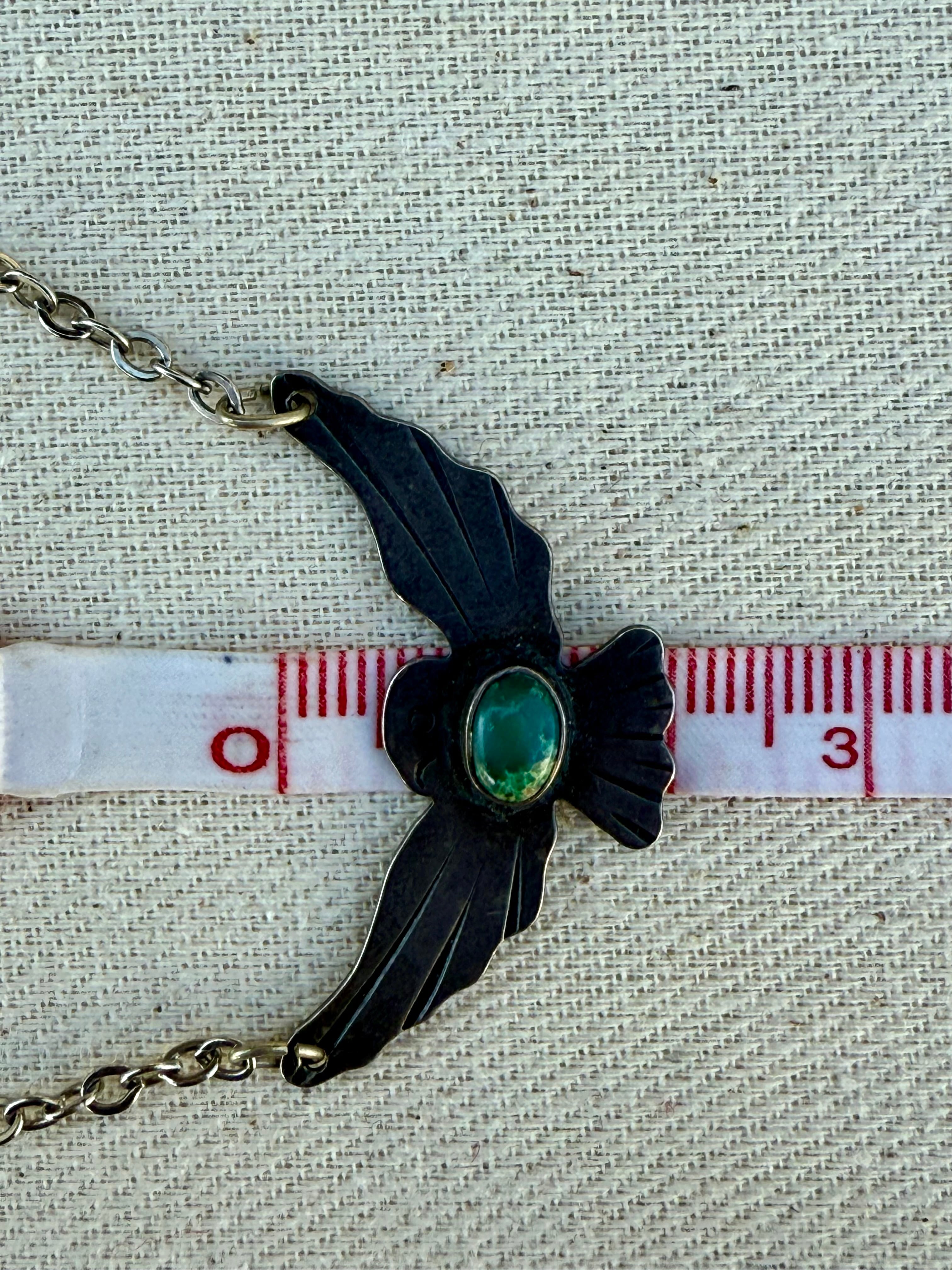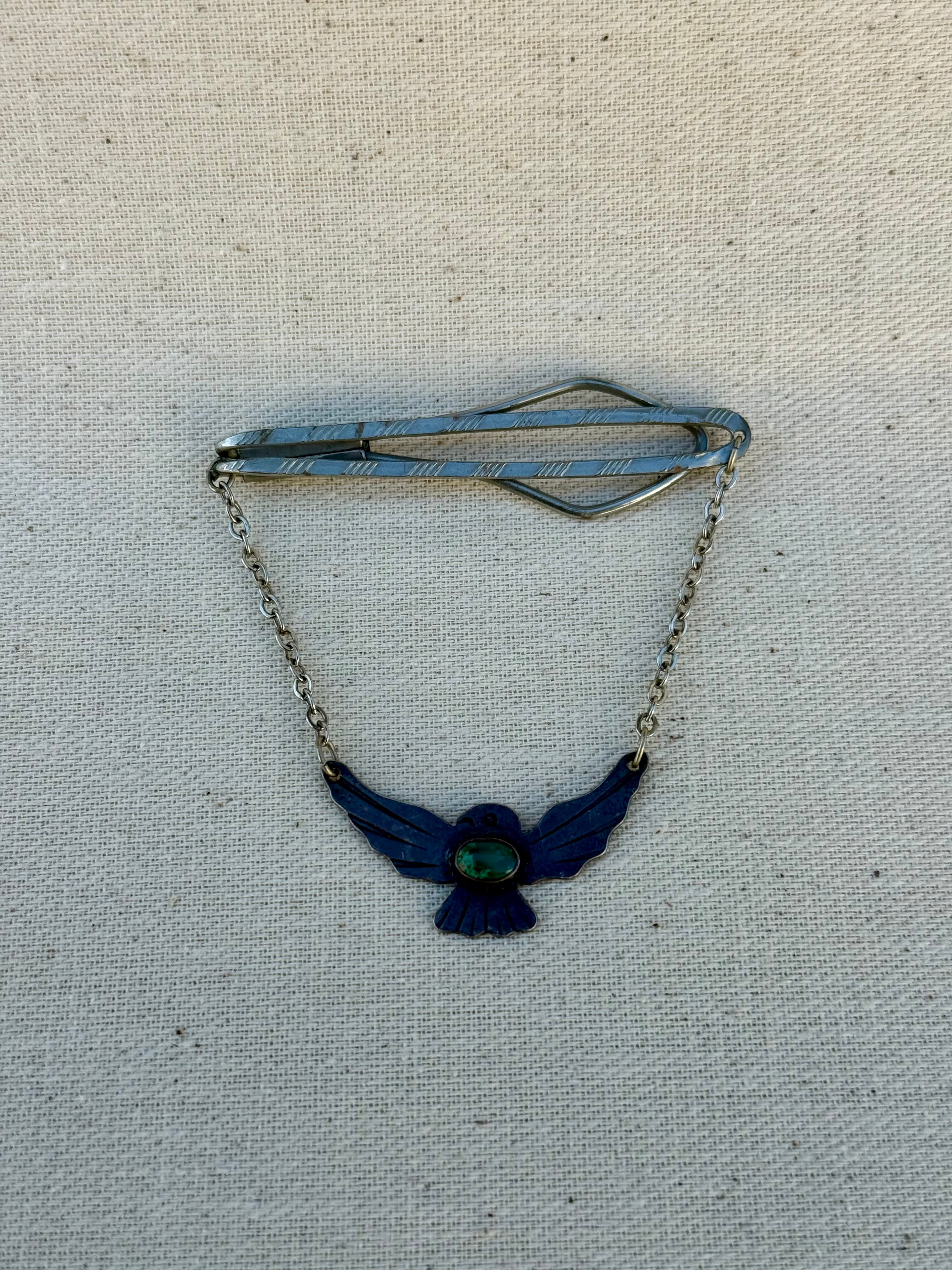 羽を大きく広げたシルエットは象徴性が強く、当時のサウスウエスト・スーベニアジュエリーにおいて人気の高かった意匠です。