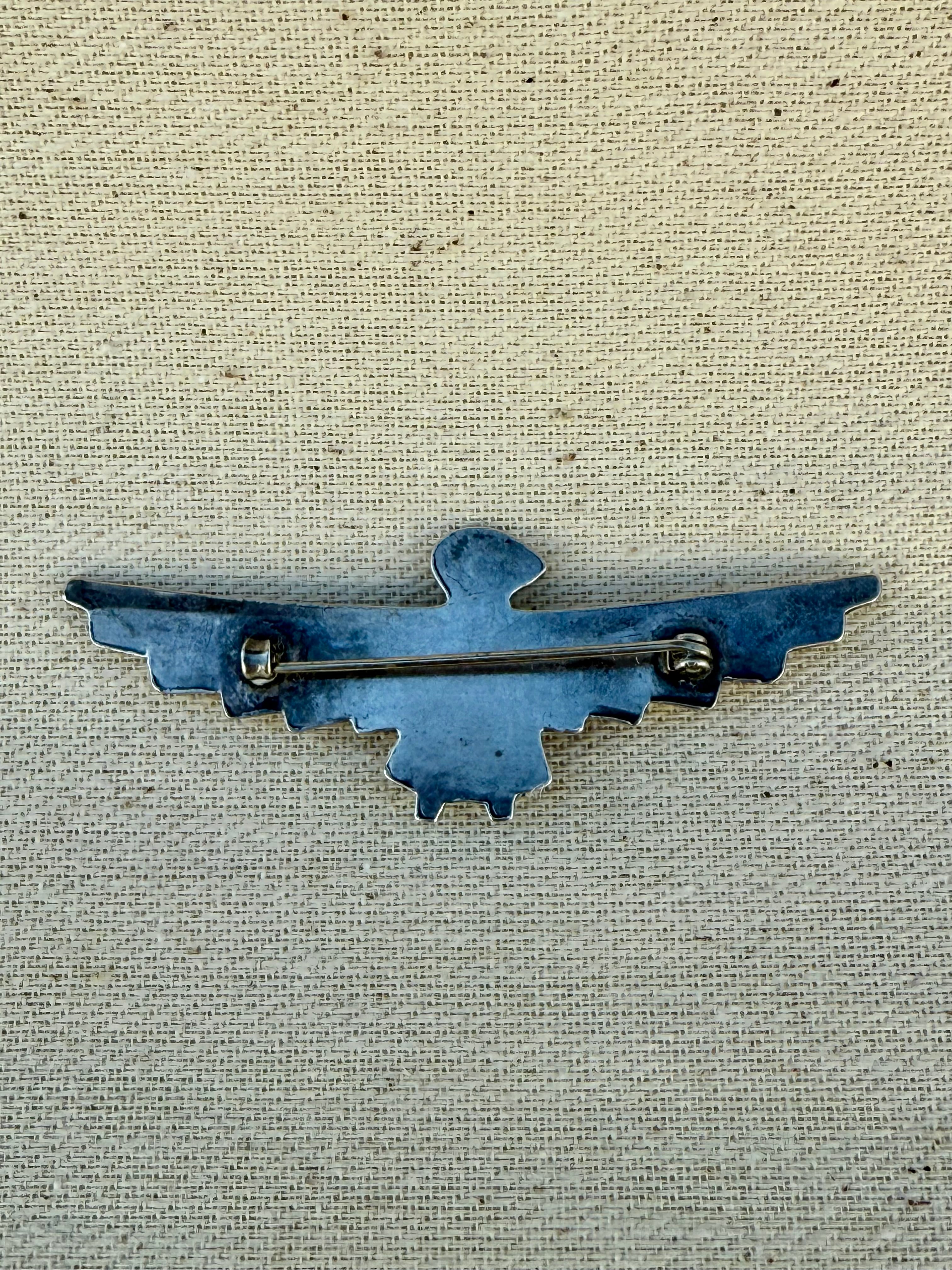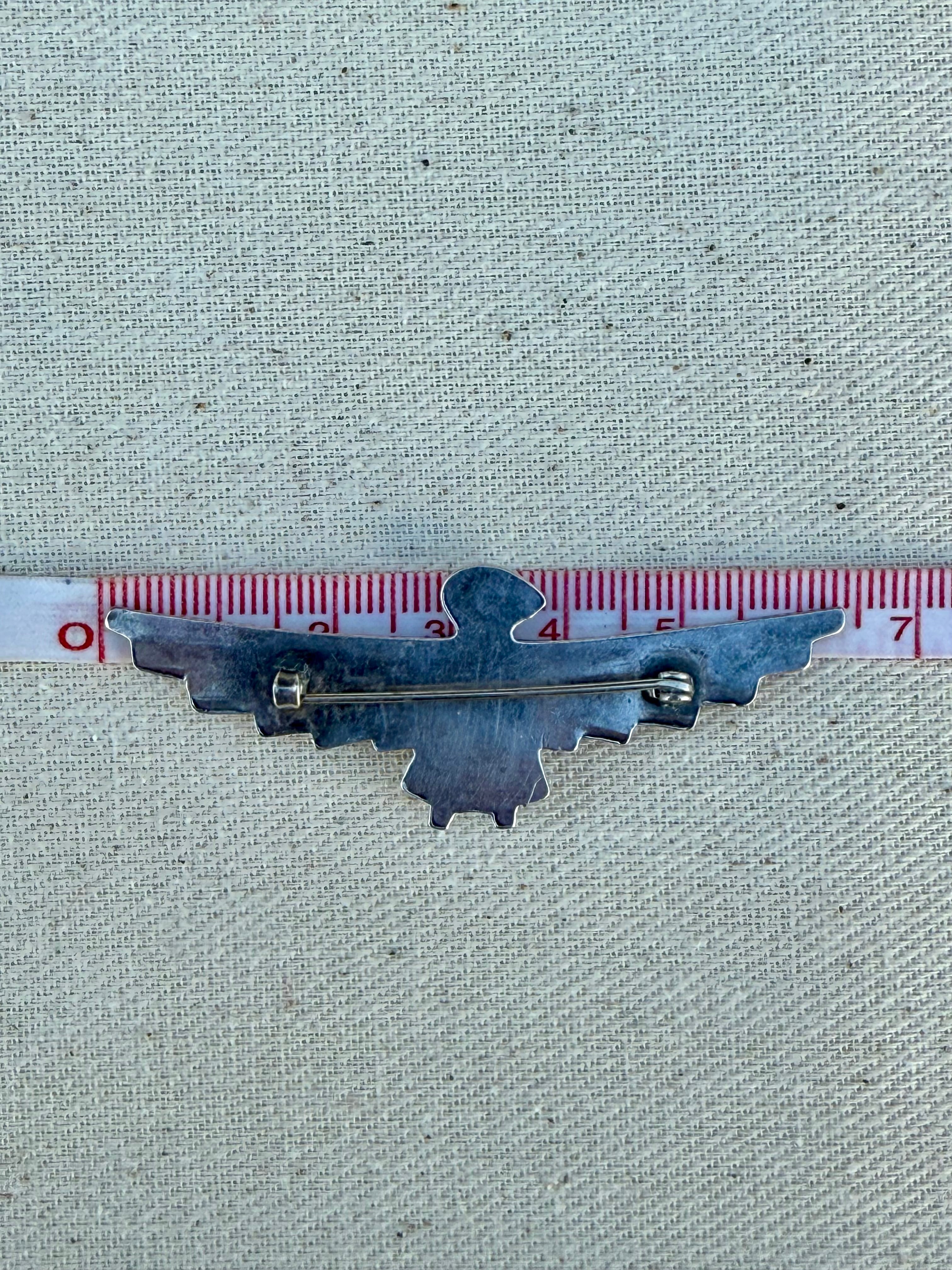 水平に大きく広げた翼は、当時の観光向けジュエリーに見られるバランスを持ちながらも、過度な装飾を抑えた端正な構成が印象的です。