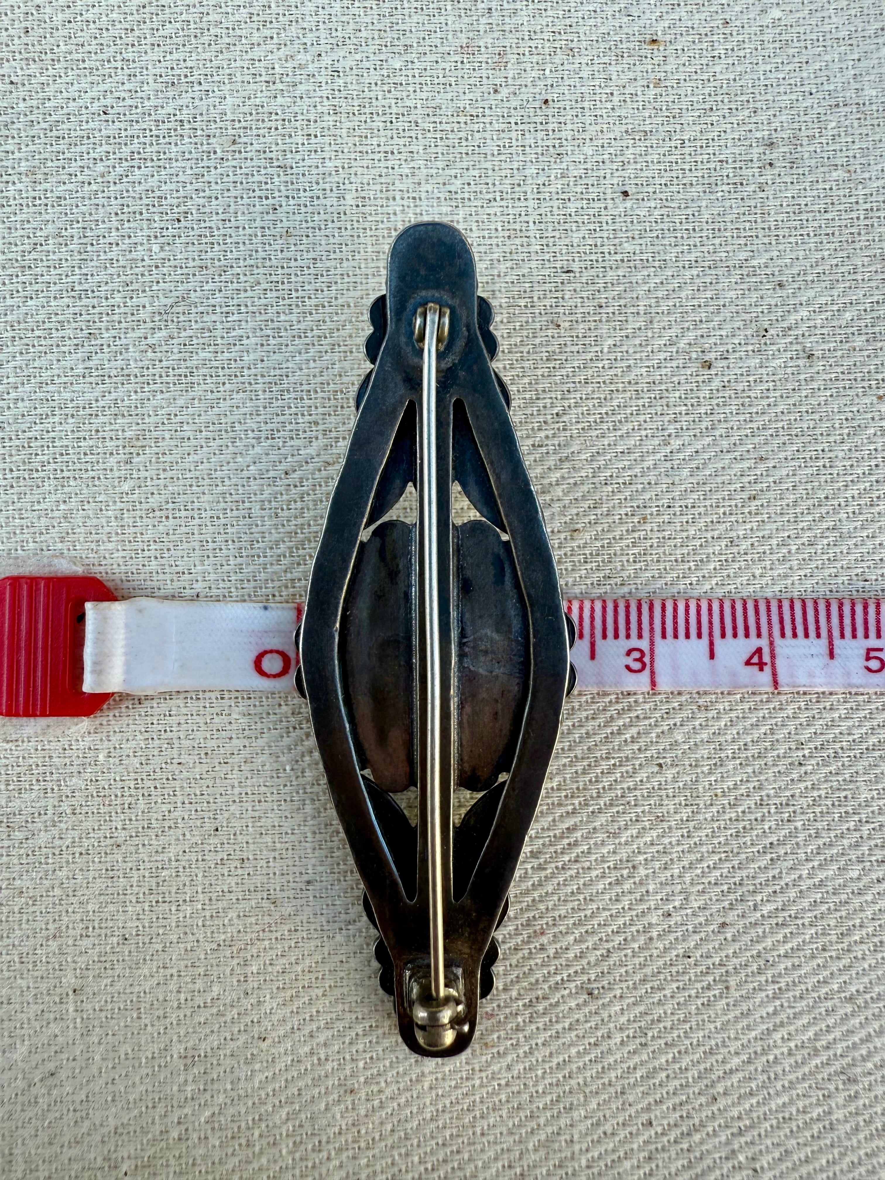 スプリットシャンク構造を用いたハイブリッド・インディアン・シルバーブローチ。