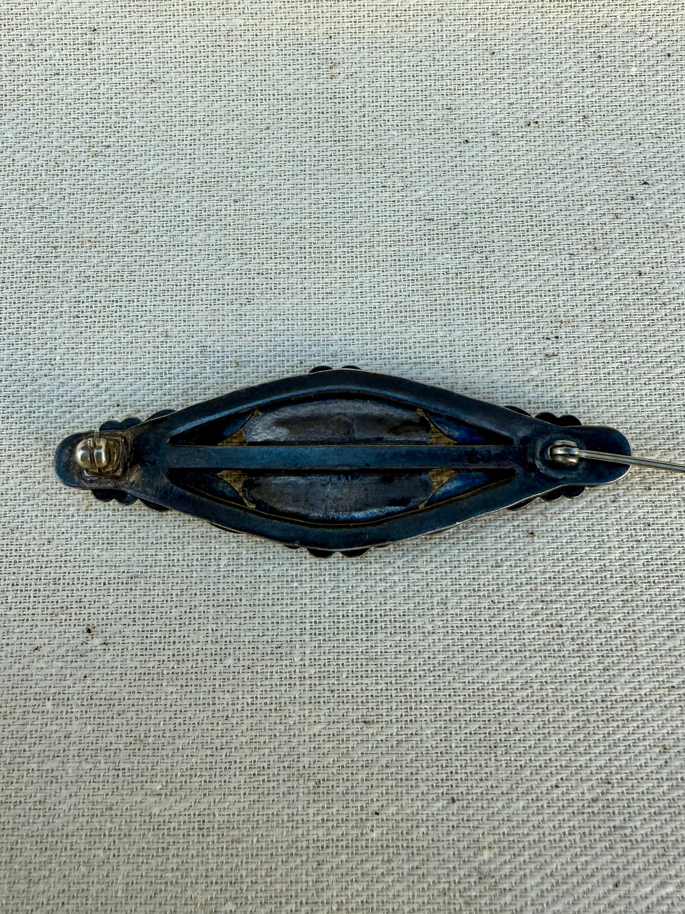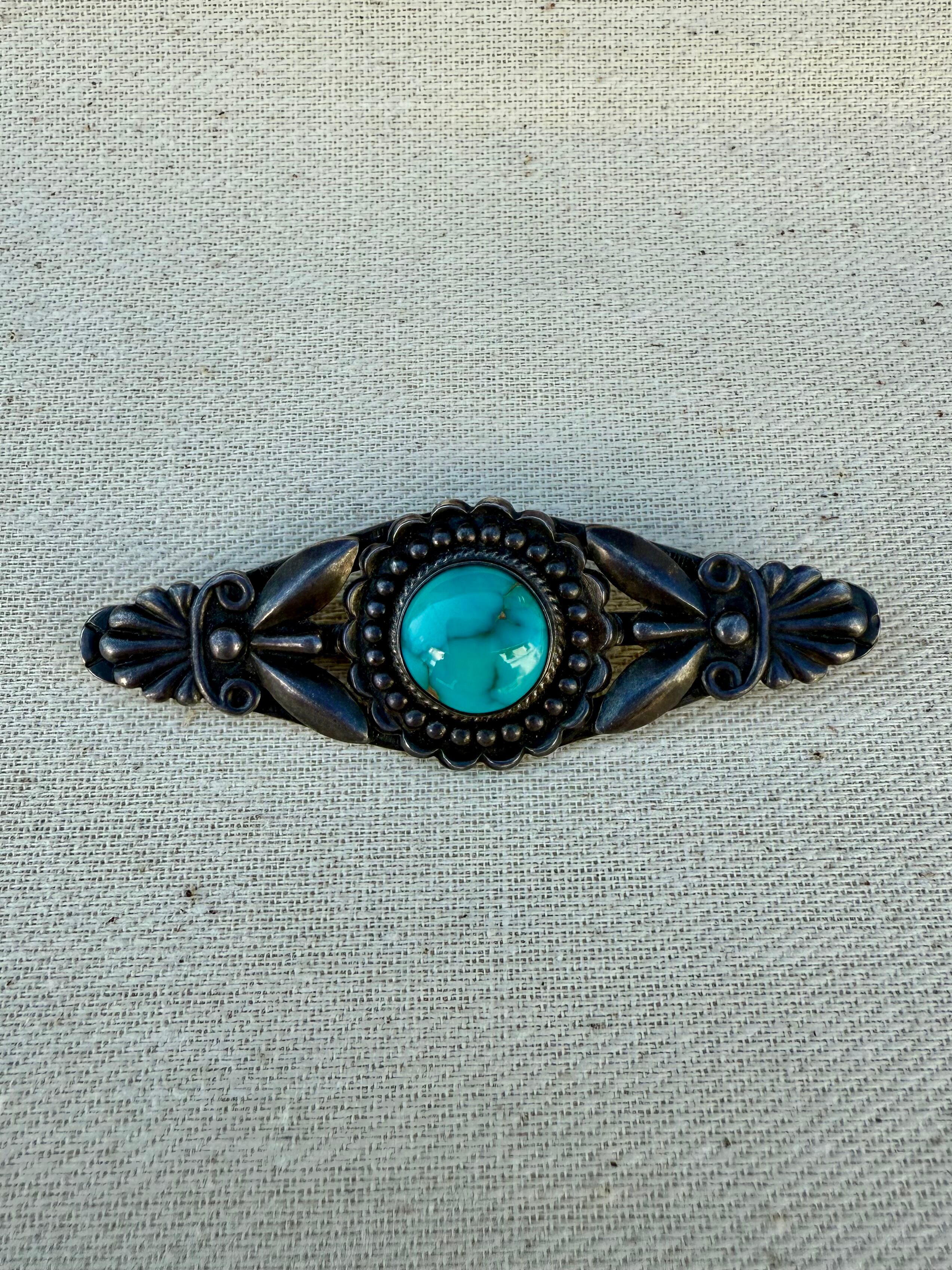 Split Shank Turquoise Hybrid Silver Brooch (c. 1940-1960s)