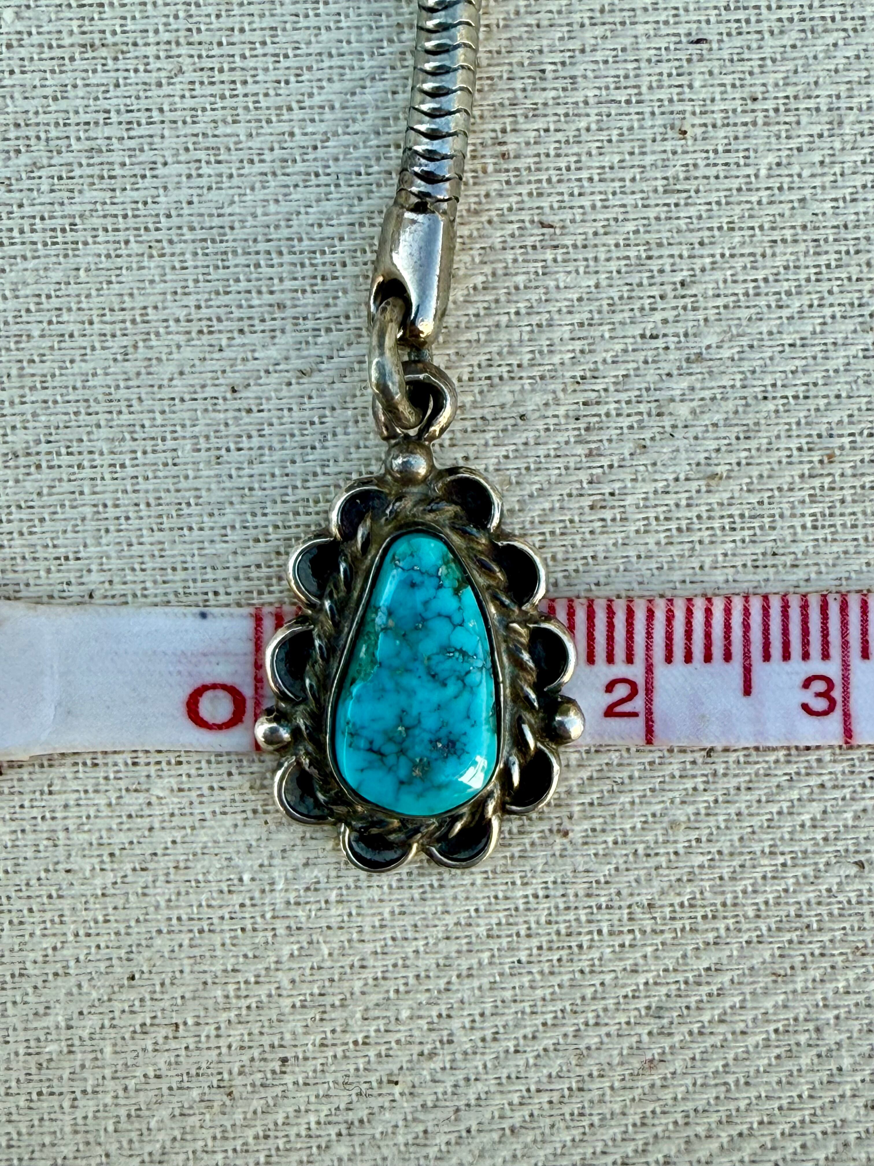 ナチュラルなマトリックスをもつターコイズを、ティアドロップ型に仕立てたヴィンテージ・シルバーキーチェーン。