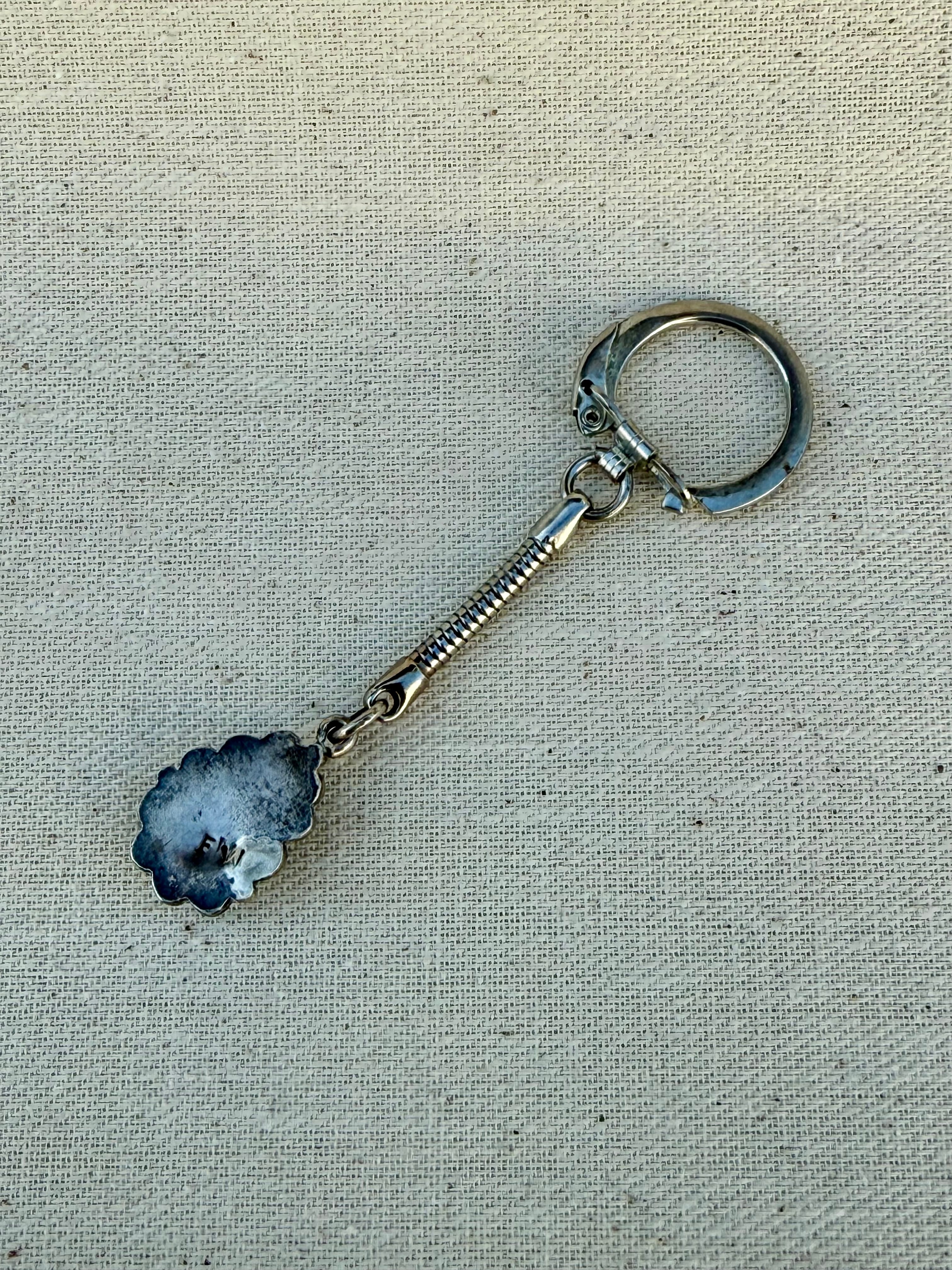 キーリングはヴィンテージらしいフック式で、実用性と造形美を兼ね備えています。