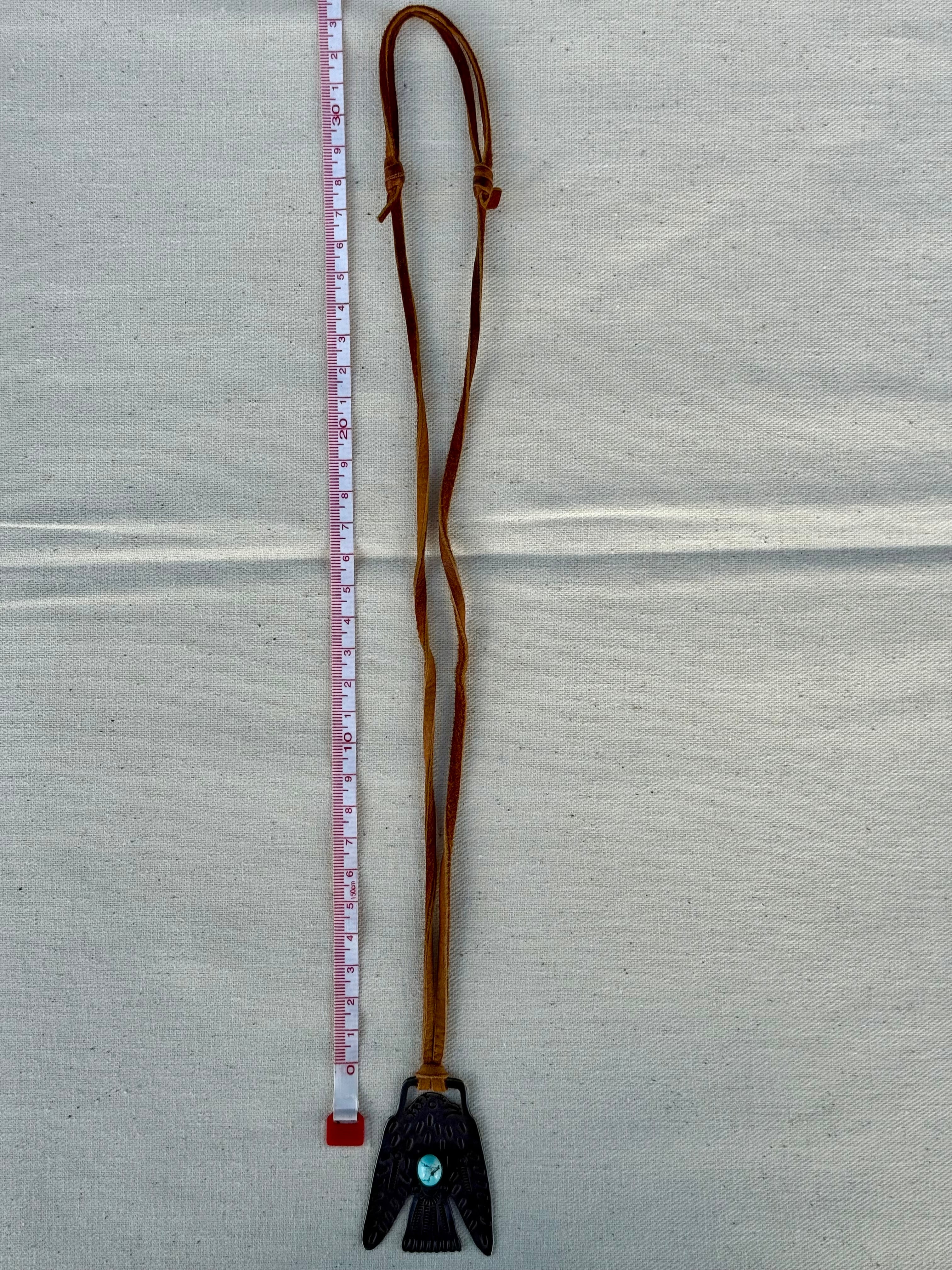 サンダーバードモチーフのヴィンテージ・シルバーフォブをネックレスとして仕立てた一点。
