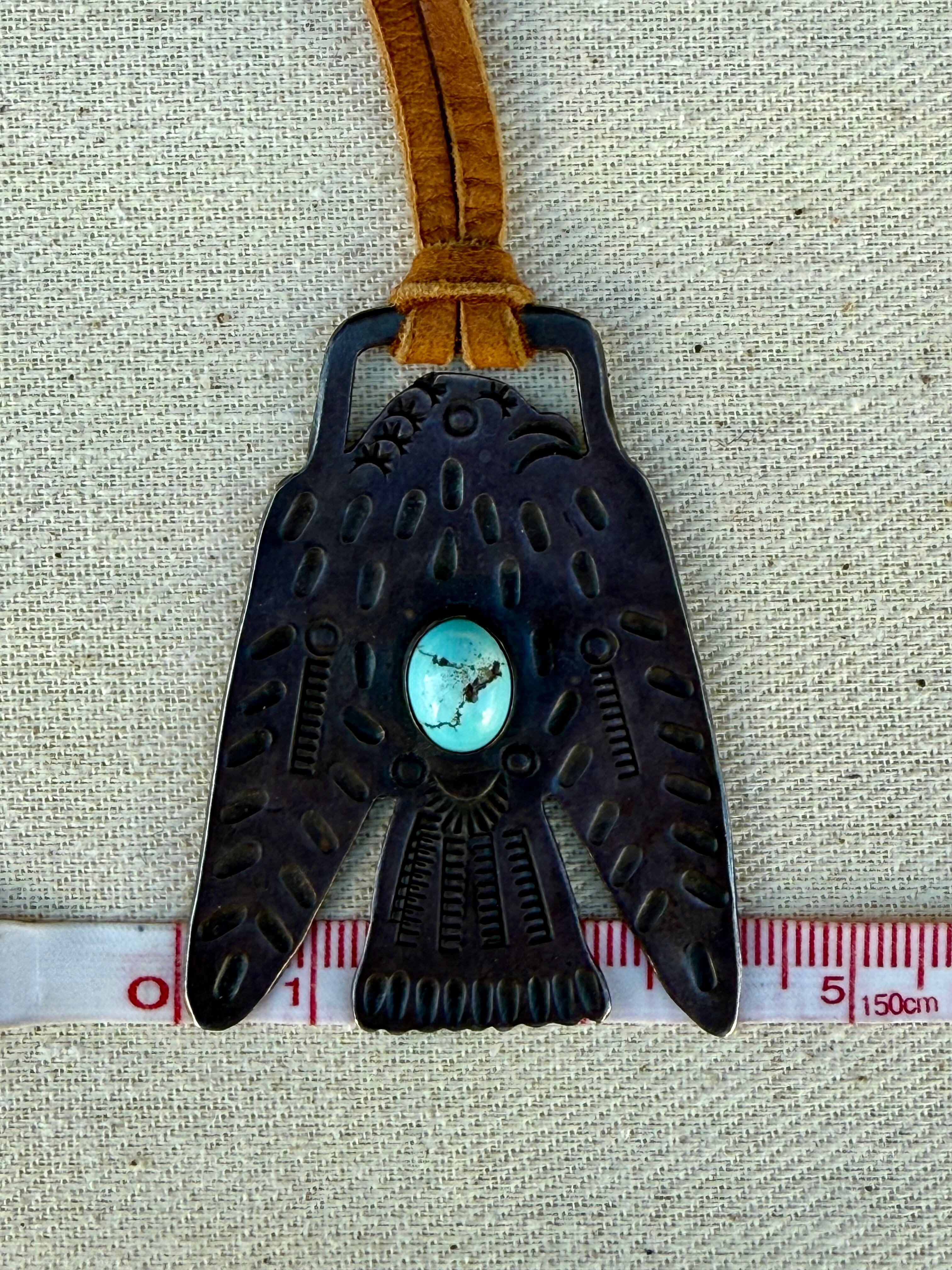 Hand-Stamped Thunderbird Turquoise Silver Fob Necklace