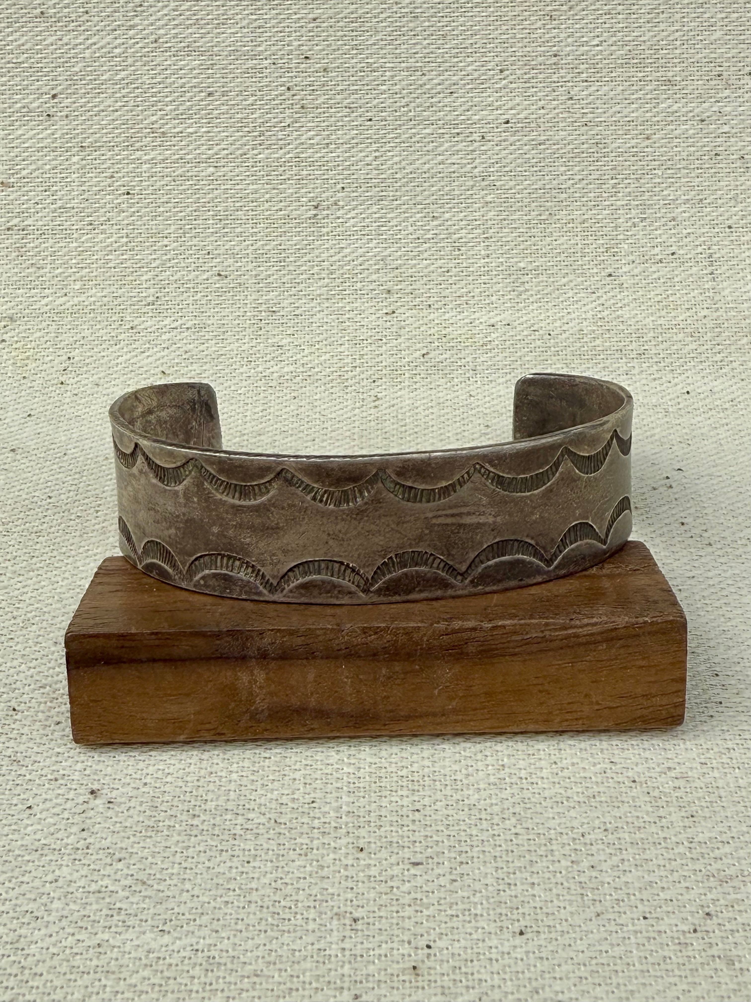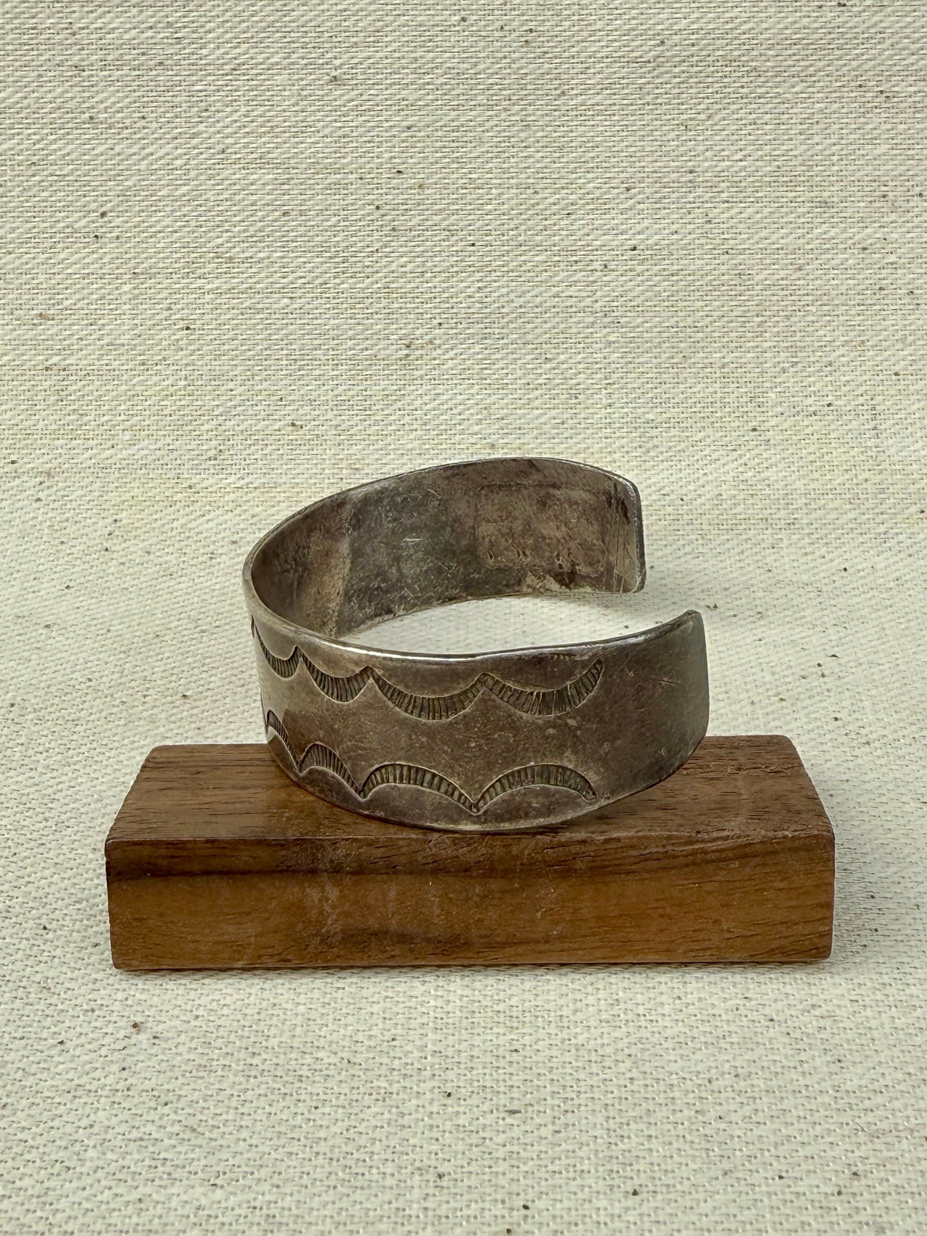Early Southwestern Hand-Stamped Silver Plate Cuff (c. 1900-1920s)
