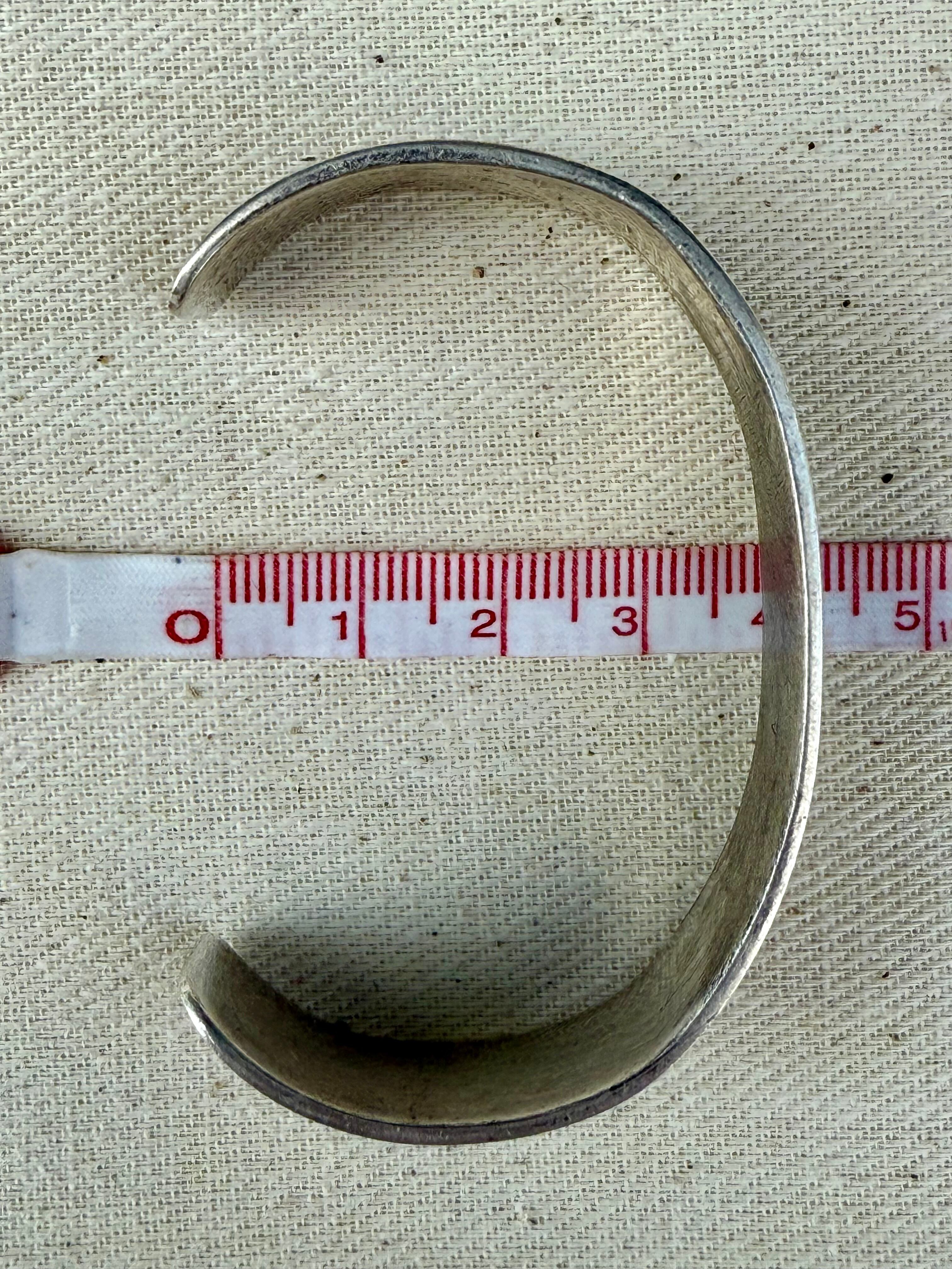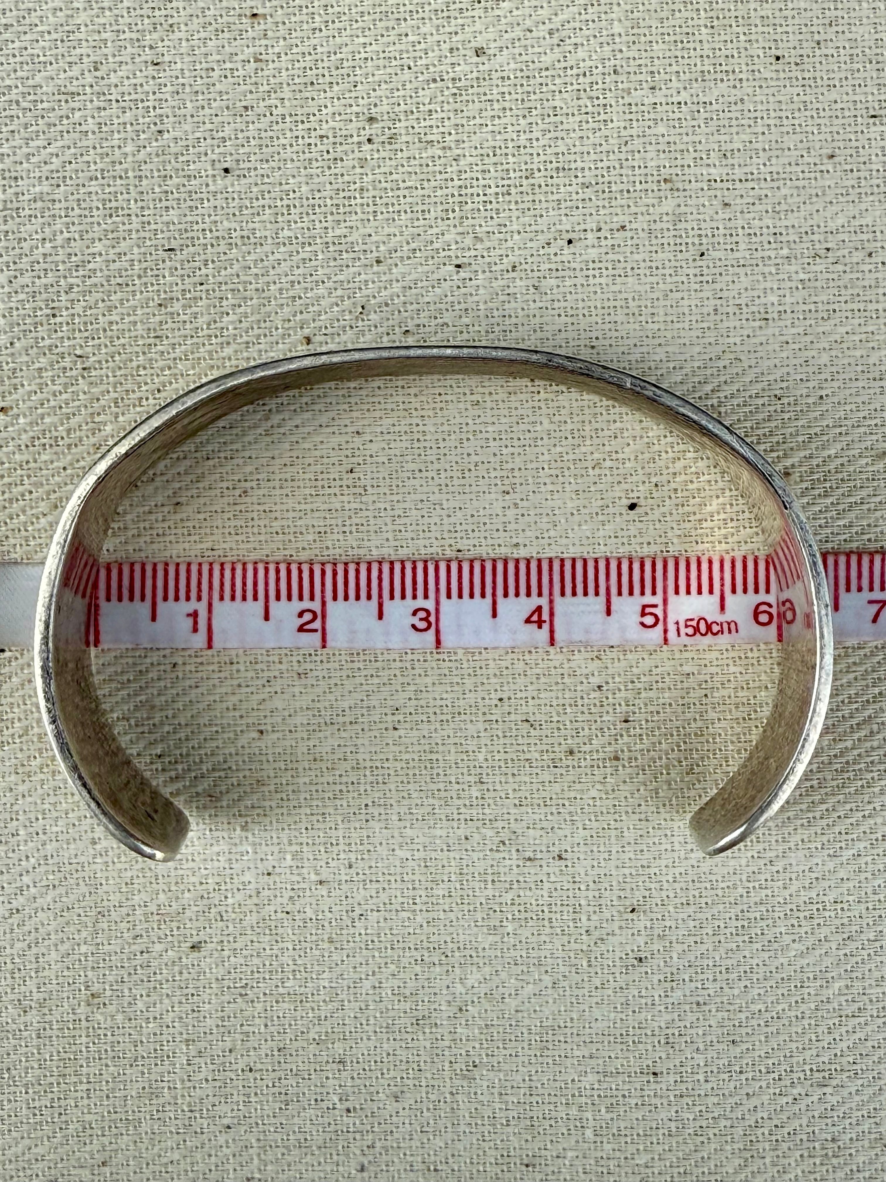 約12.3cm + 4cmオープニング x 幅1.5cm (手首にはめる際、多少の調整は可能です。)