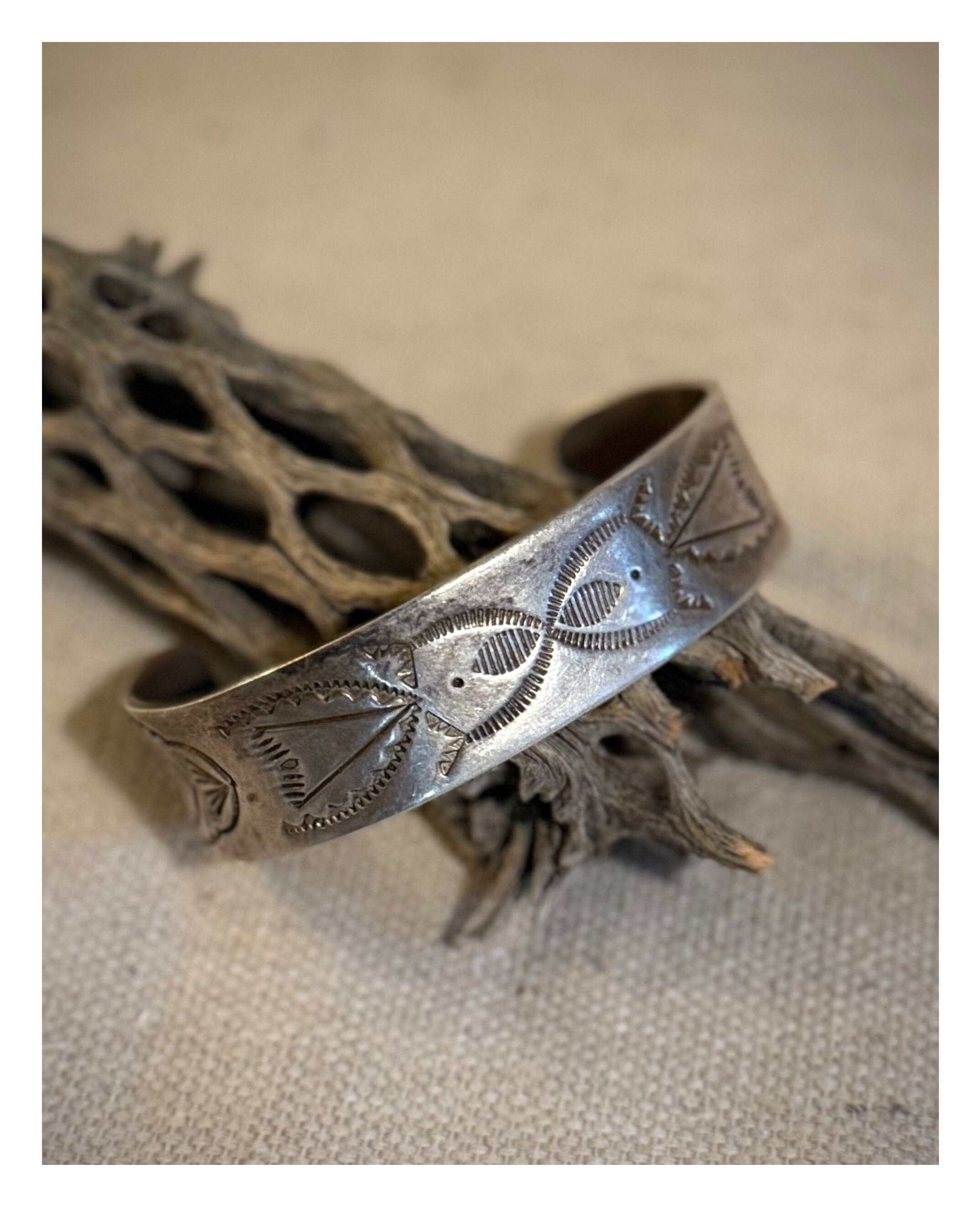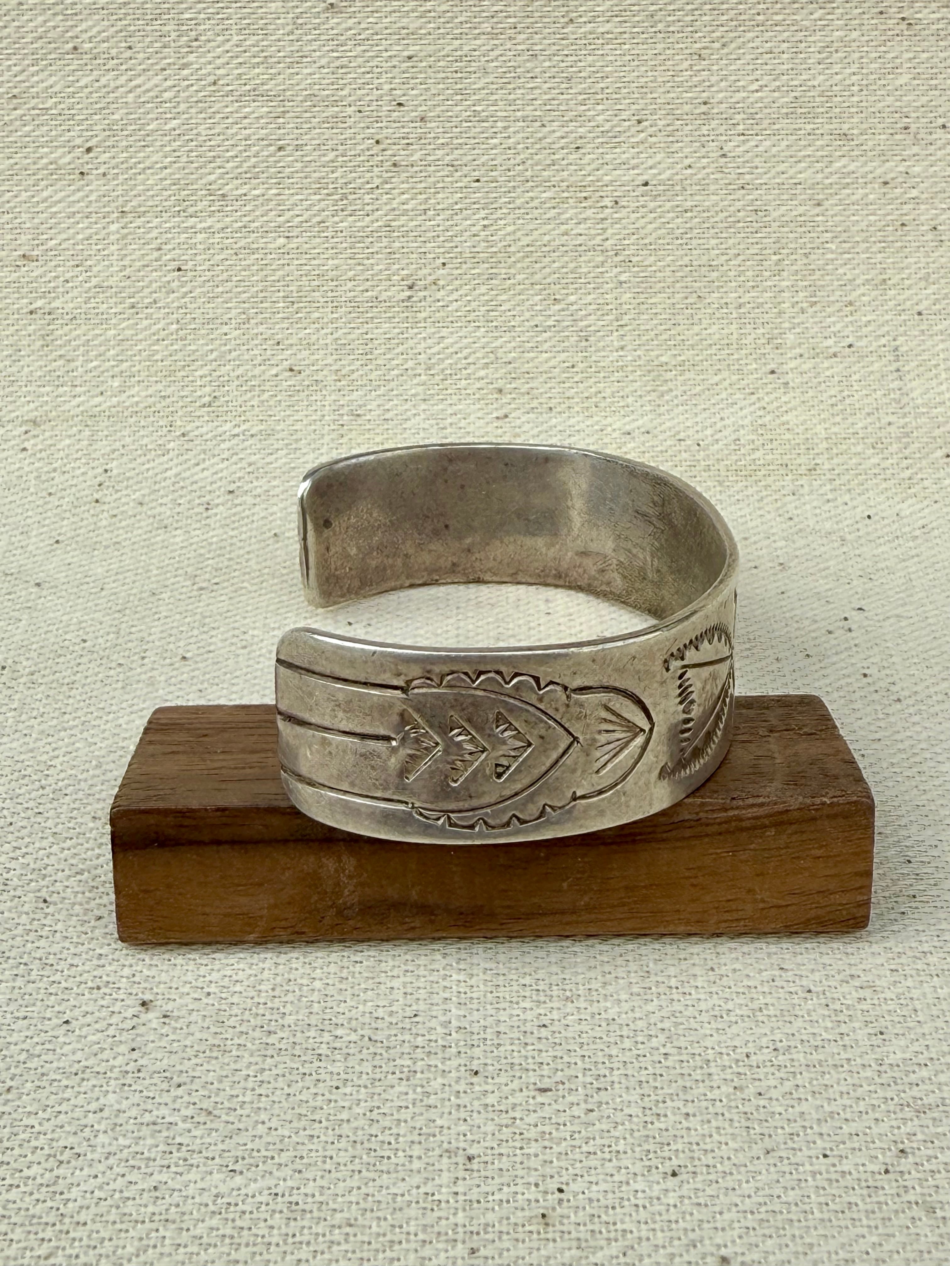 Early Navajo Hand-Stamped Silver Plate Cuff (c. 1915–1925)