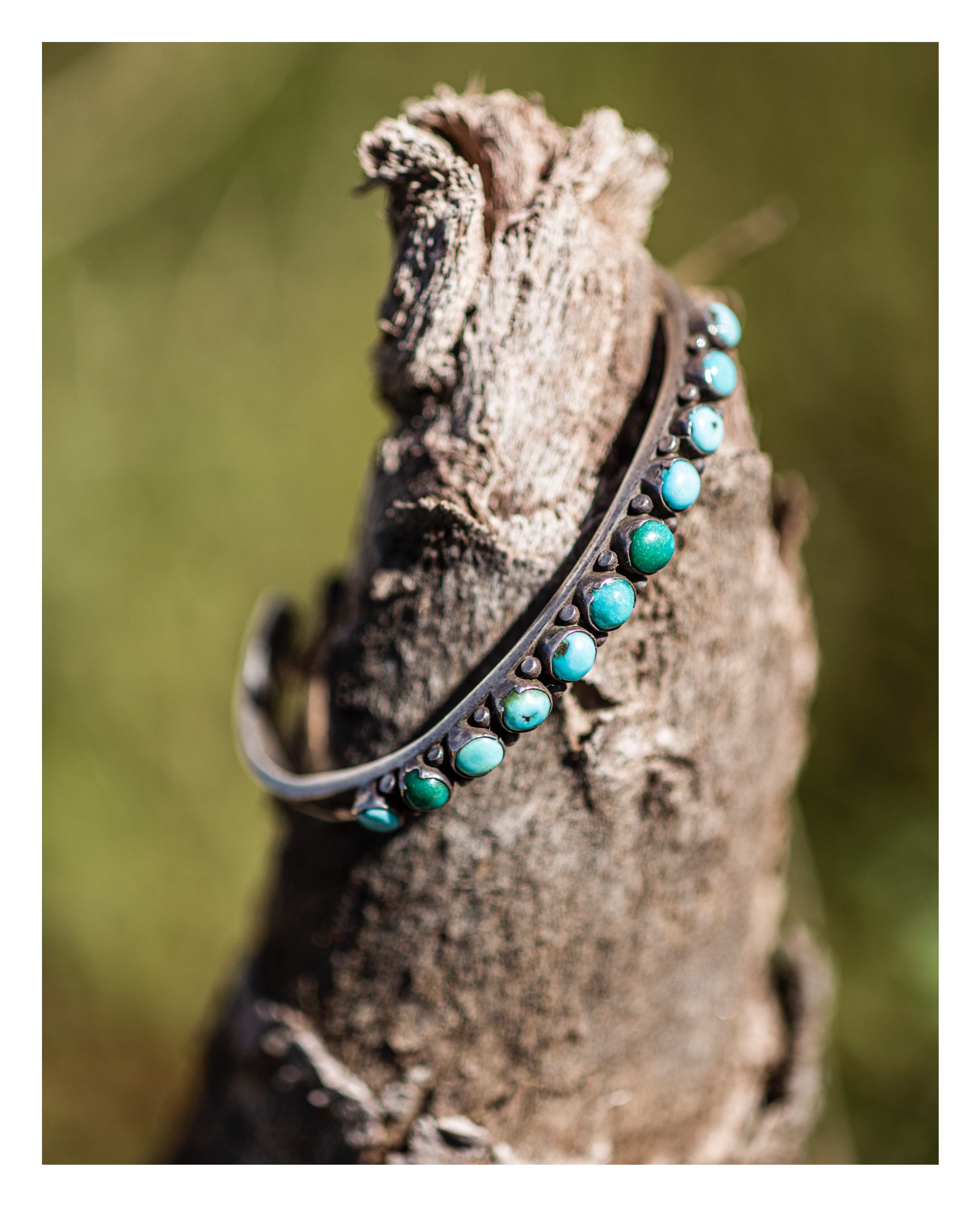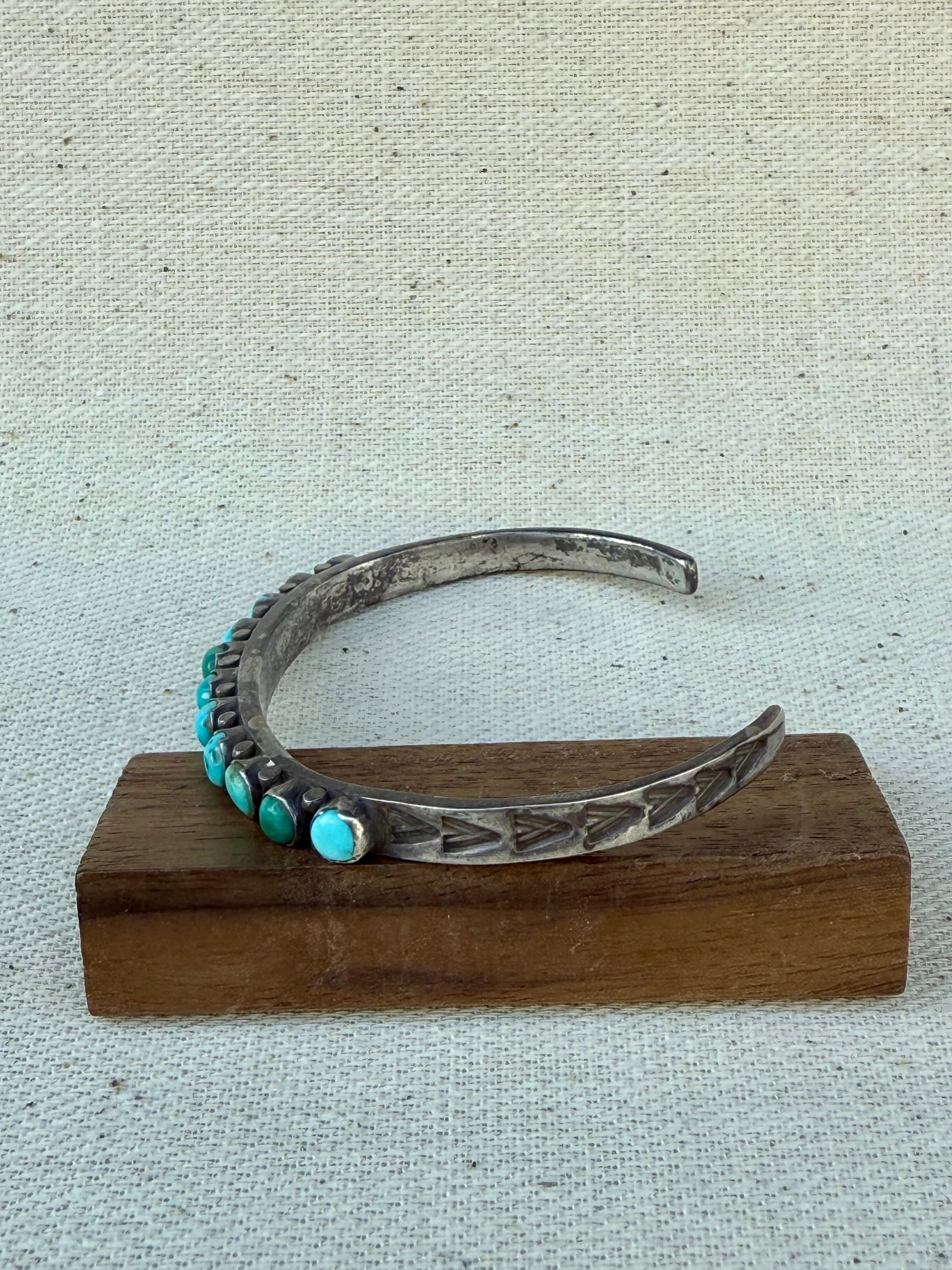 Early Navajo Graduated Turquoise Row Silver Cuff