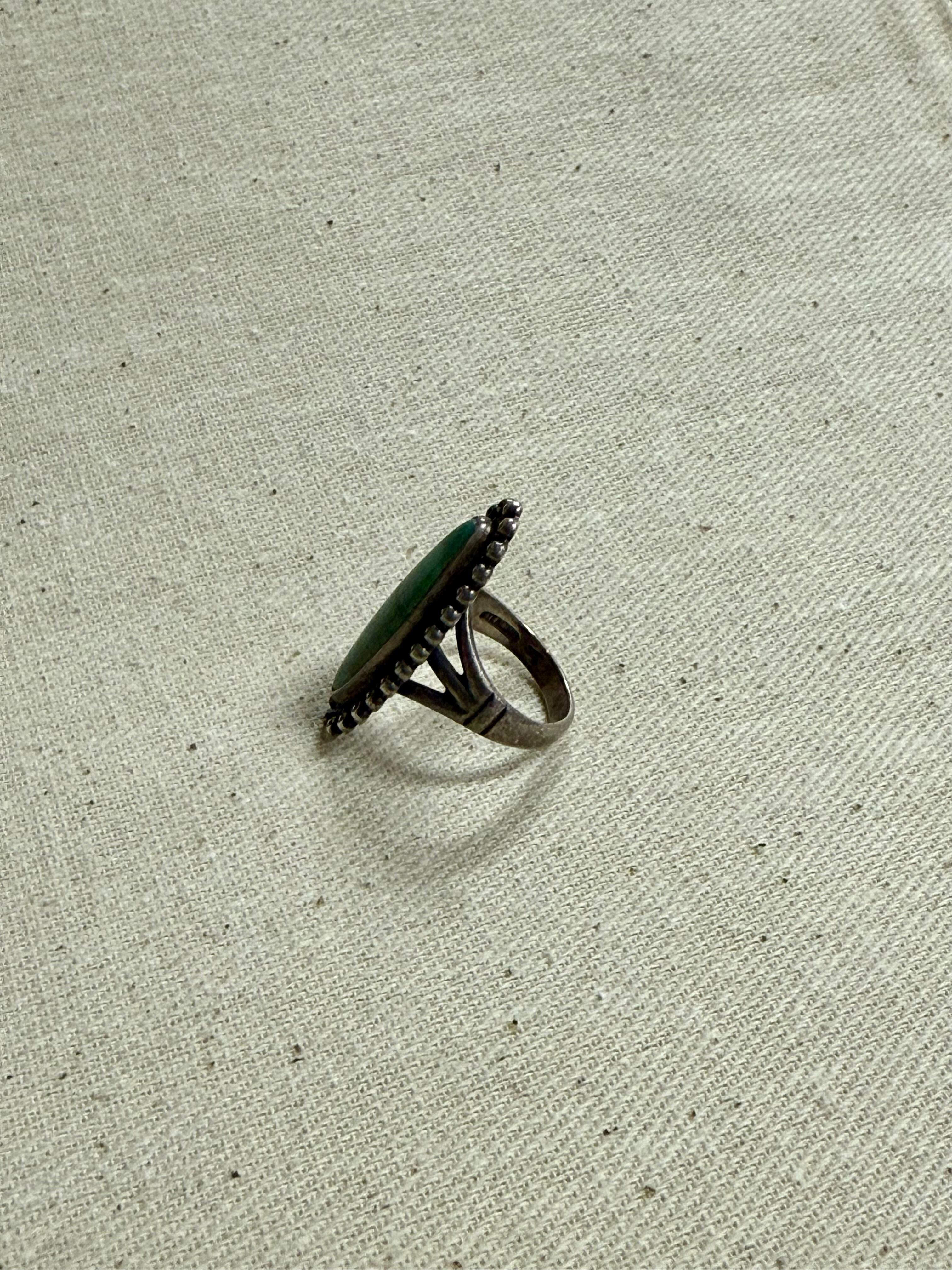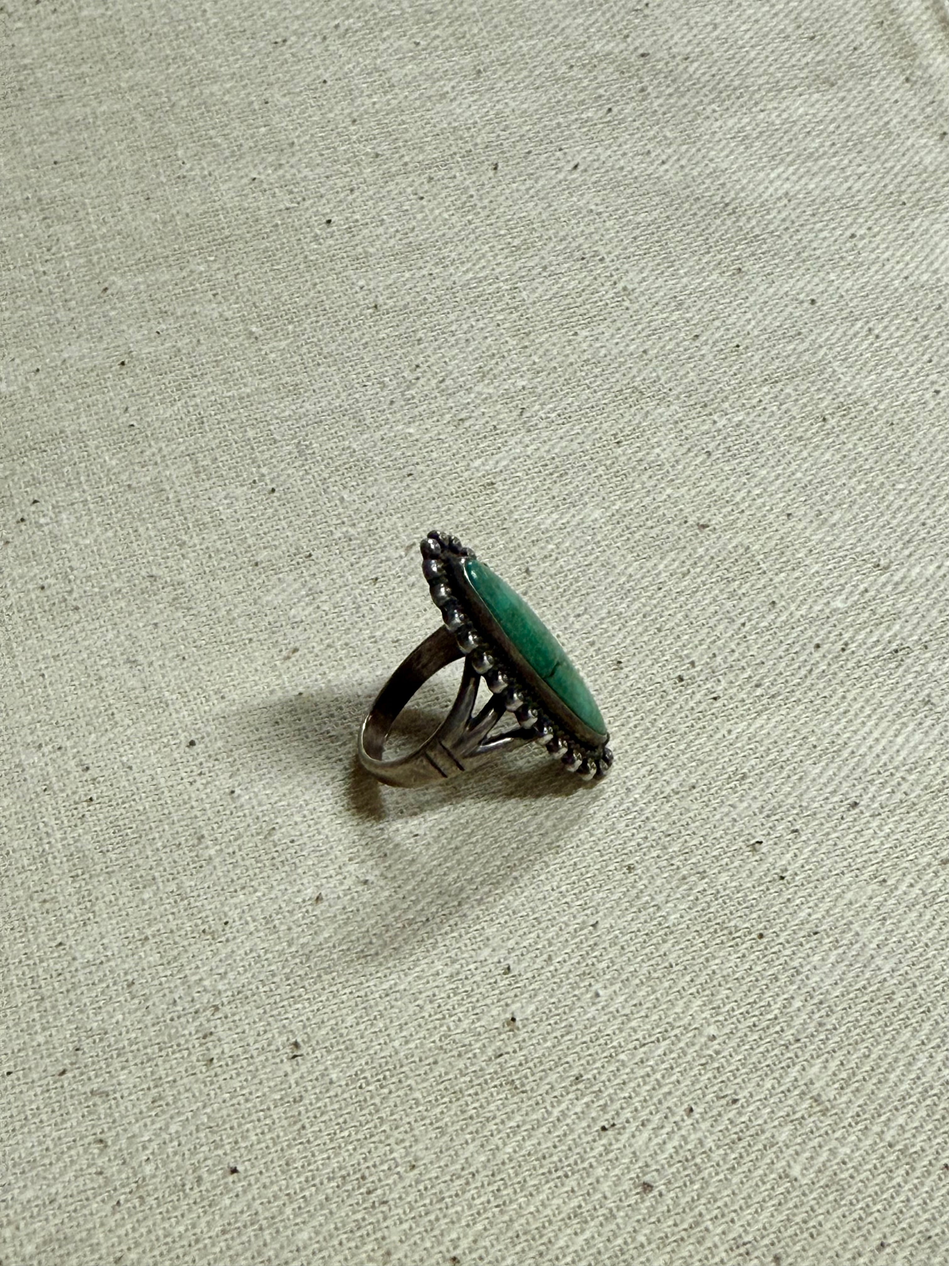 Elongated Turquoise Beaded Frame Ring (c. 1940–1960s)