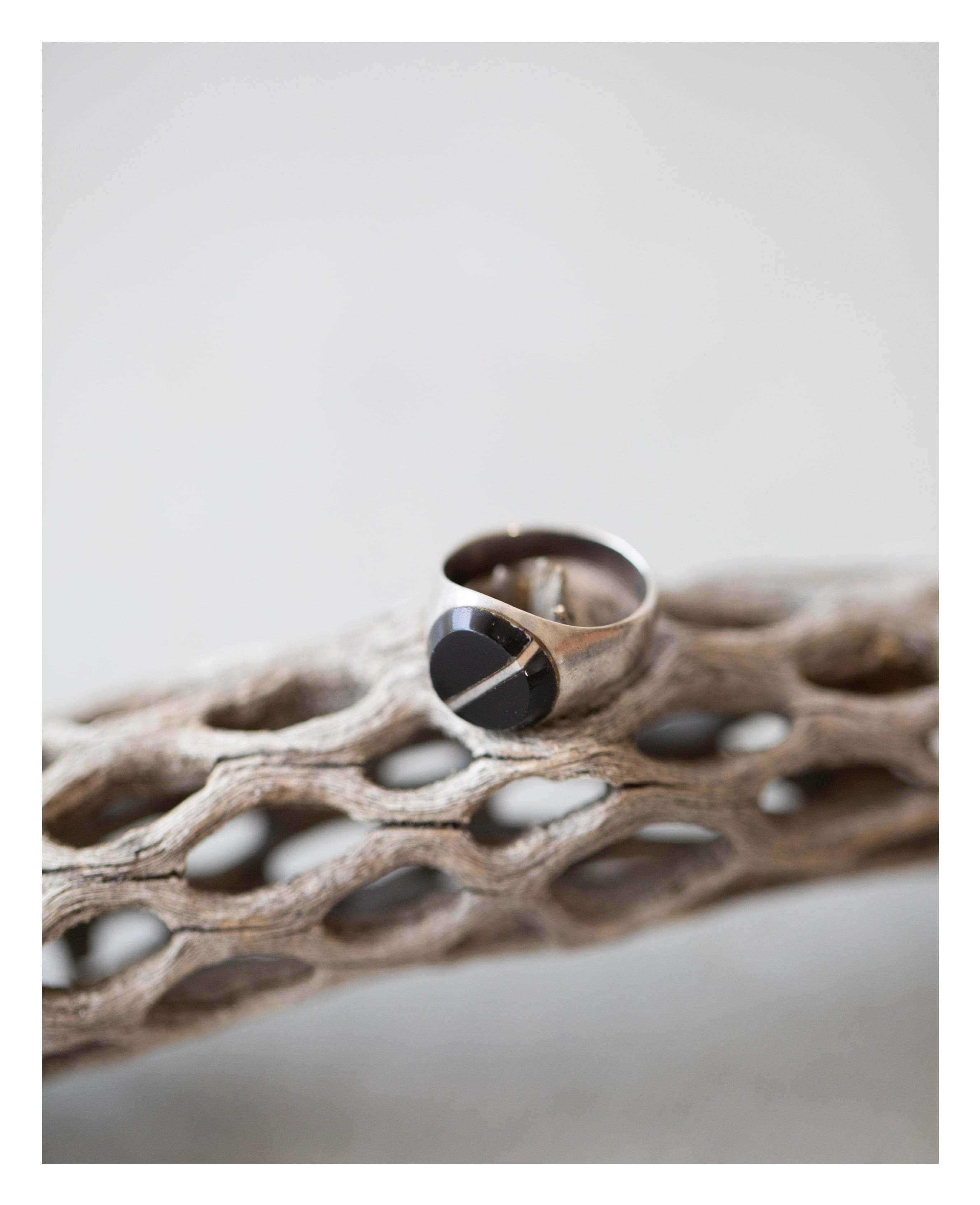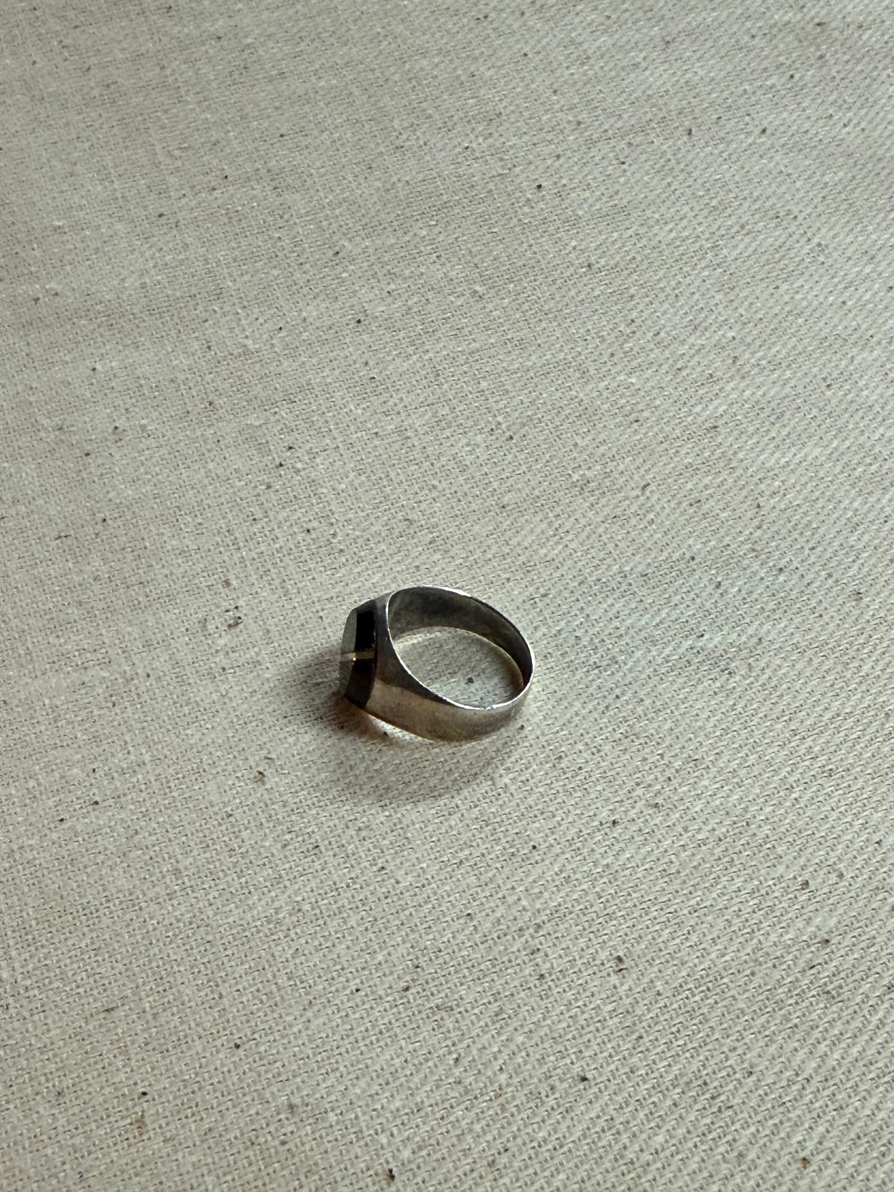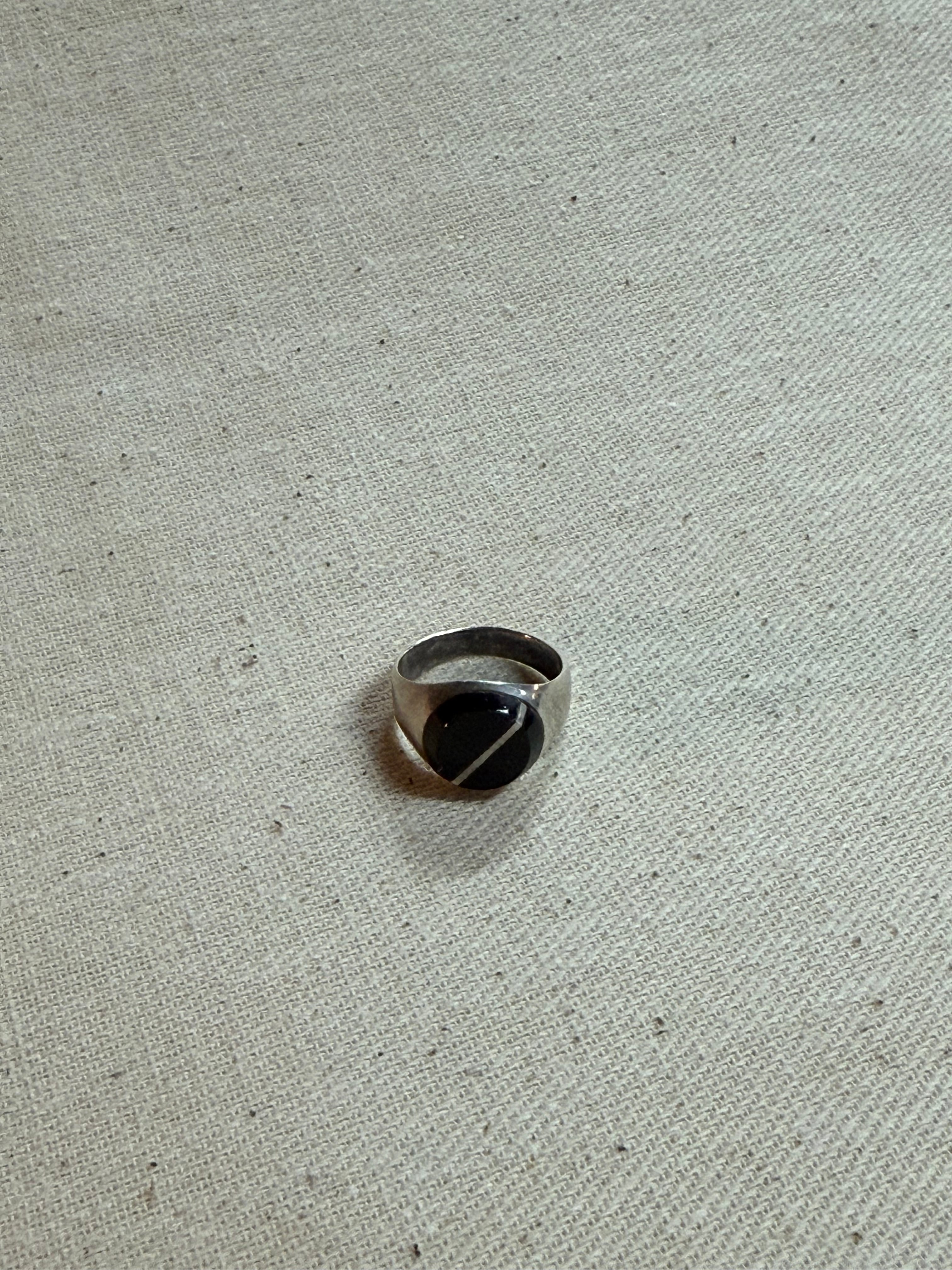 Onyx with Diagonal Silver Accent Ring (c. 1950 - 1970s)