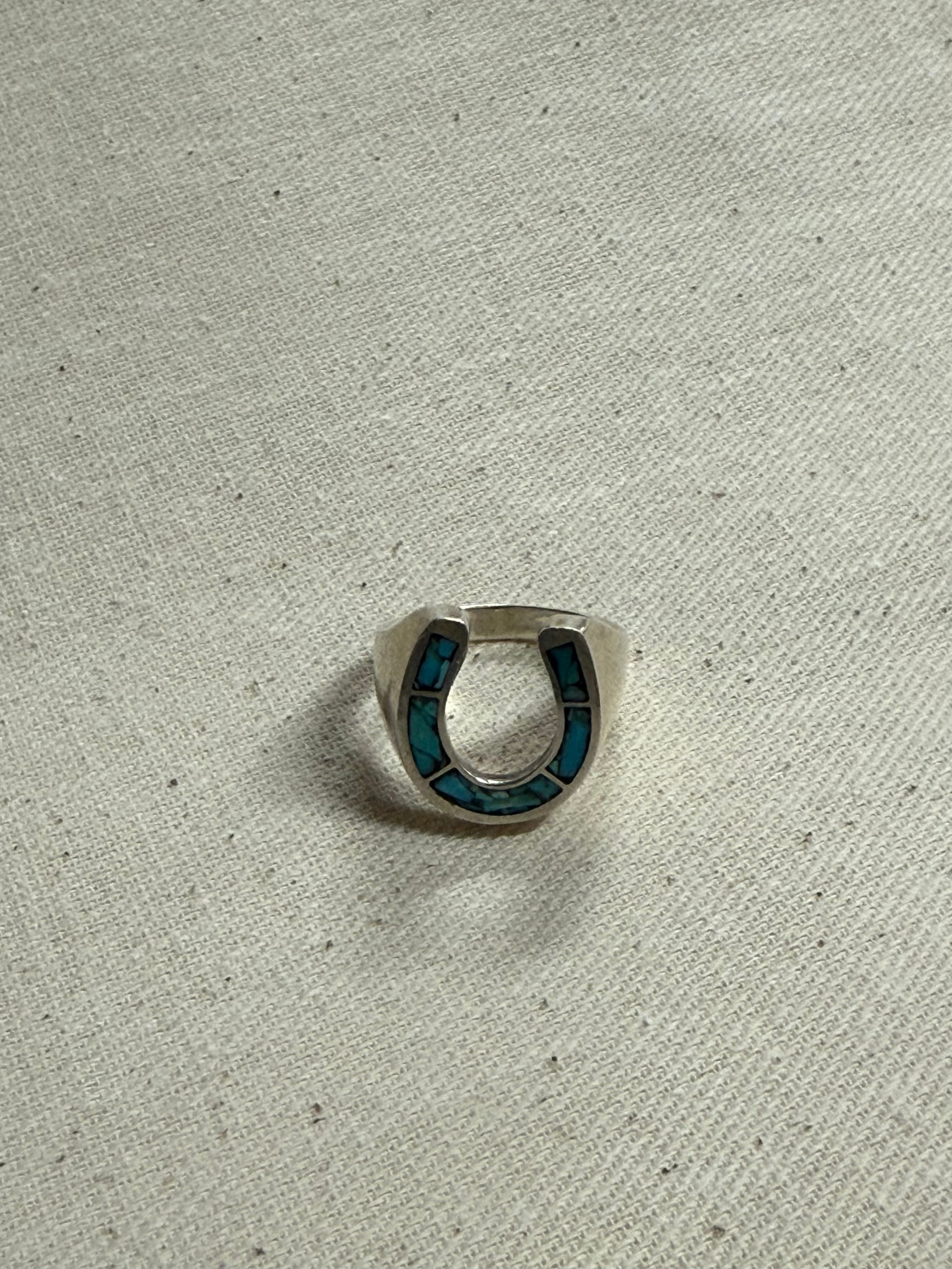 ホースシュー(馬蹄)フォルムのターコイズ・インレイ・シルバーリング。