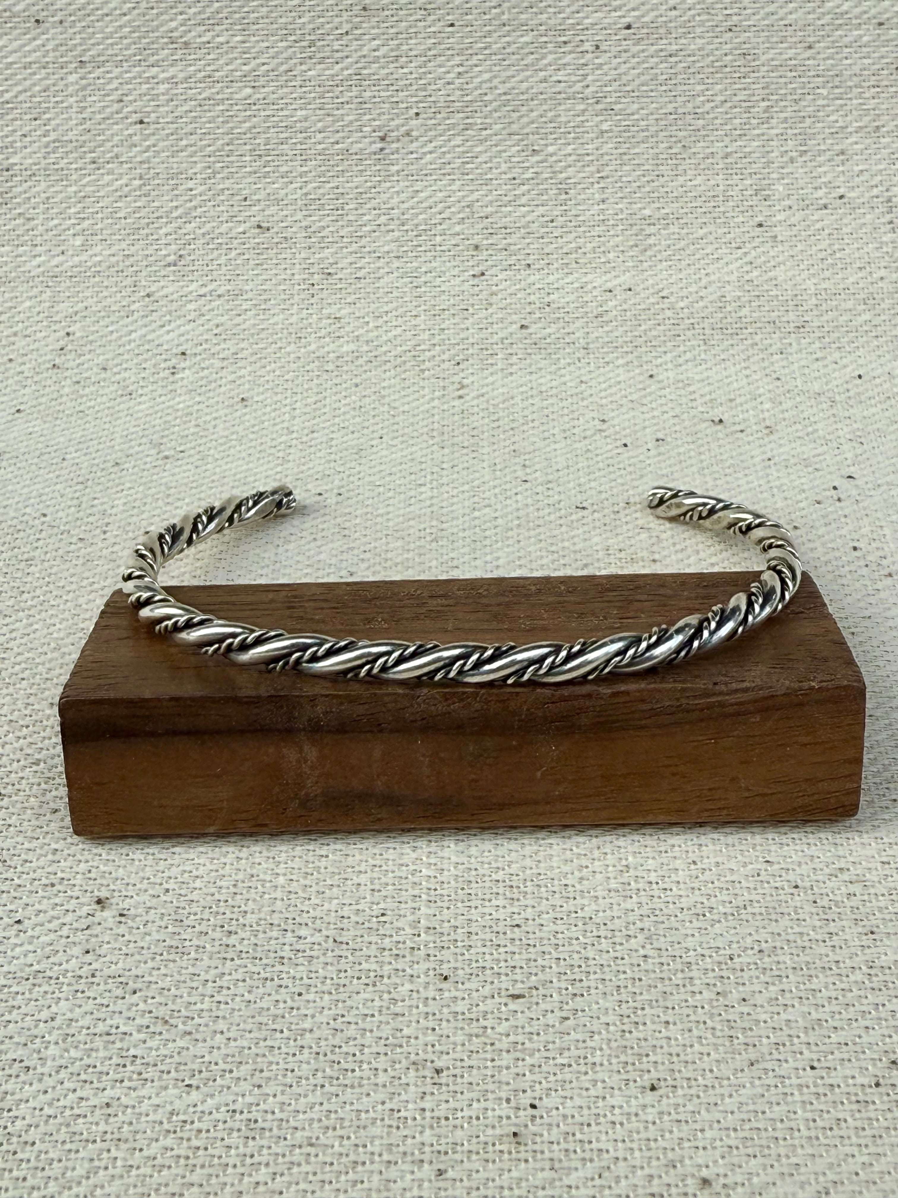 ミニマルで洗練されたロープデザインのシルバーバングルです。