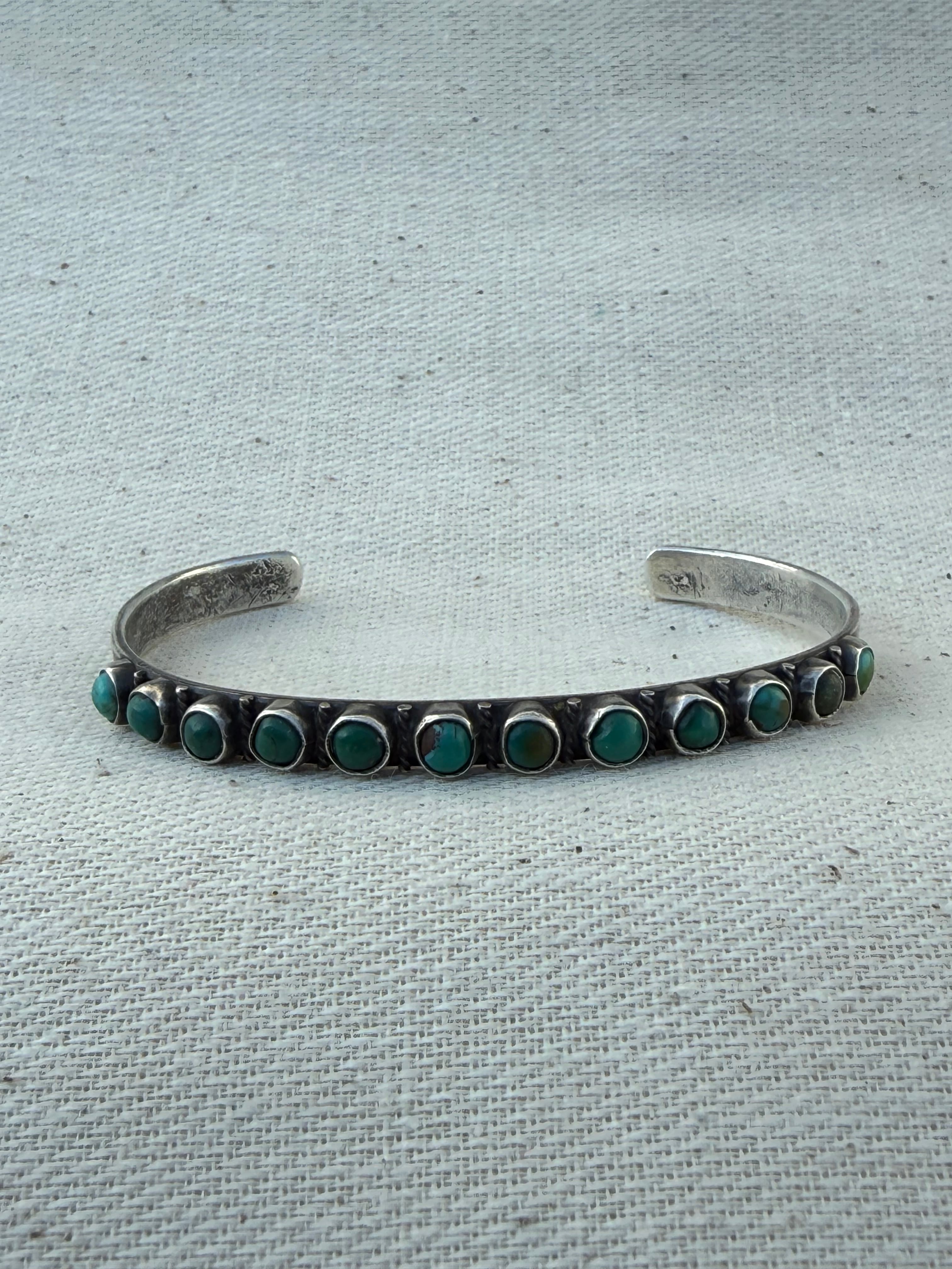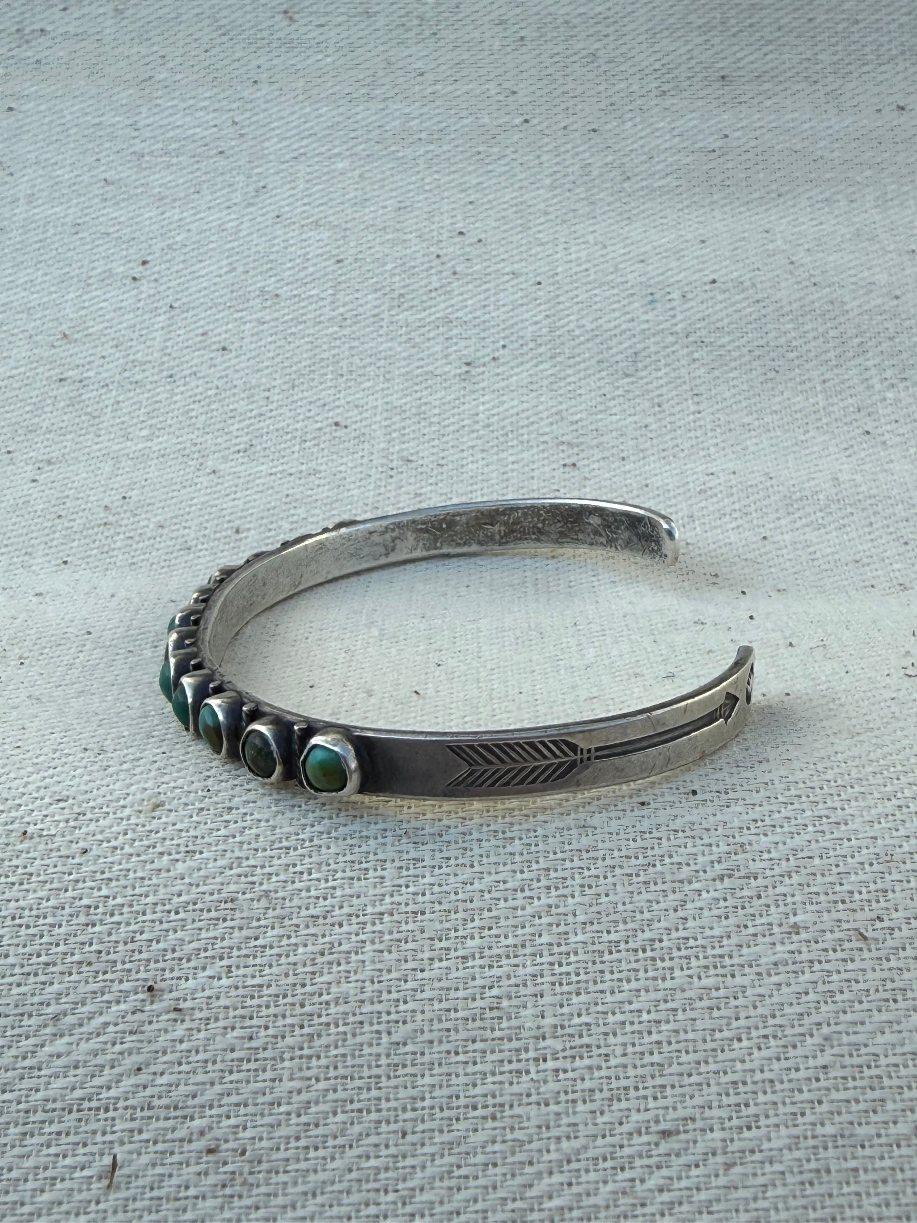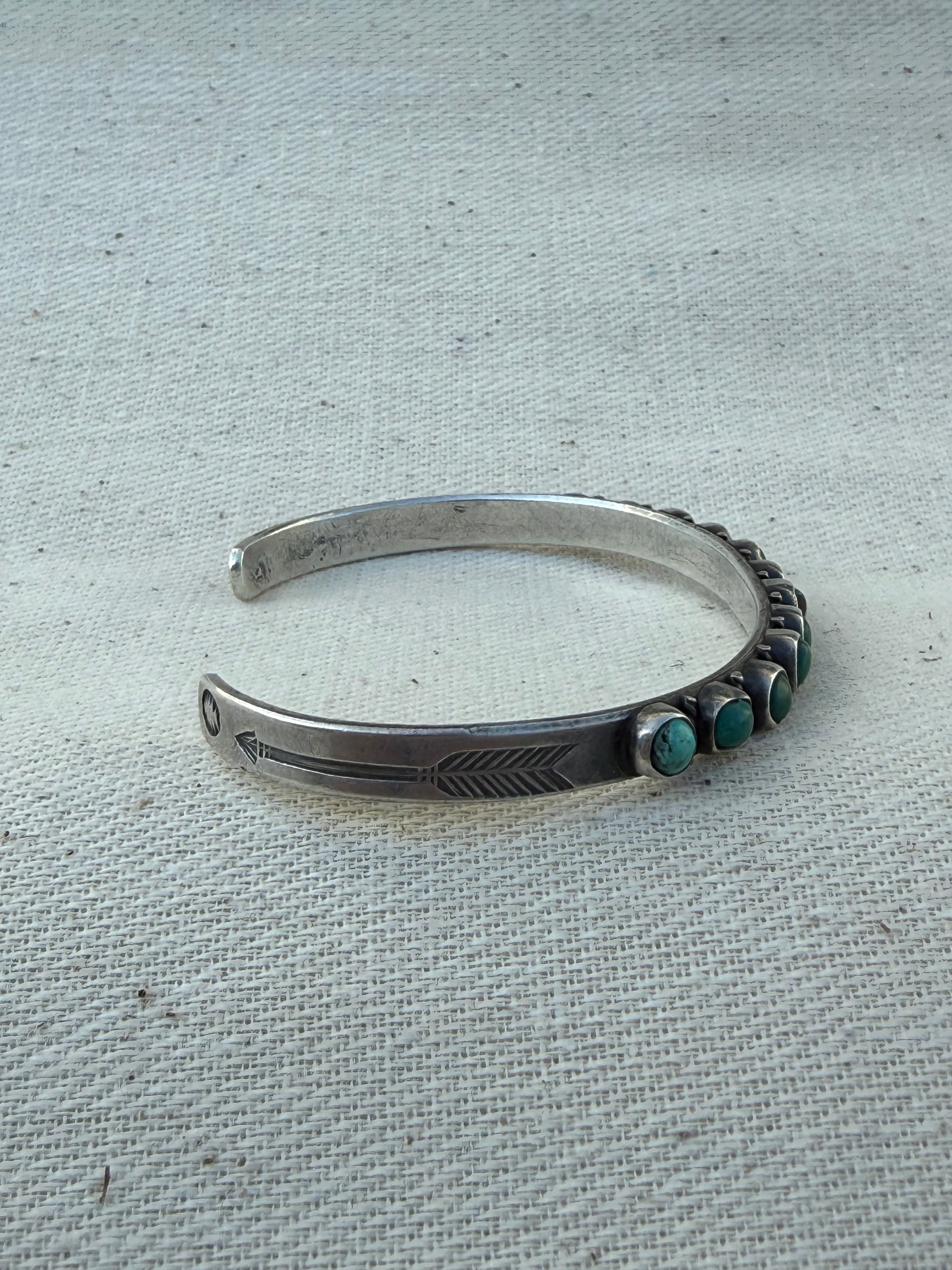 Navajo Arrow Row Turquoise Silver Cuff (c. late 1930s – early 1940s)