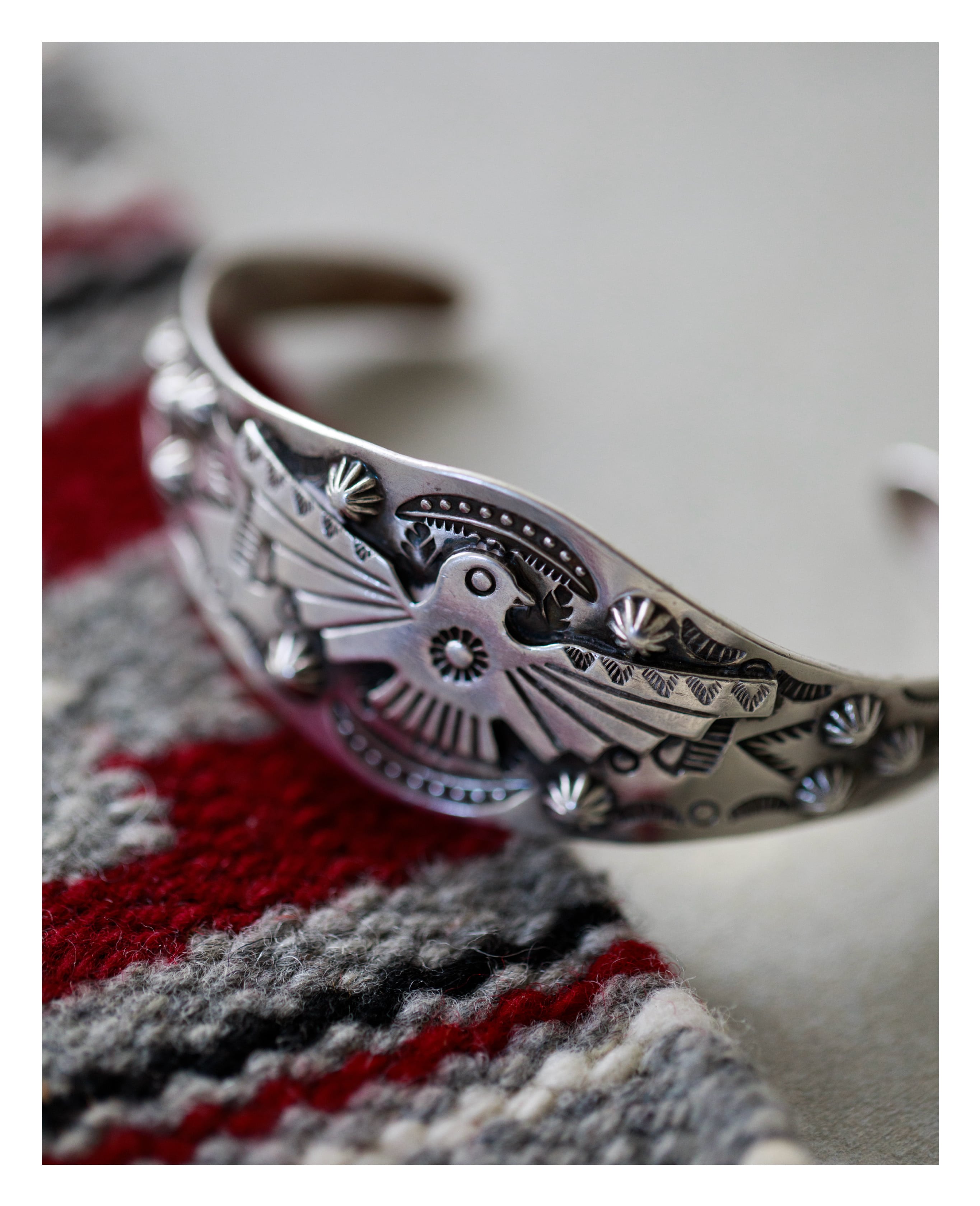 Fred Harvey時代の影響下で生まれたナバホのヴィンテージ・サンダーバードバングル。