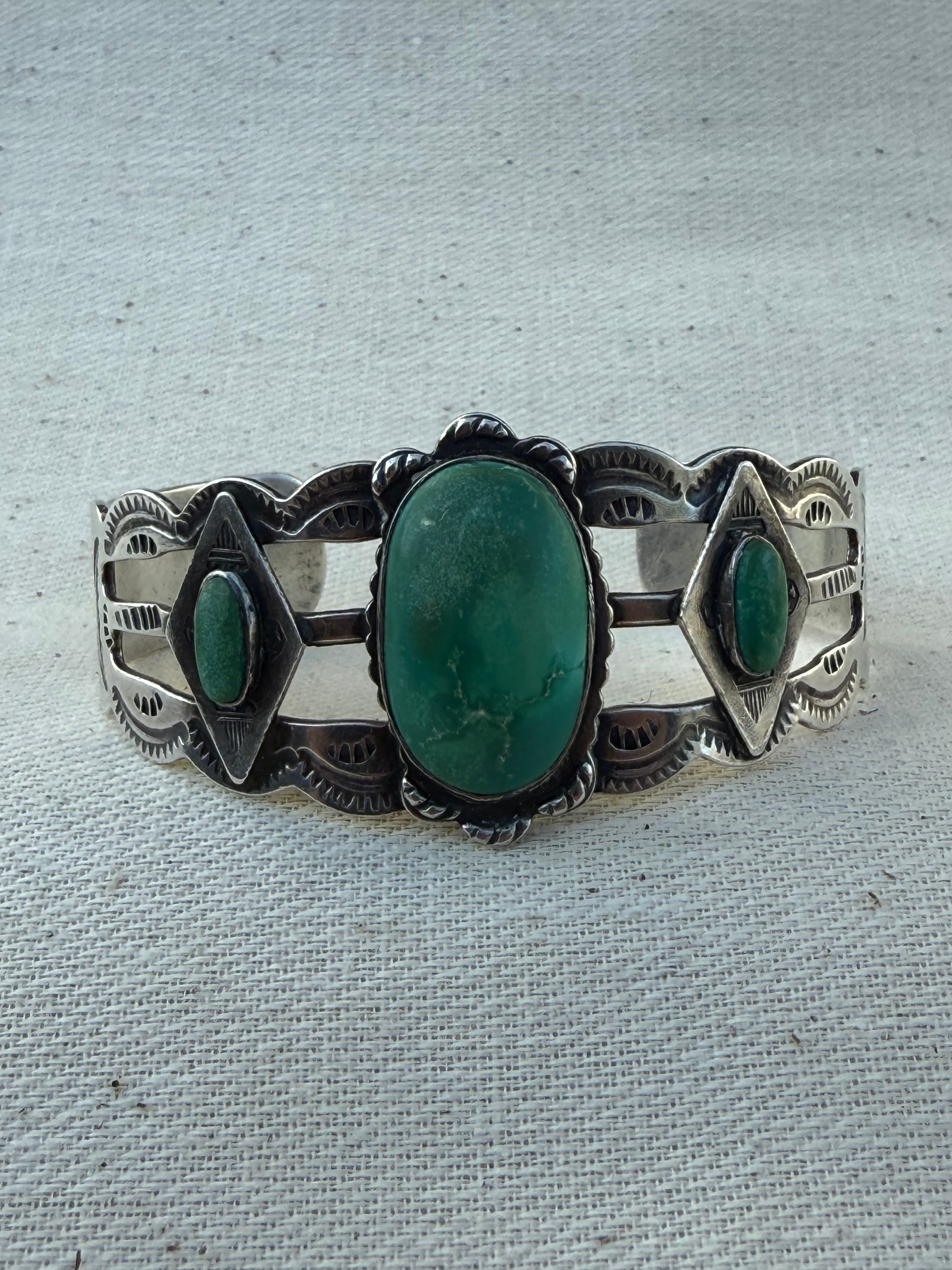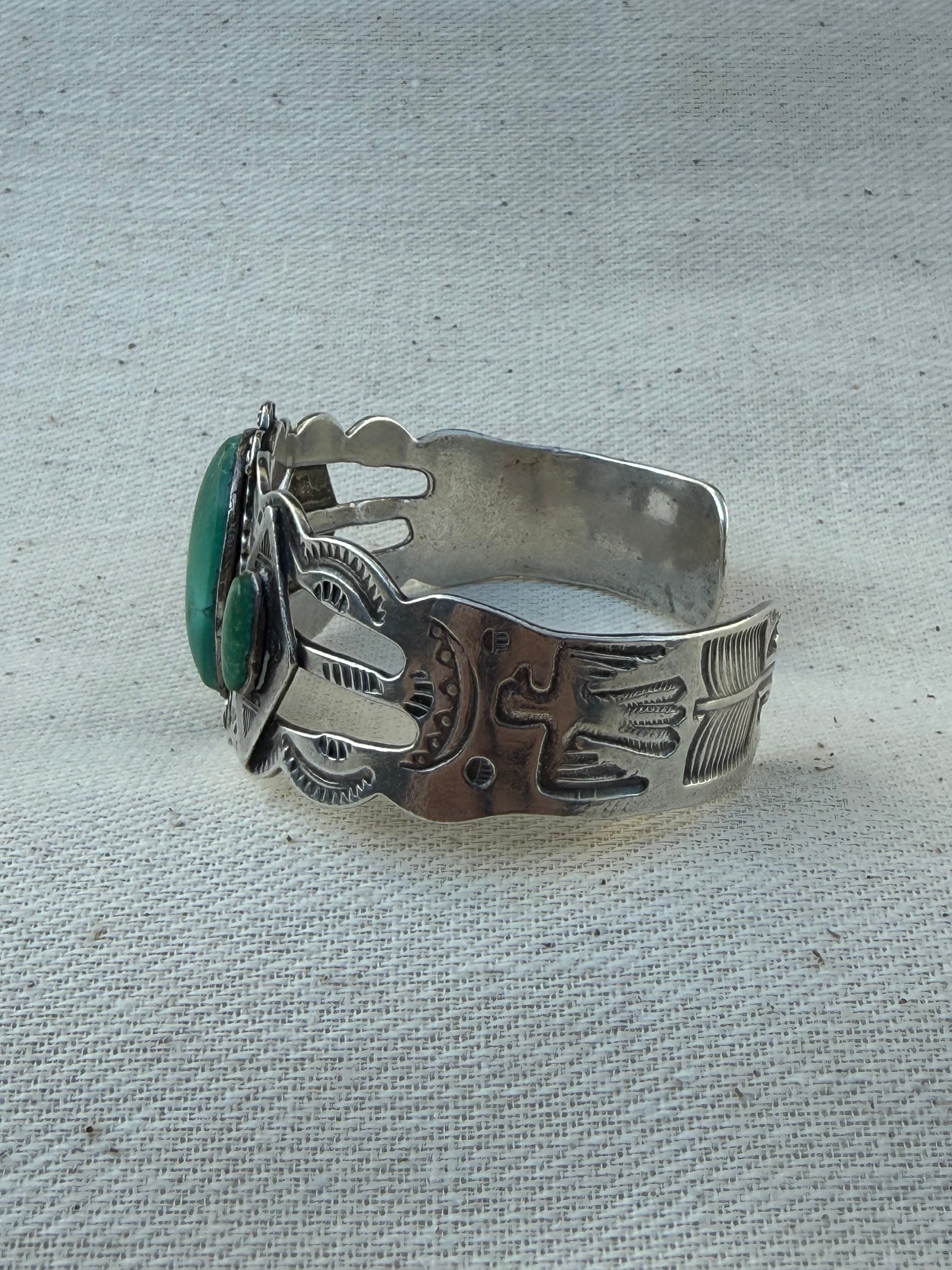 Navajo Thunderbird Triple Turquoise Split Cuff