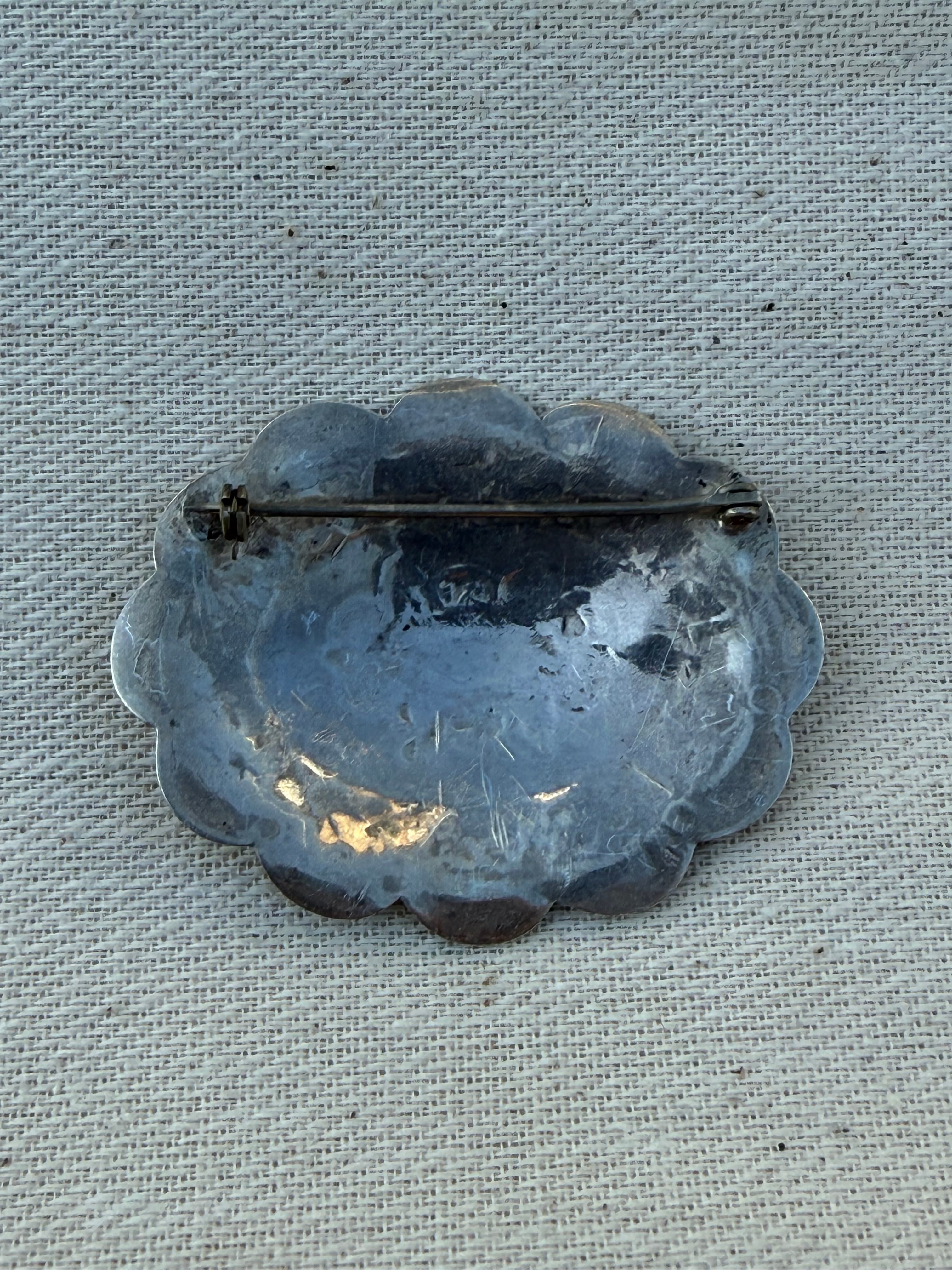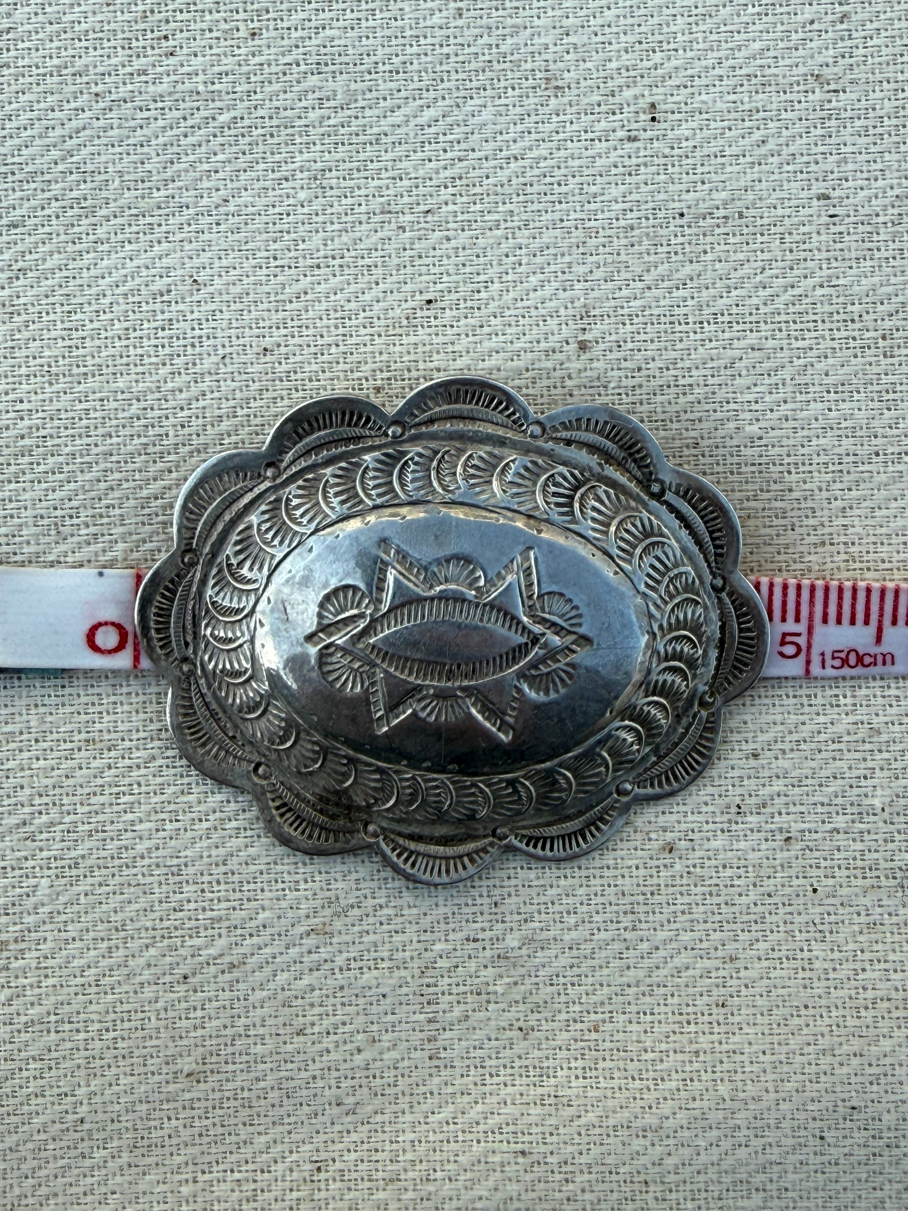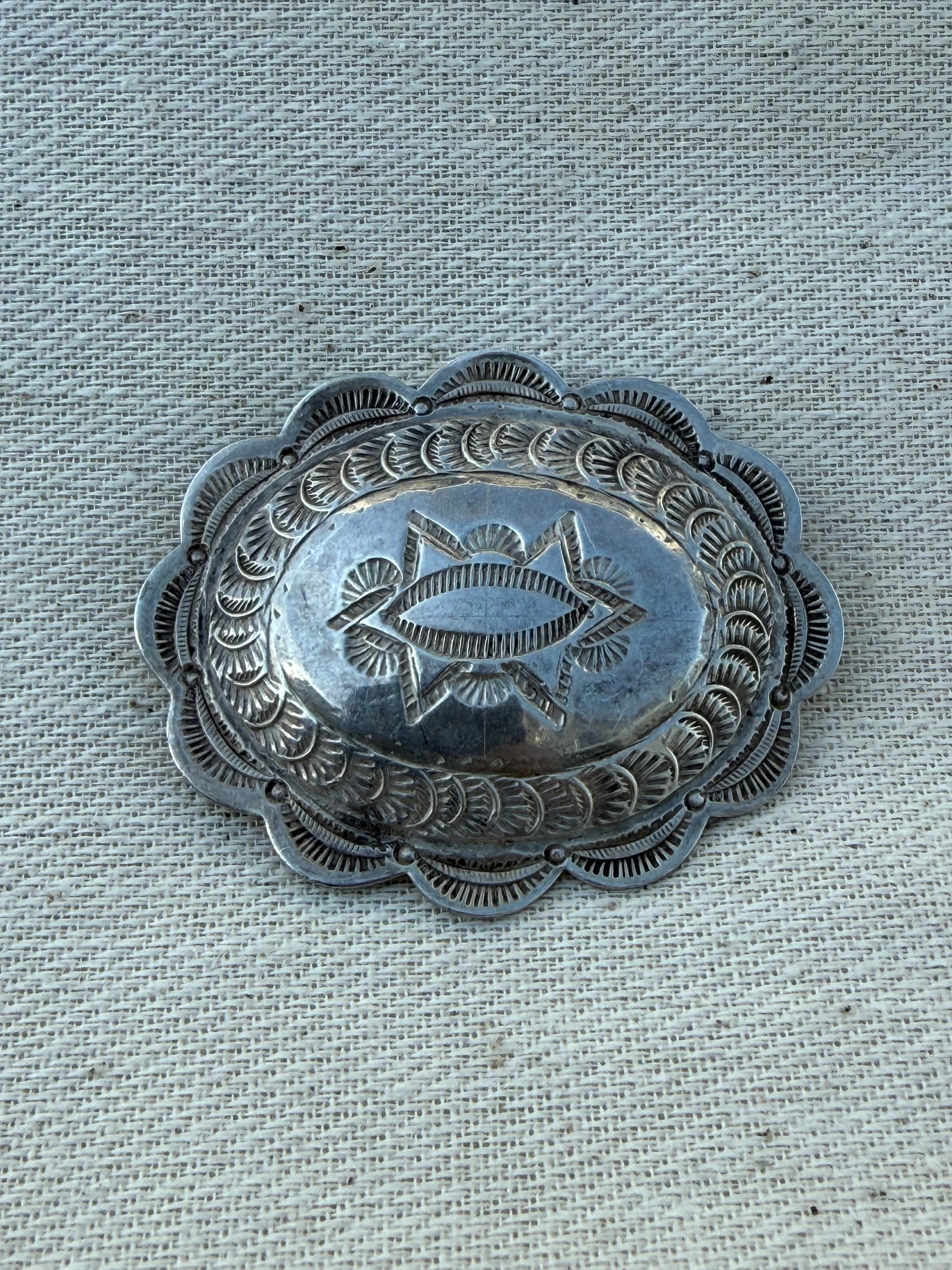 Navajo Oval Hand-Stamped Silver Brooch (c. 1930s–1940s)