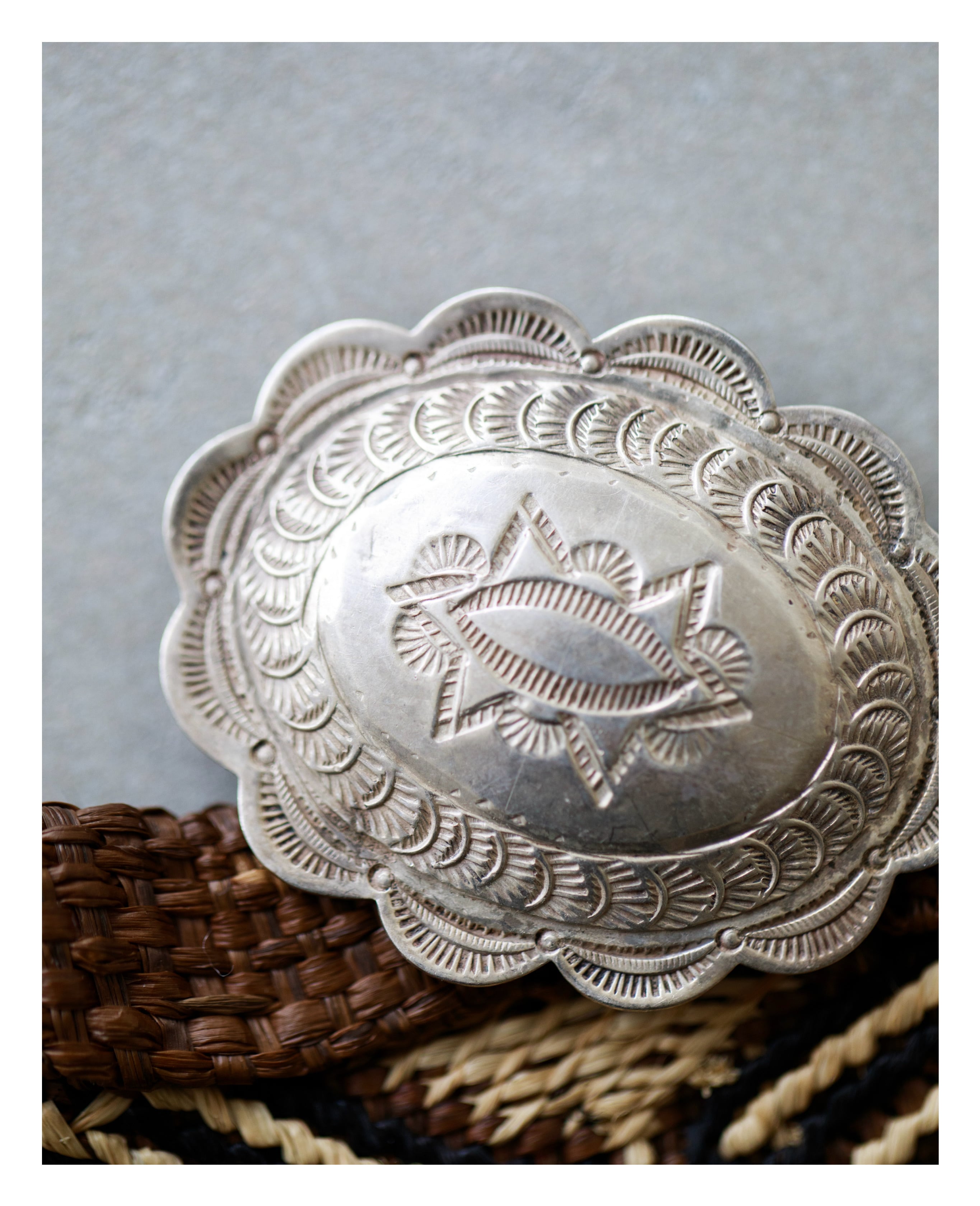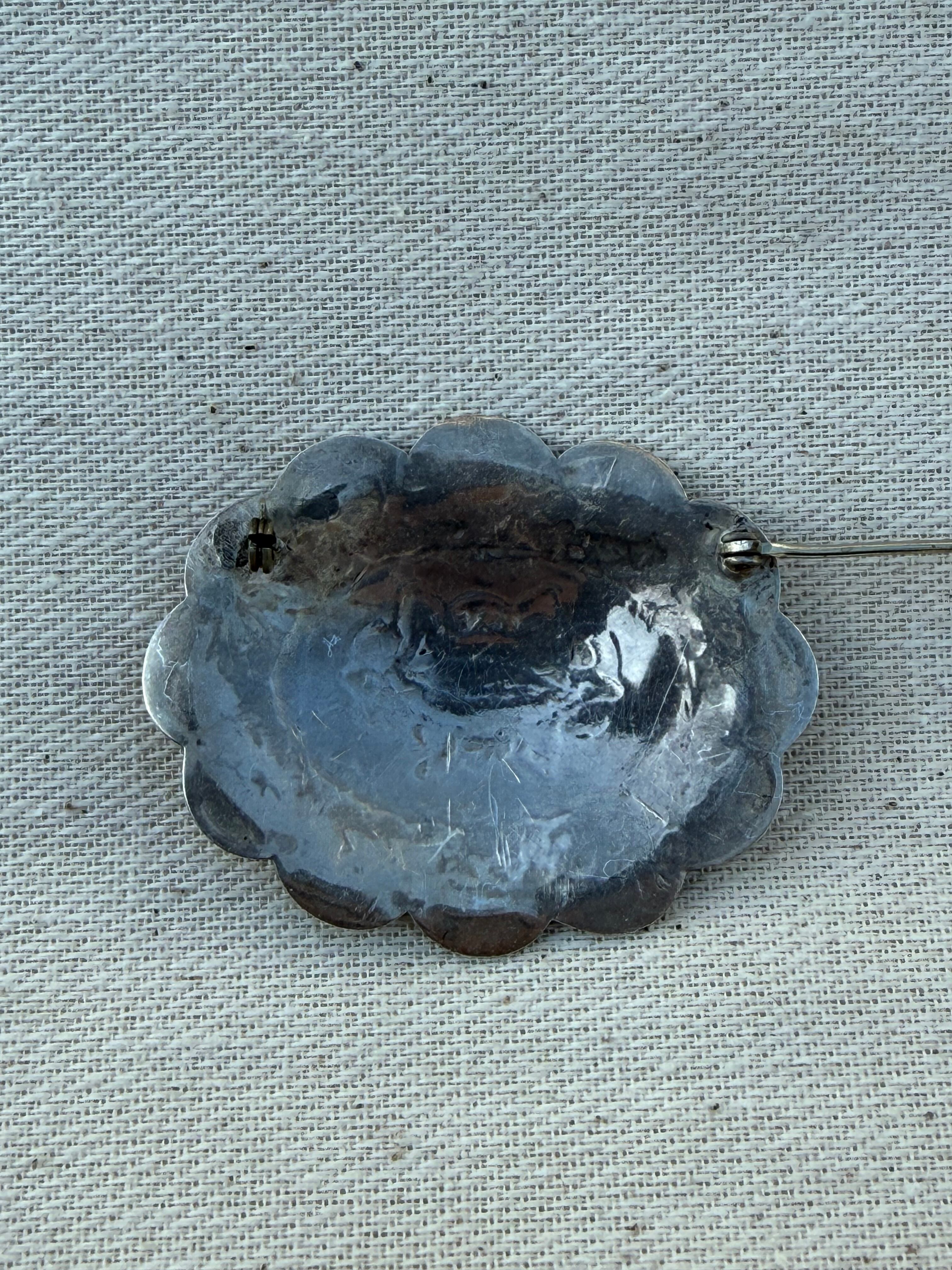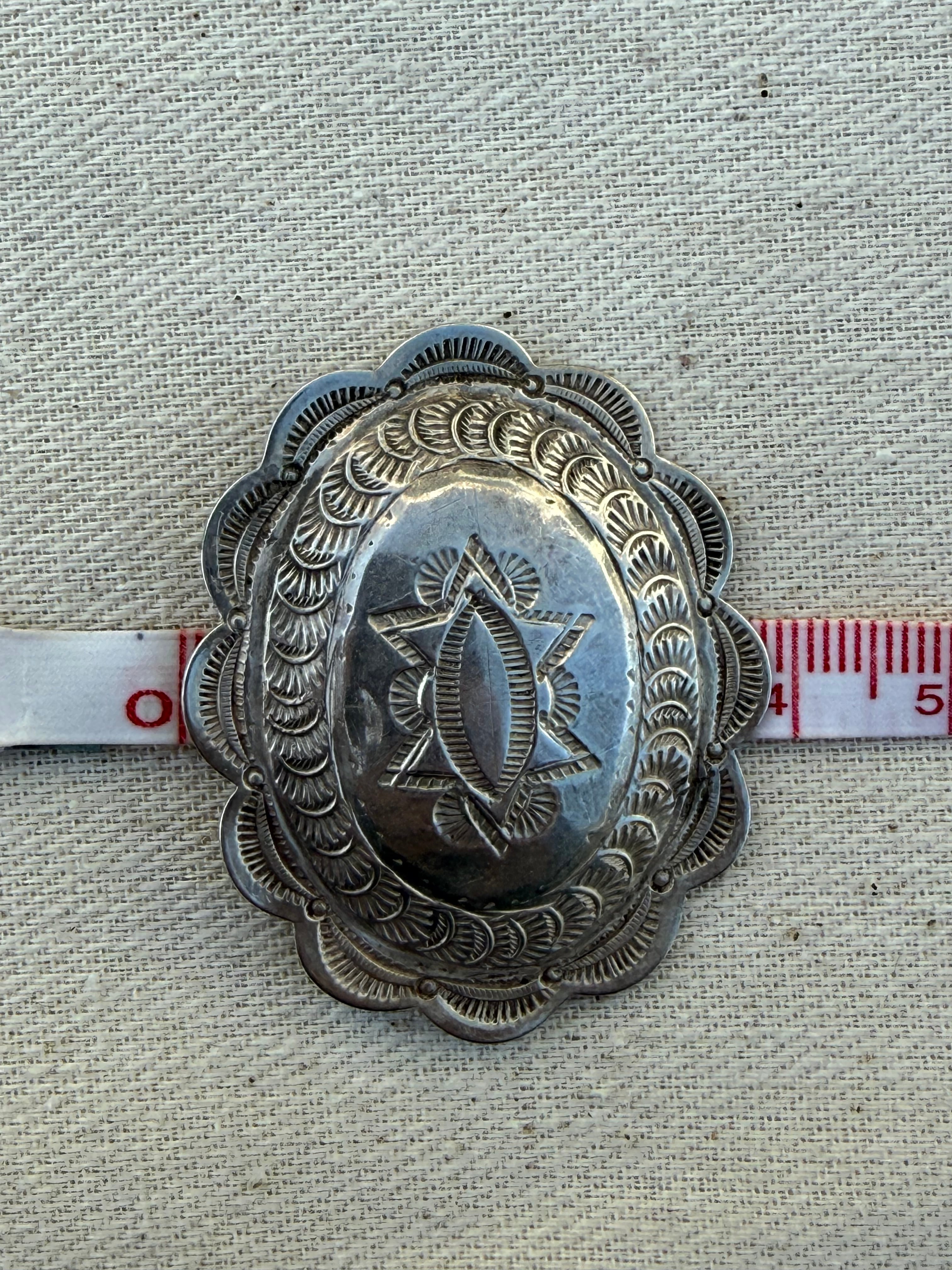 Navajo Oval Hand-Stamped Silver Brooch (c. 1930s–1940s)