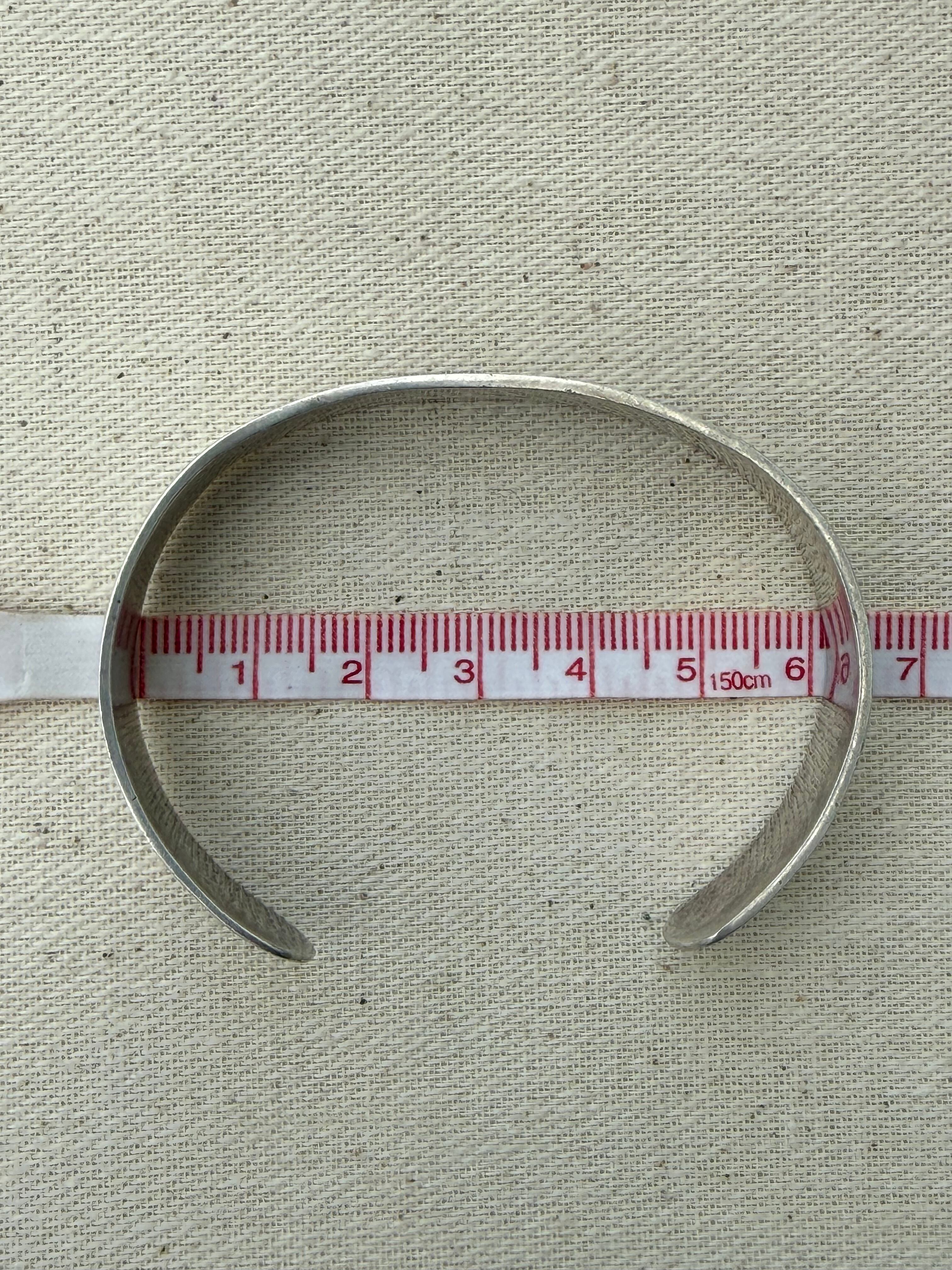 約14.5cm + 3cmオープニング x 幅1.3cm (手首にはめる際、多少の調整は可能です。)
