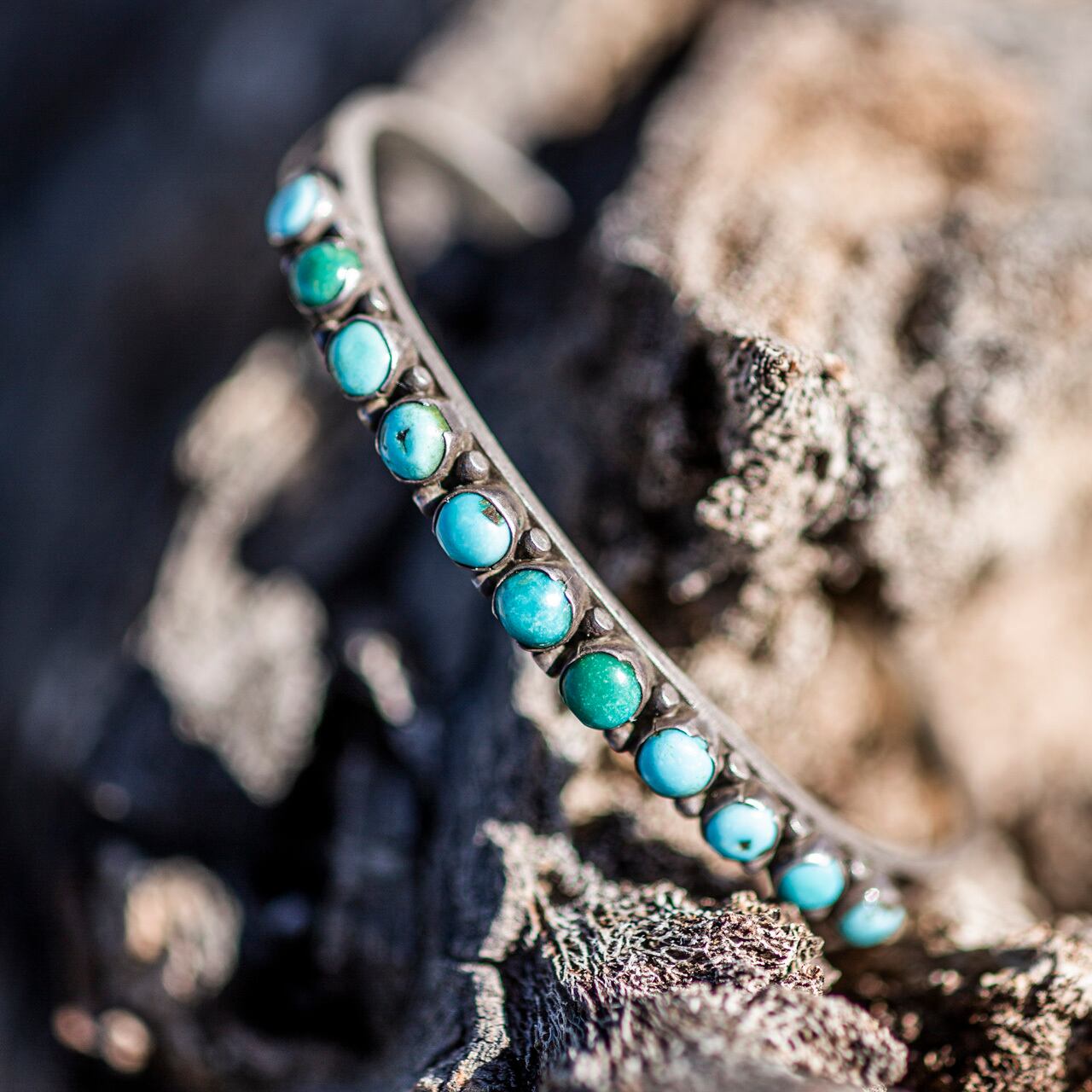 1920-30s Zuni Ingot Snake Eye Row Cuff Bracelet