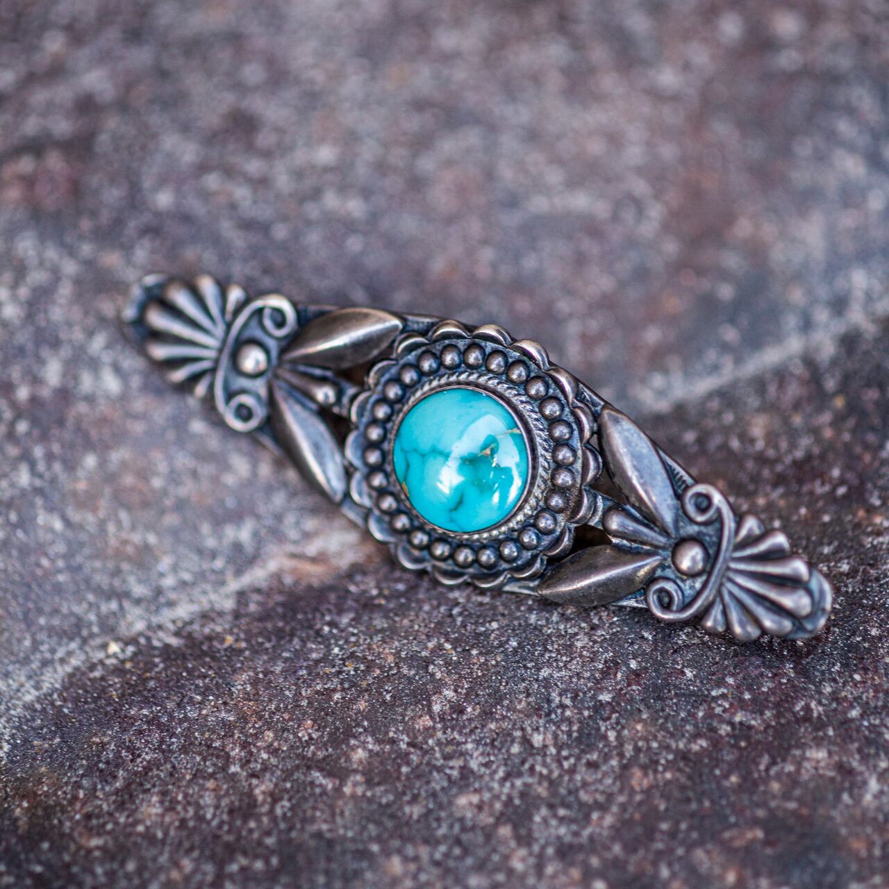 Details - Measurements: 6.8cm x 2.3cm - Material: Silver, Turquoise - スターリングが普及する前の時代に使われていたシルバーで、スターリングよりシルバーの純度は低いですが、現行品には出ない独特な質感となっています。 - ヴィンテージ品ですので、全体的に細かな傷やクスミなどが見られますが、状態は大変良好です。