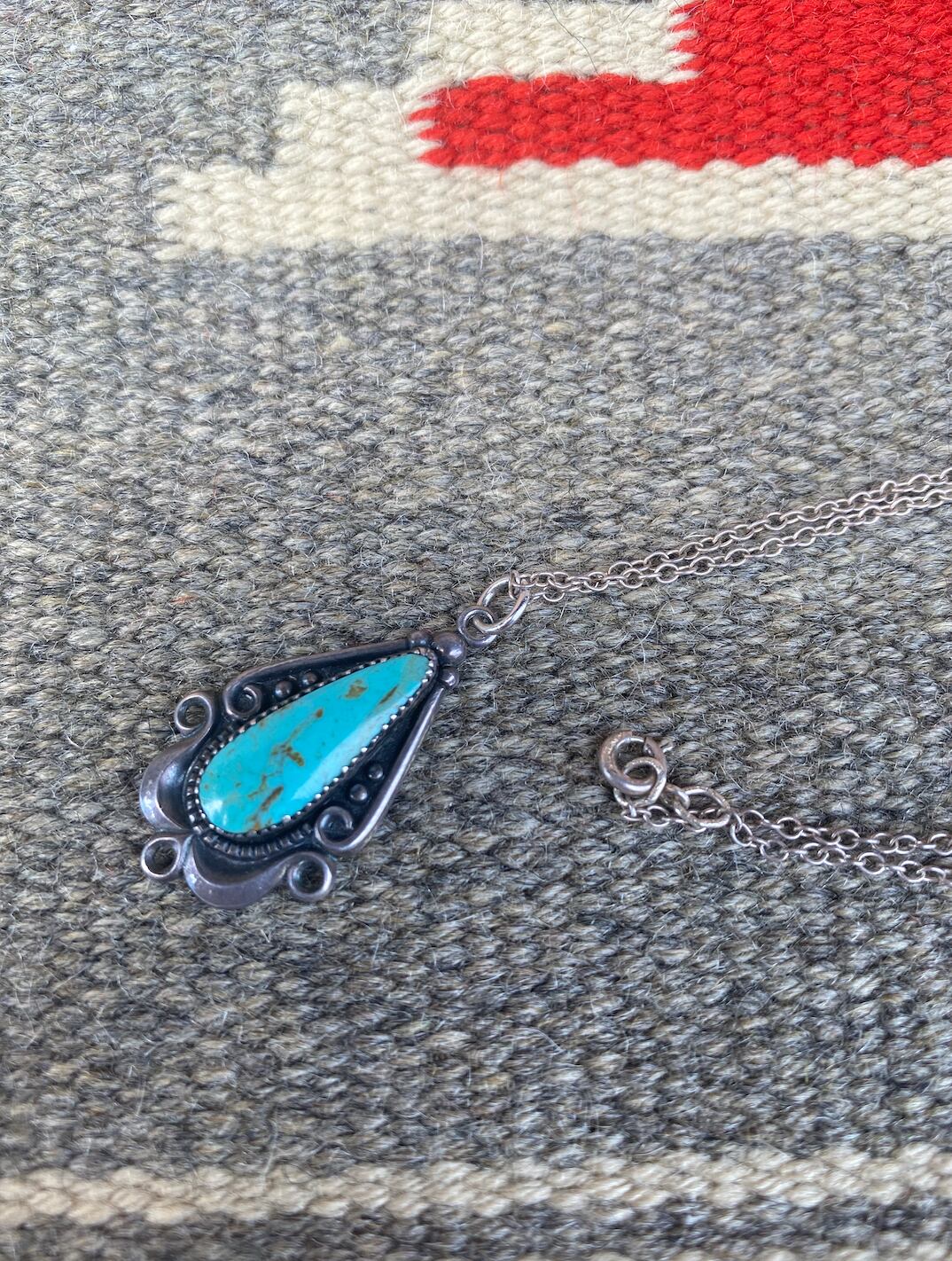 Details - Measurements: 縦3cm x 横2cm, - Material: Sterling silver, Turquoise - ヴィンテージ品ですので、全体的に細かな傷やクスミなどが見られますが、状態は大変良好です。 - チェーンは含まれません。