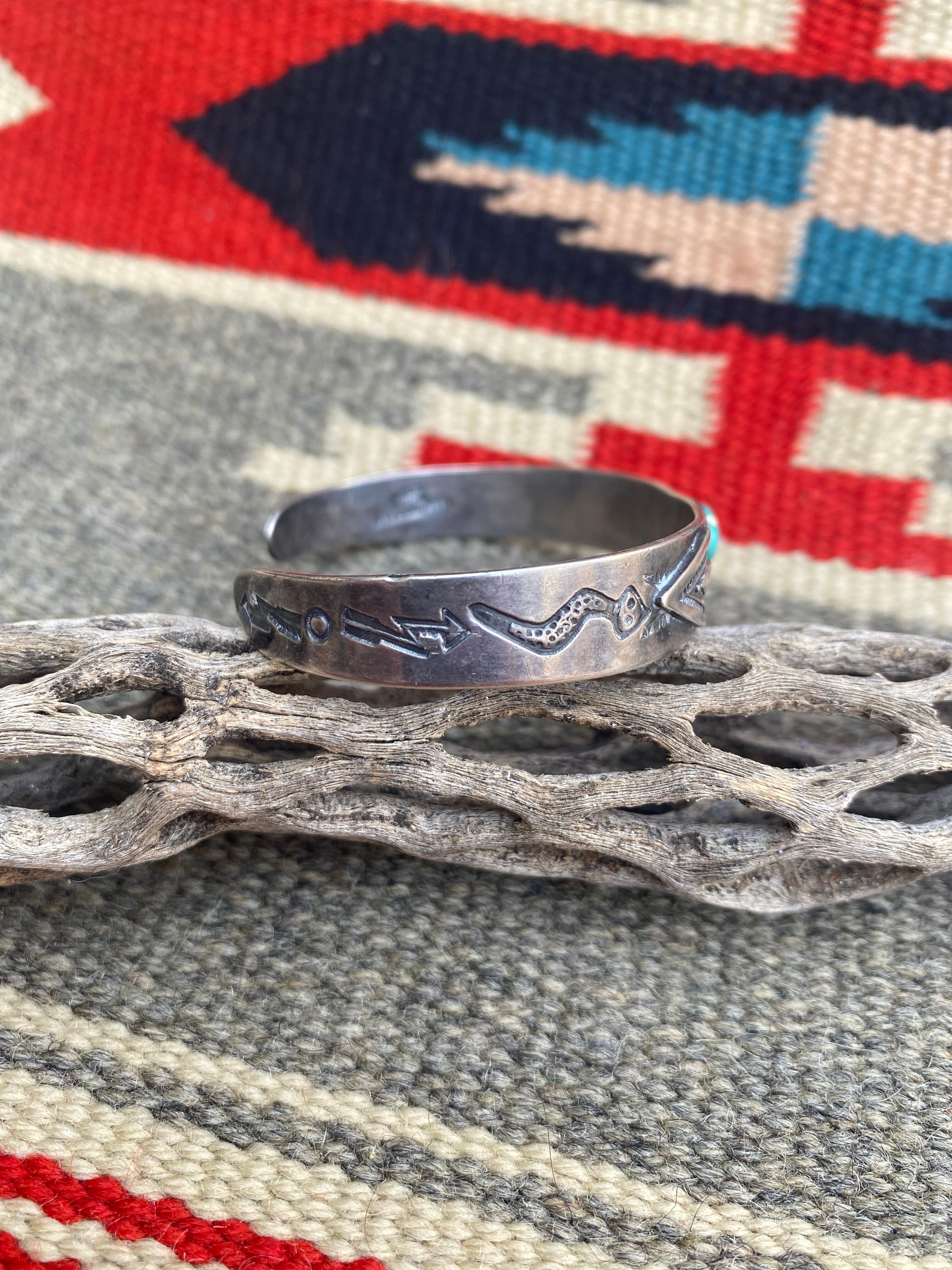 1930-40s Navajo Coin Silver Turquoise Bracelet